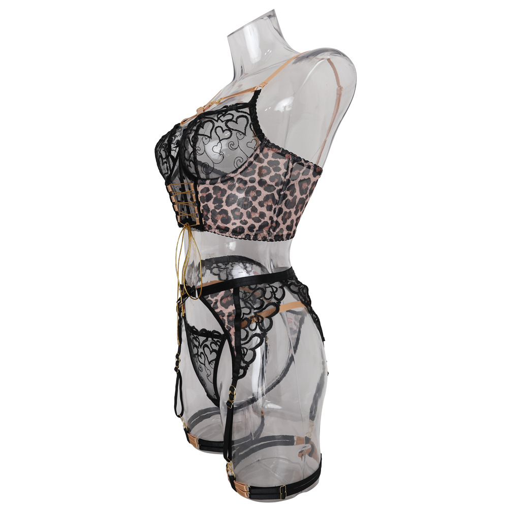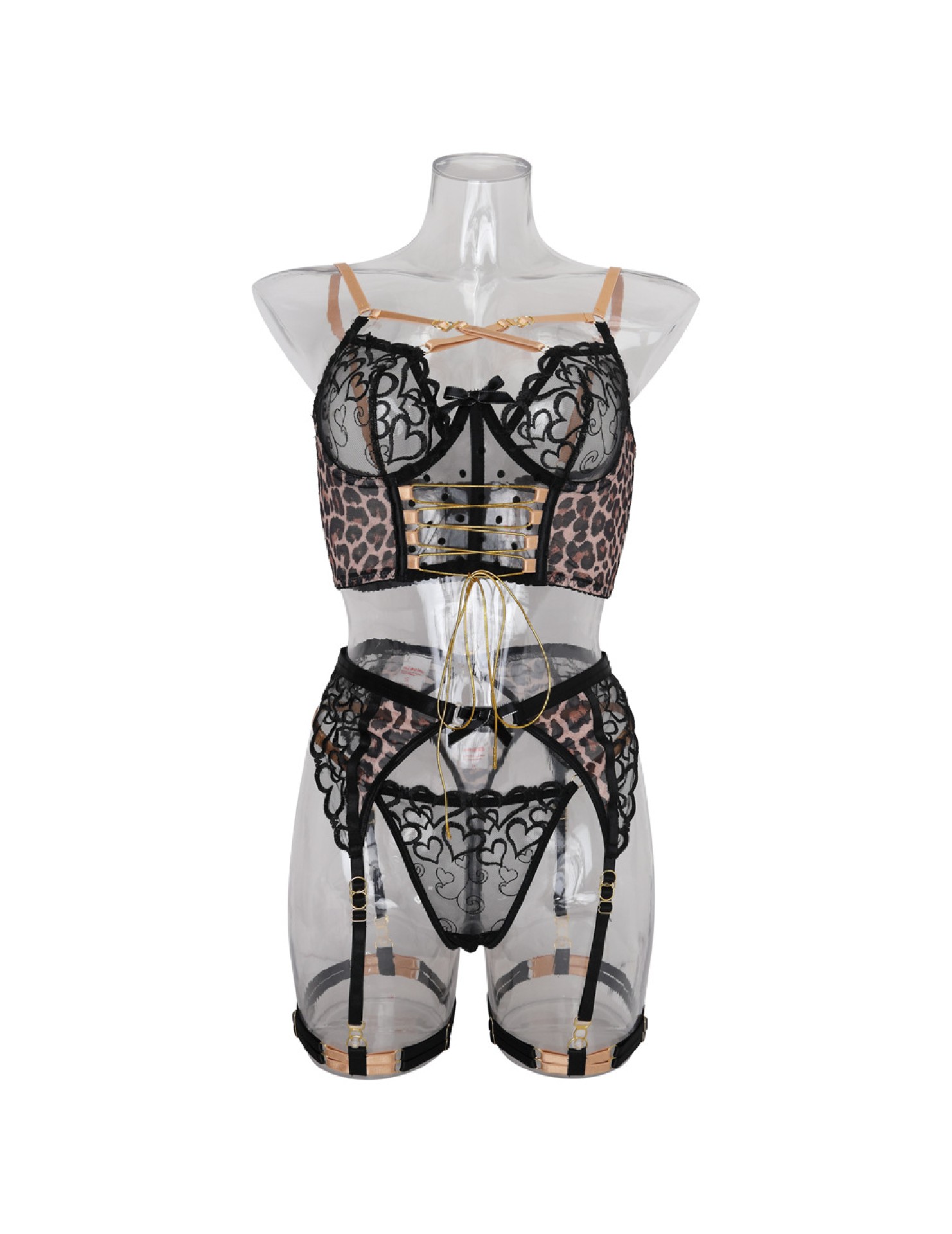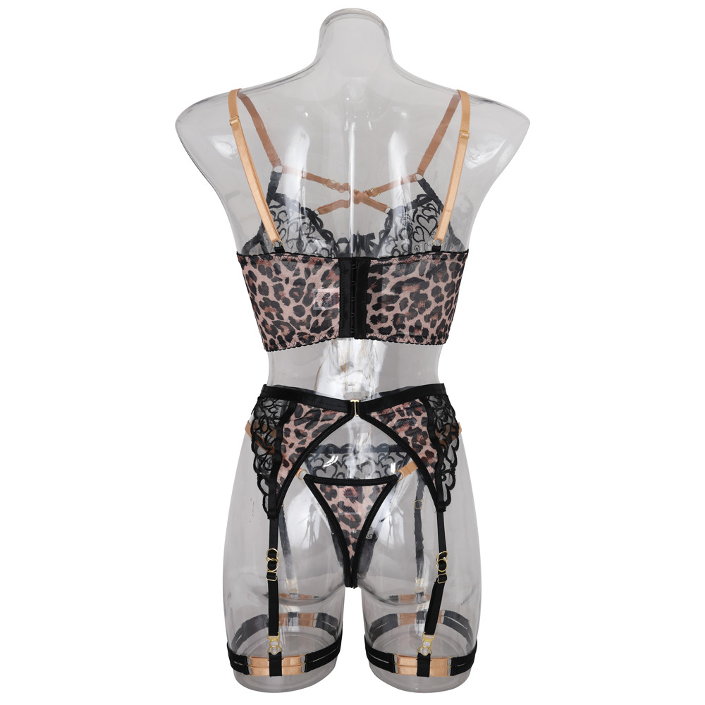 LSFA110FWK1034 刺繡接拼豹紋網紗時尚撞色性感情趣內衣四五件套裝