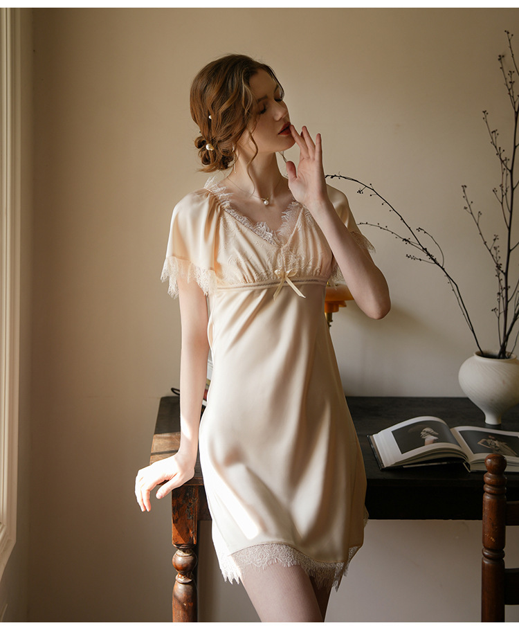 LCLN112100121 春夏新款連衣裙短袖薄款透氣短裙居家性感睡衣女夏