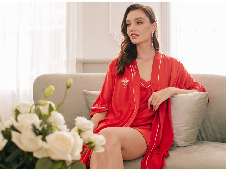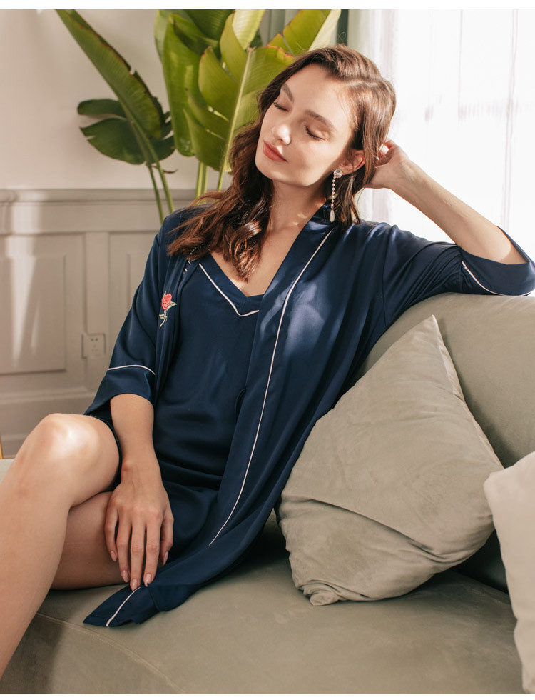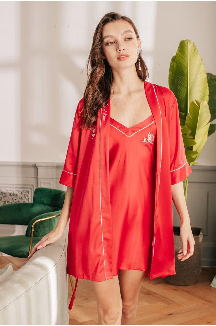 LCLN112100136 中國風刺繡女士性感吊帶睡裙女夏季絲綢吊帶睡袍性感睡袍