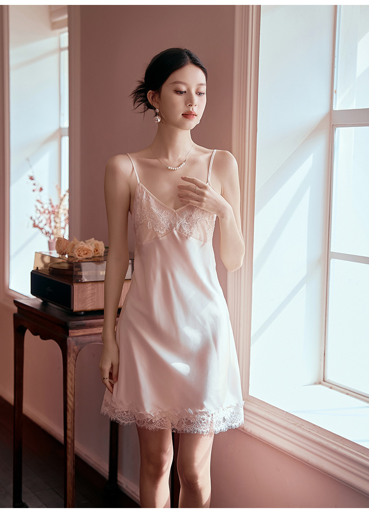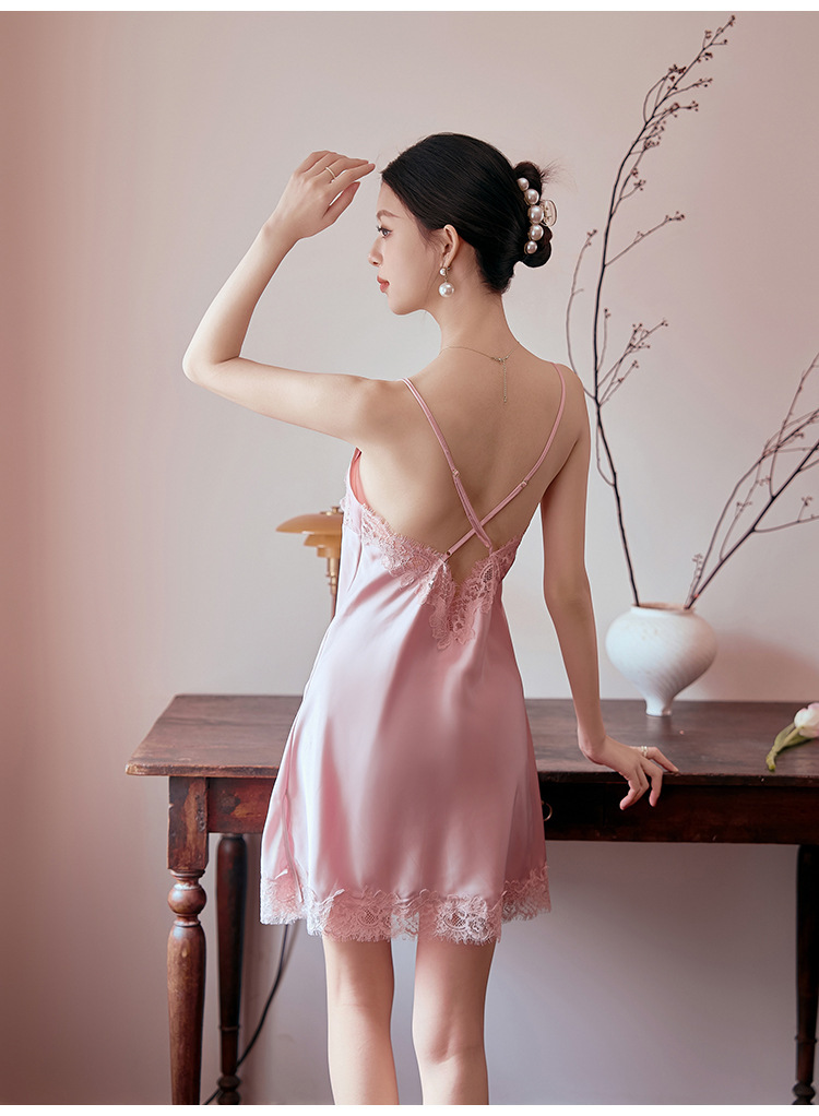 LCLN112100139 新款性感吊帶睡裙露背性感短裙薄款女四季可穿絲綢吊帶睡衣