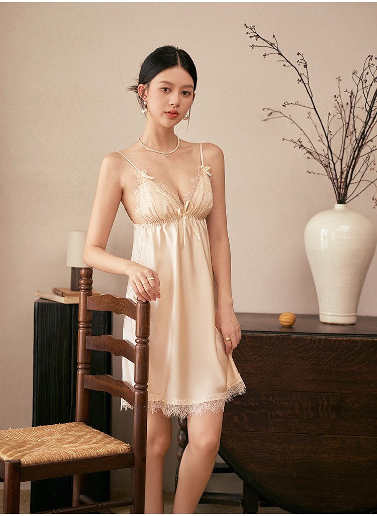 LCLN112100146 新款帶胸墊女士性感吊帶睡裙女春夏睡衣薄款絲綢透氣睡裙女