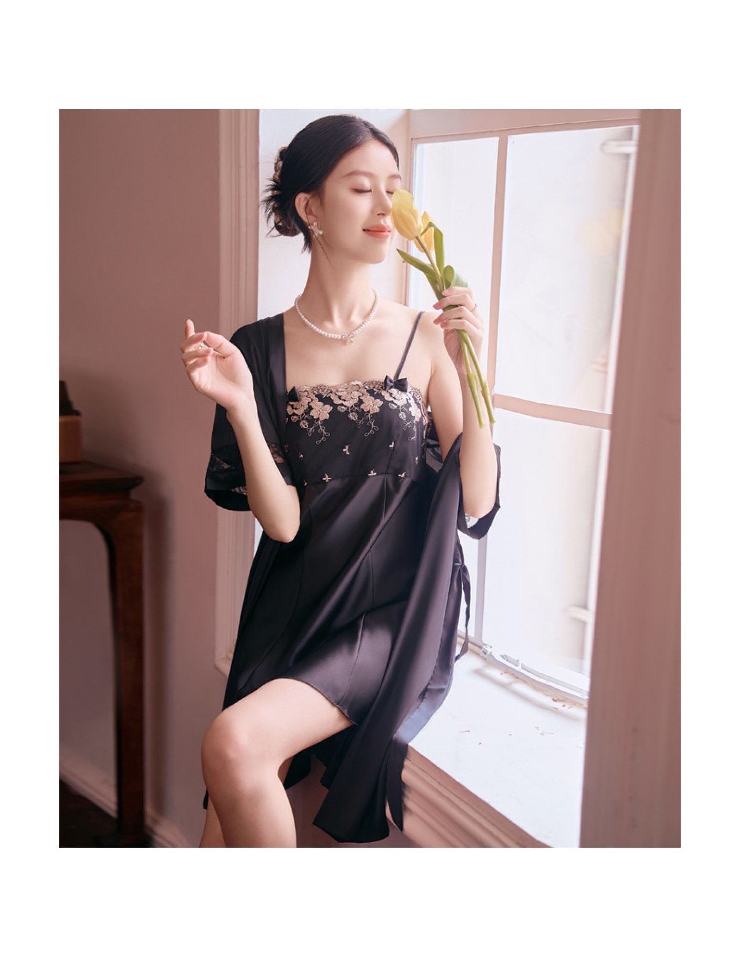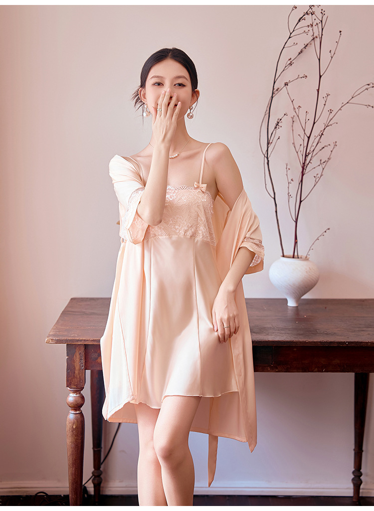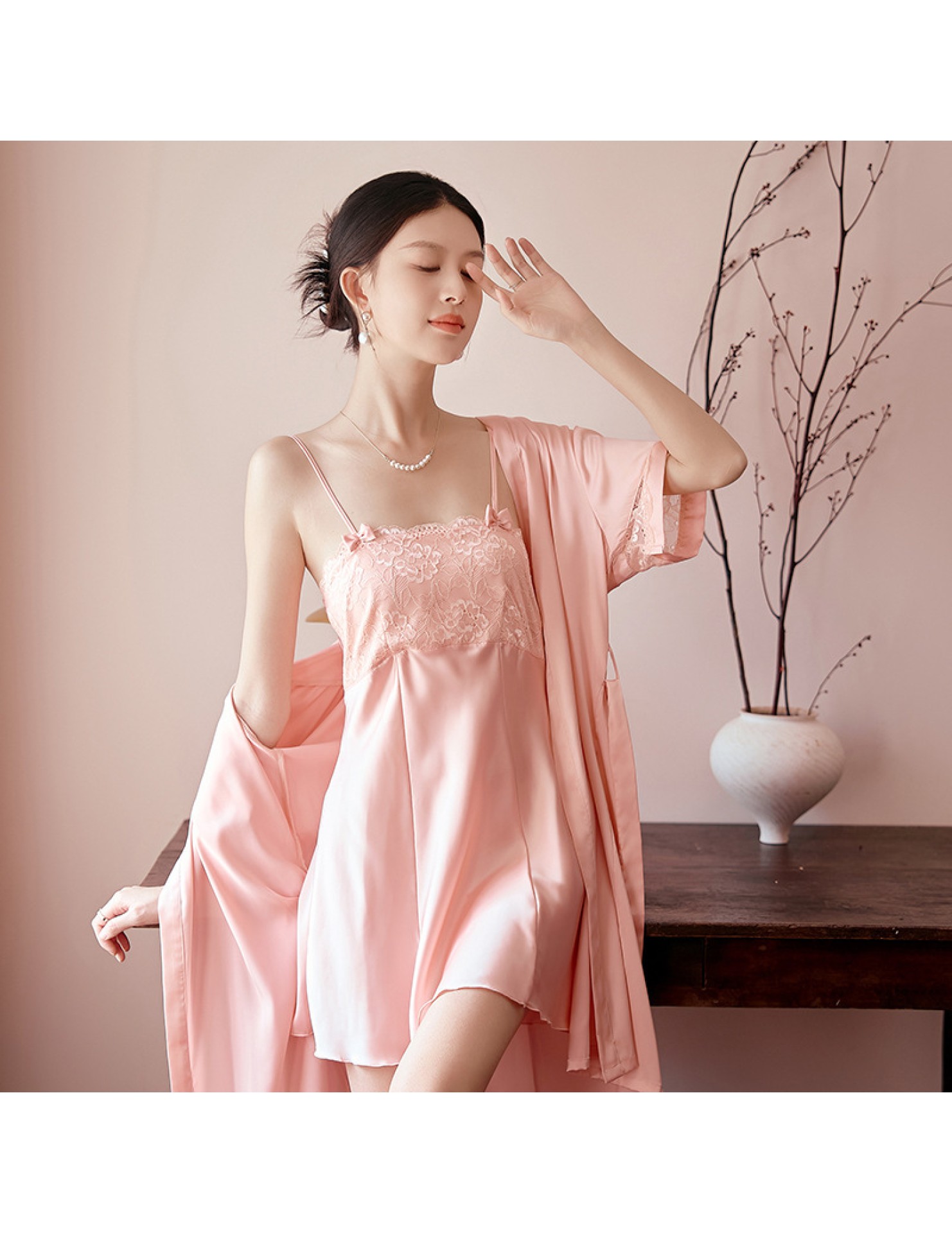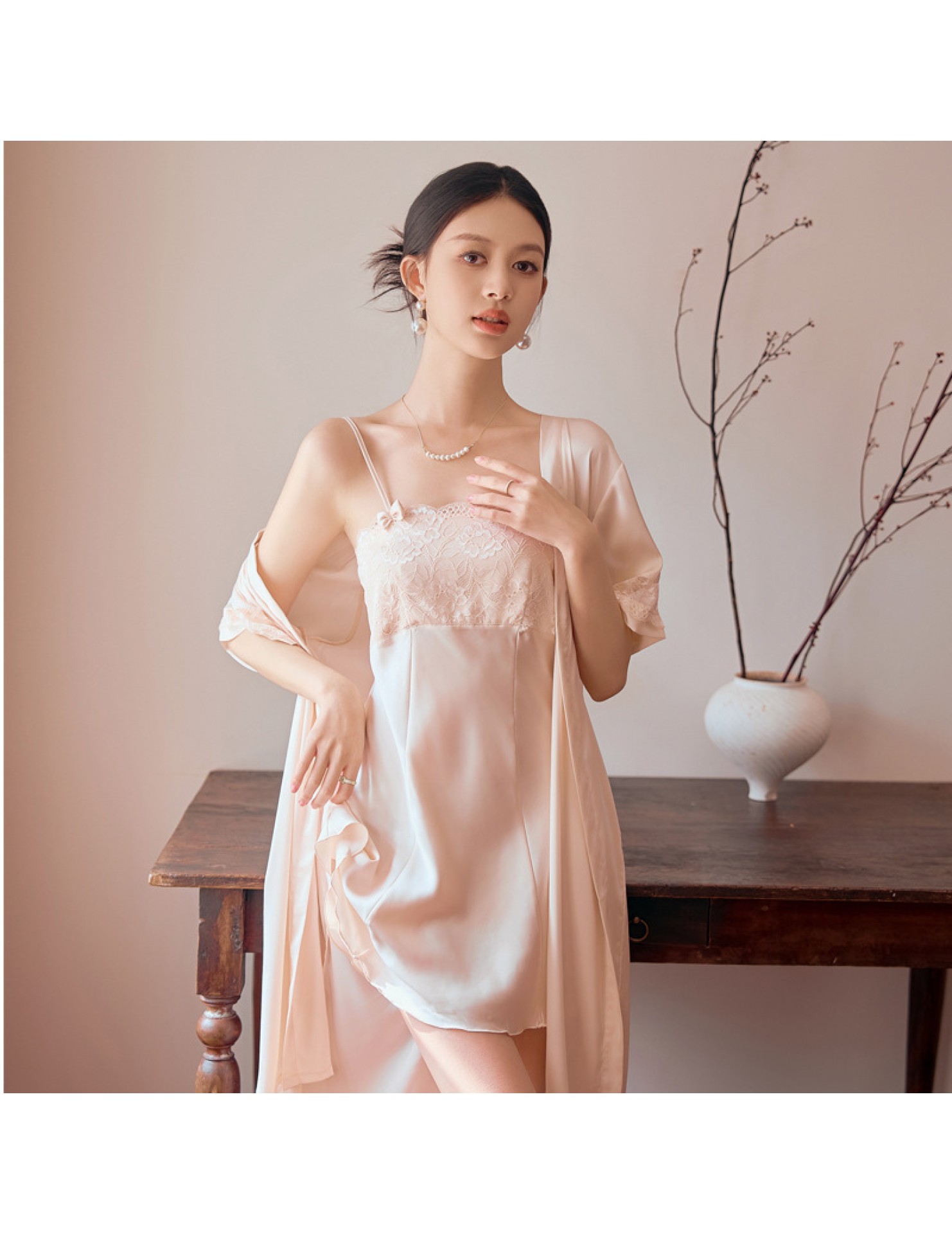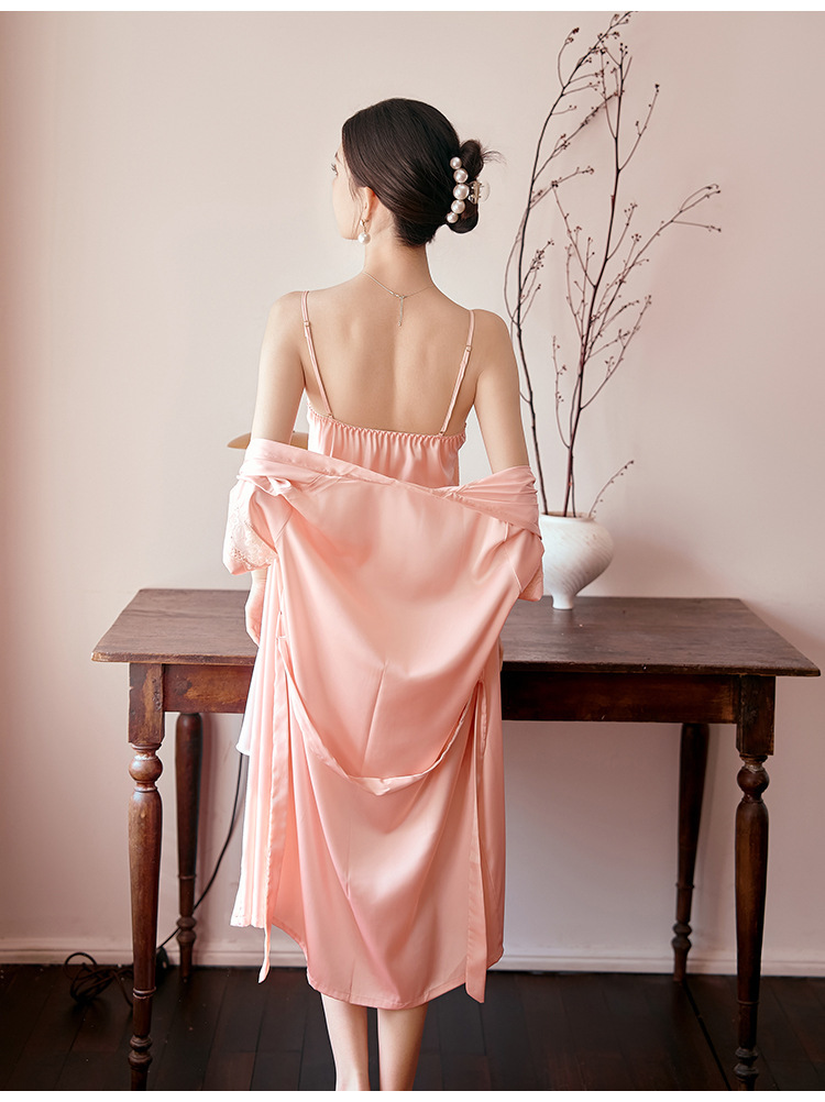 LCLN112100149 性感吊帶睡裙睡袍兩件套女夏絲綢薄款透氣睡袍套裝四季可穿