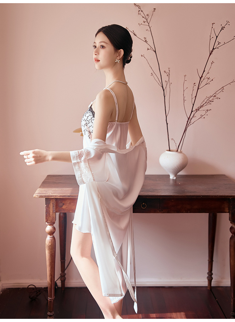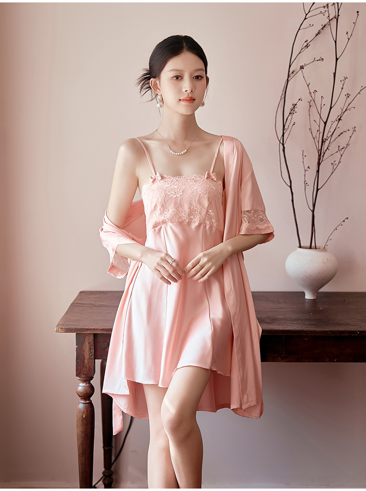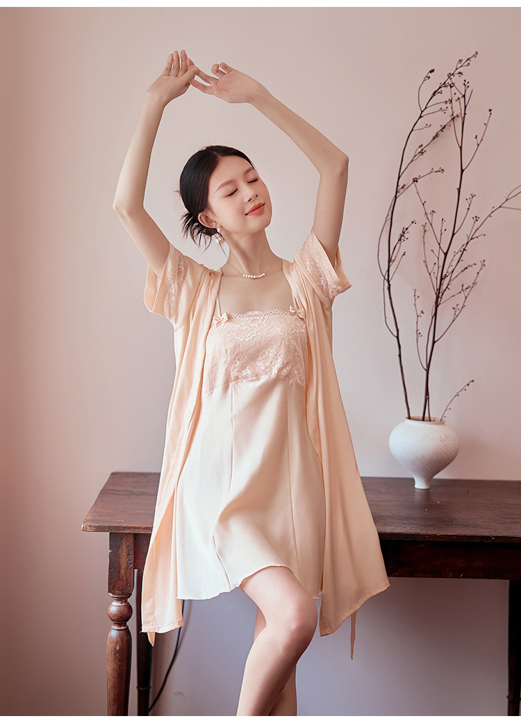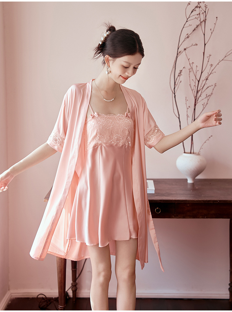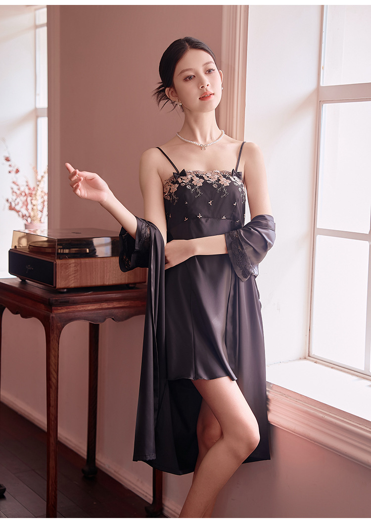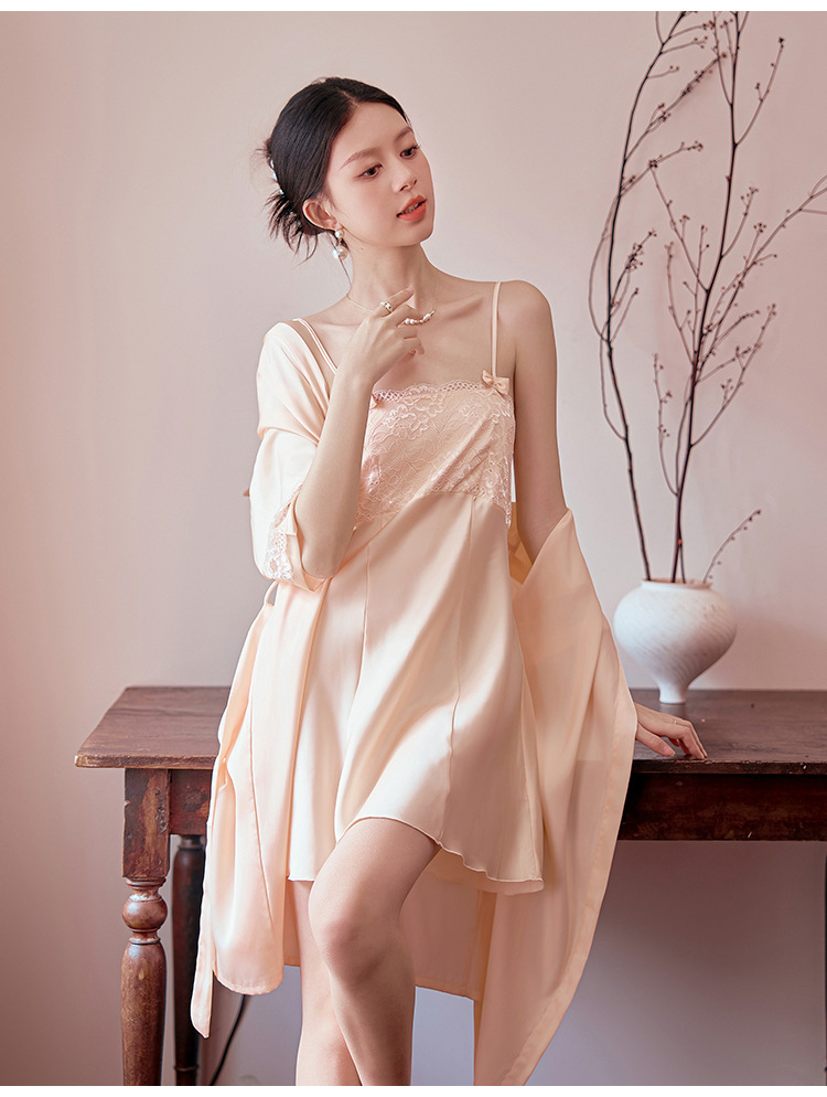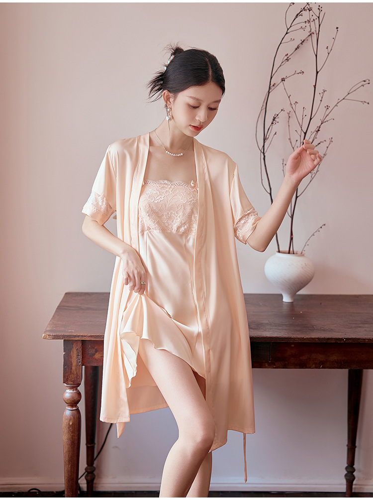 LCLN112100149 性感吊帶睡裙睡袍兩件套女夏絲綢薄款透氣睡袍套裝四季可穿