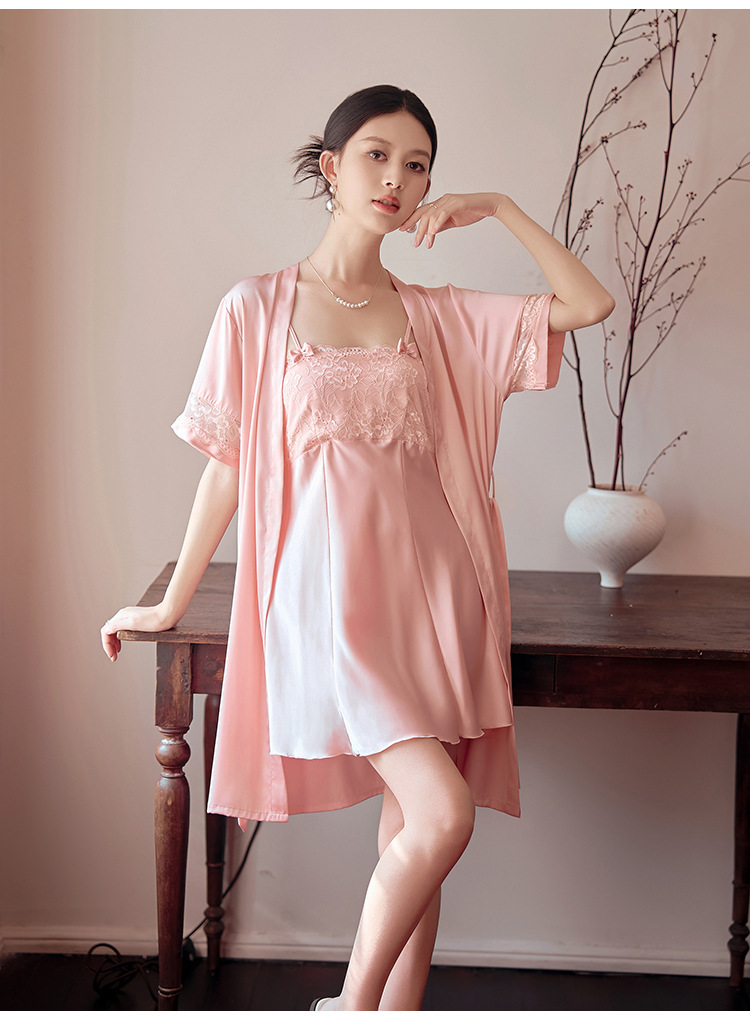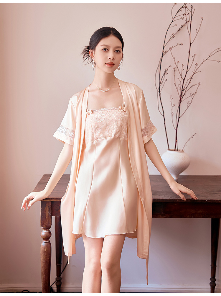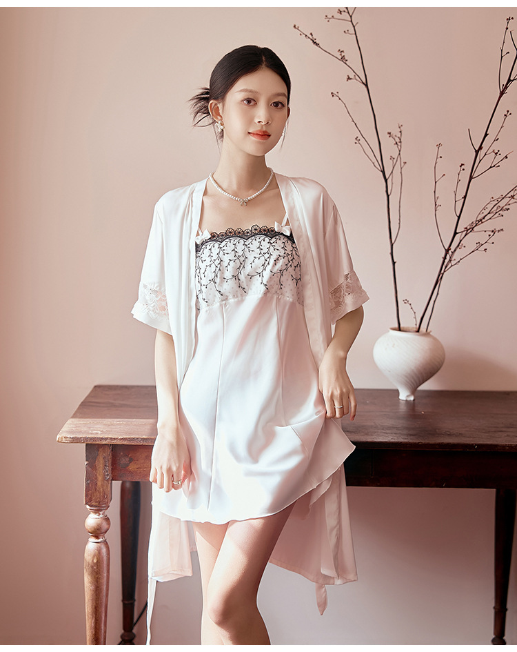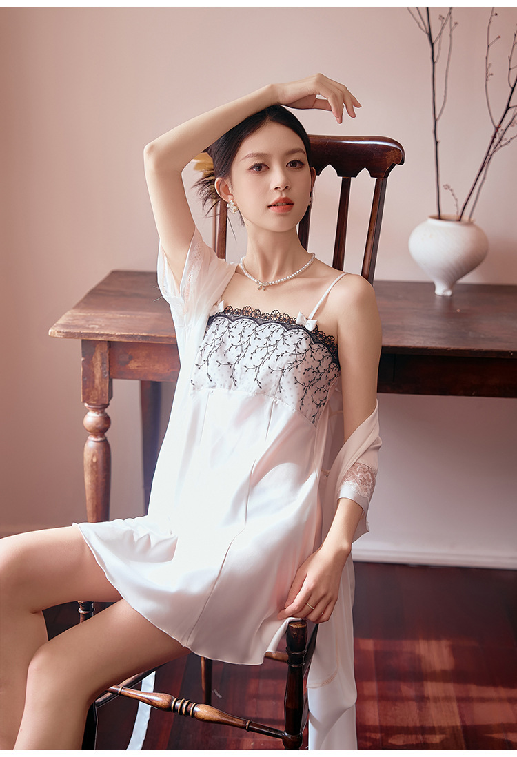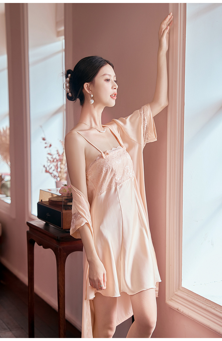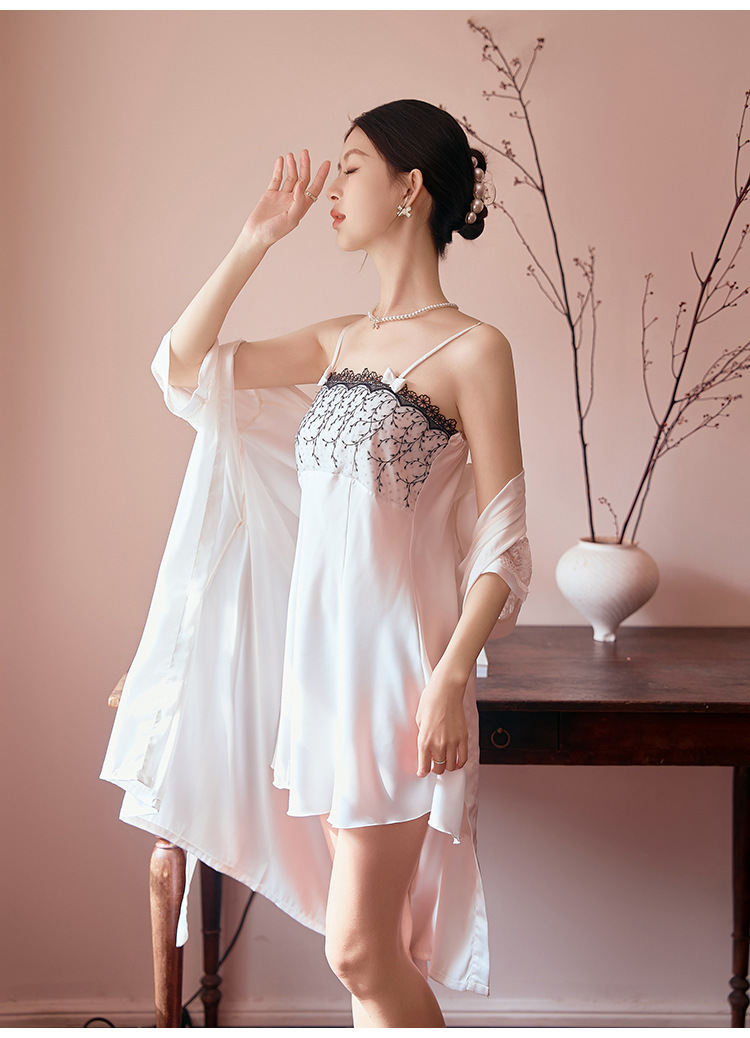 LCLN112100149 性感吊帶睡裙睡袍兩件套女夏絲綢薄款透氣睡袍套裝四季可穿