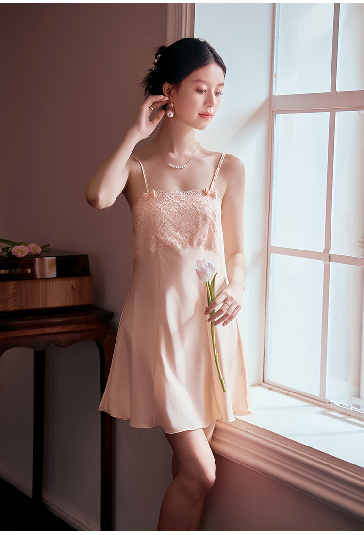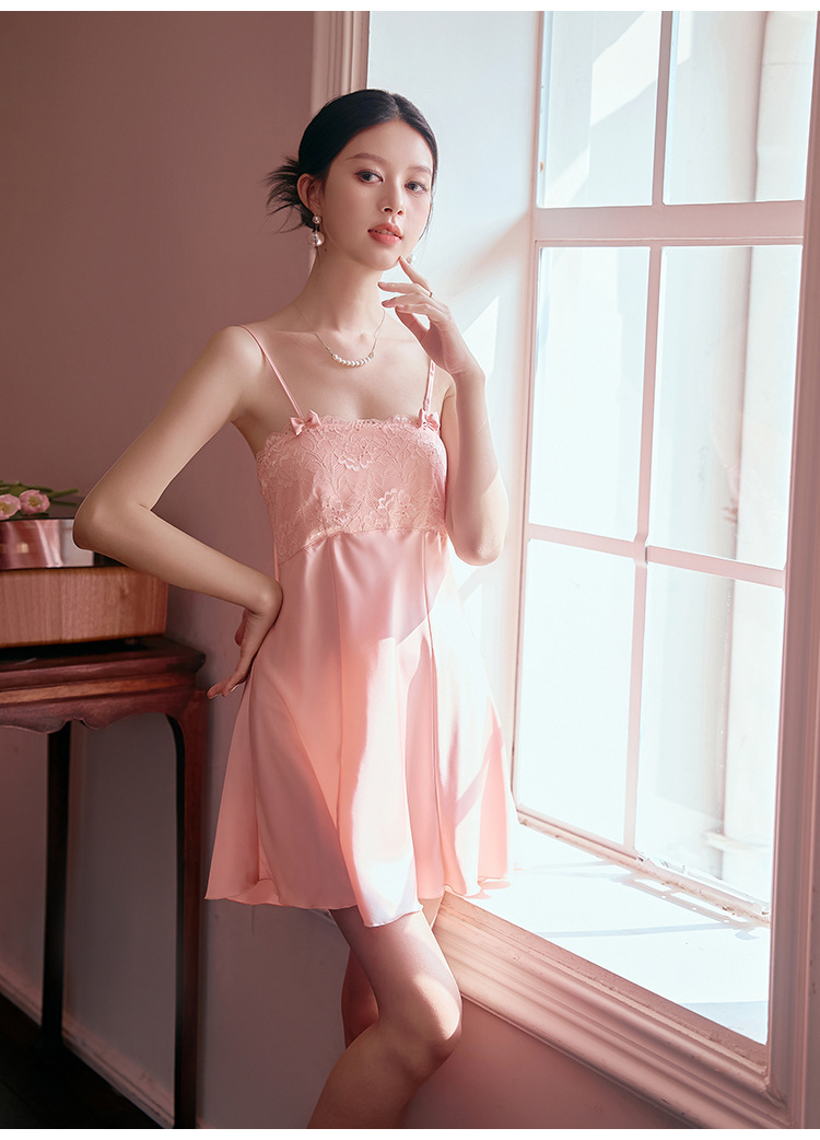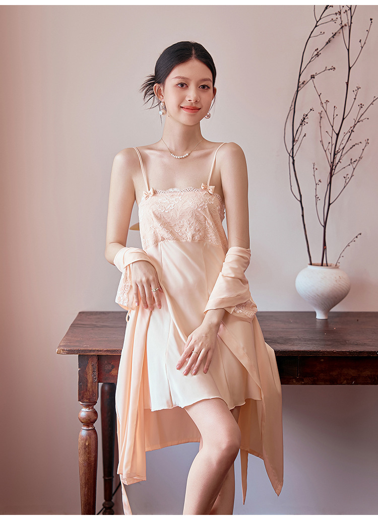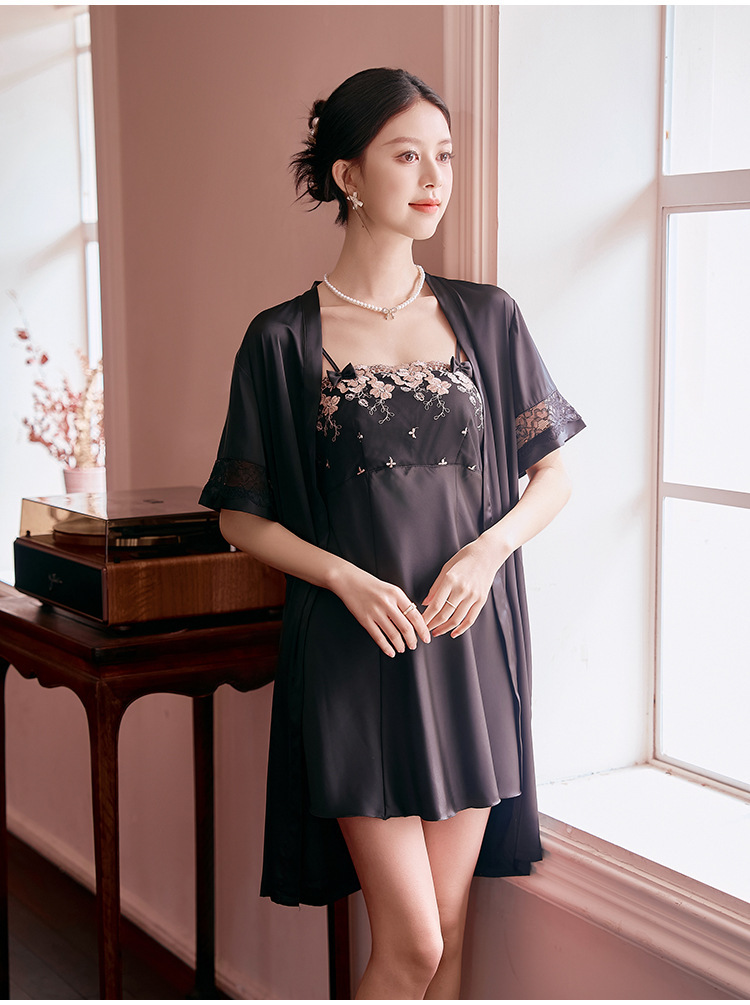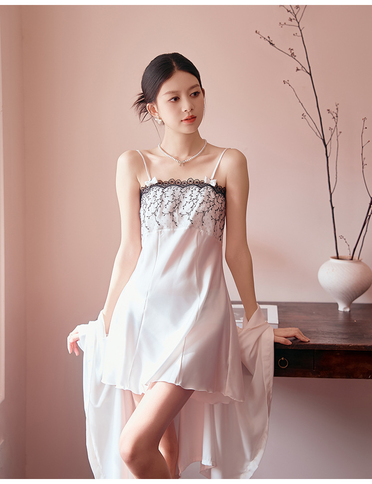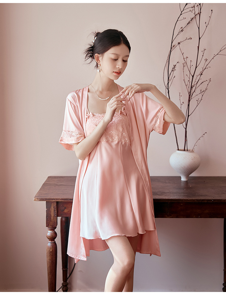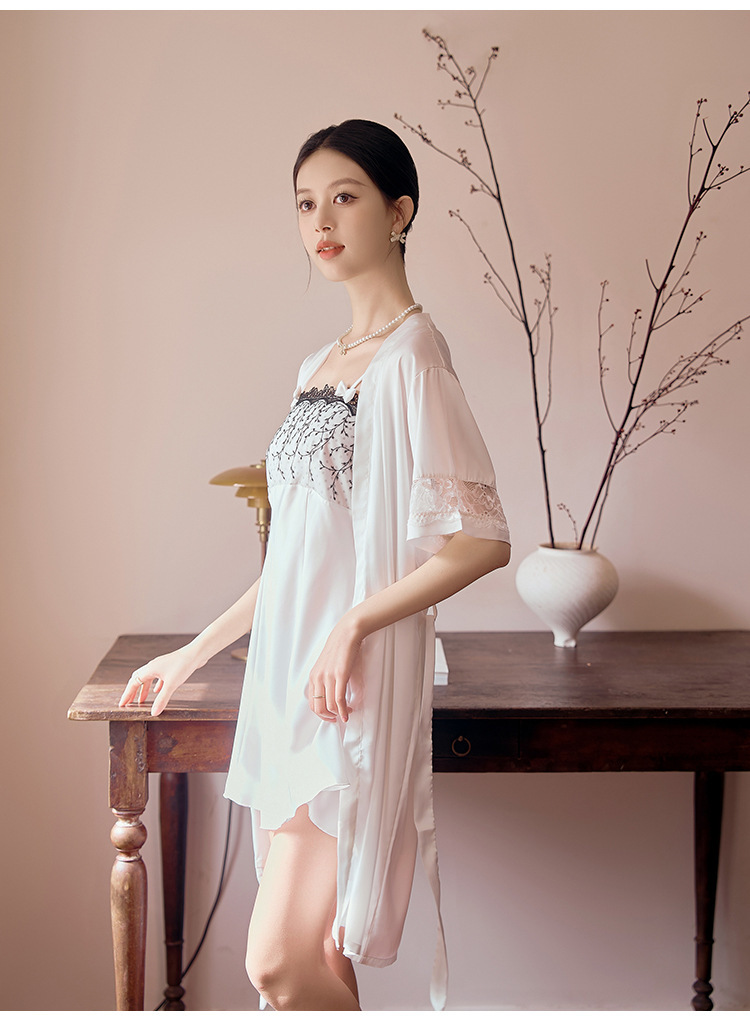 LCLN112100149 性感吊帶睡裙睡袍兩件套女夏絲綢薄款透氣睡袍套裝四季可穿