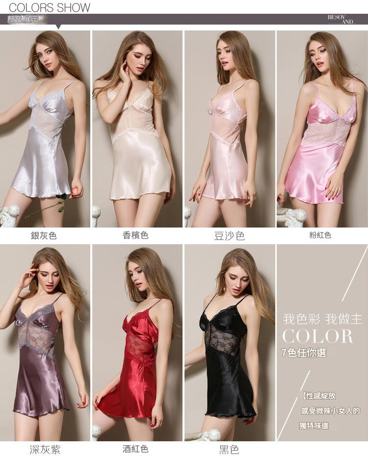 LCLN112100105 蕾絲吊帶睡裙絲綢睡衣居服性感吊帶睡裙鏤空性感睡裙