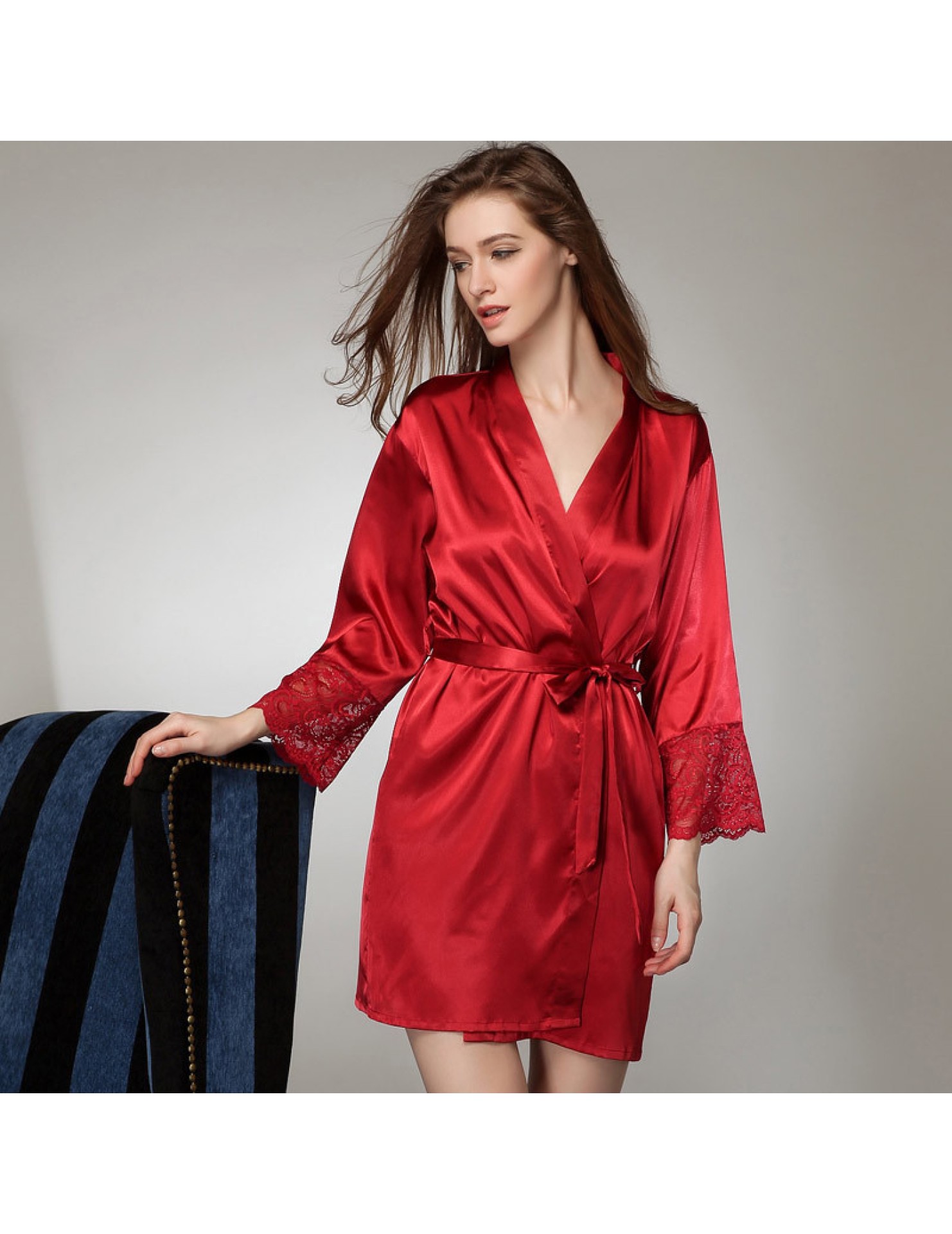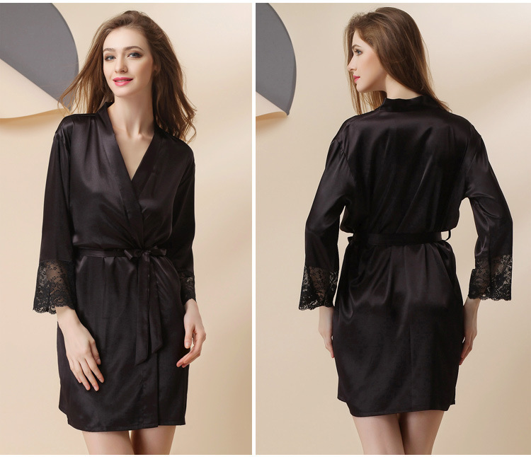 LCLN112100135 女士絲綢單件睡袍仿真絲睡衣春夏長袖浴袍睡衣家居服