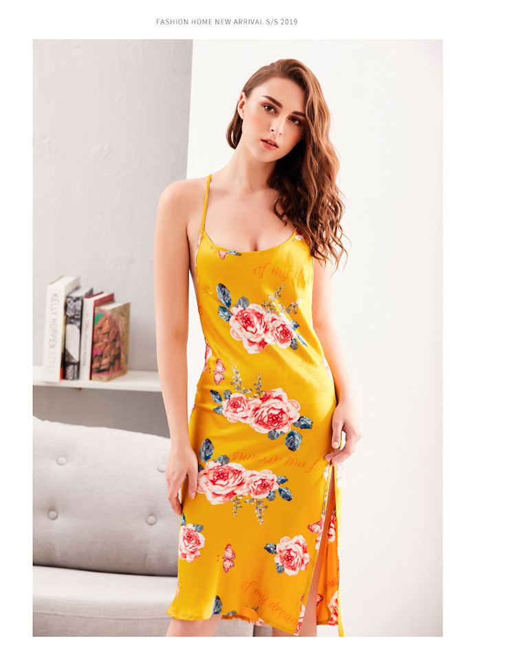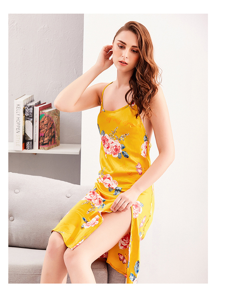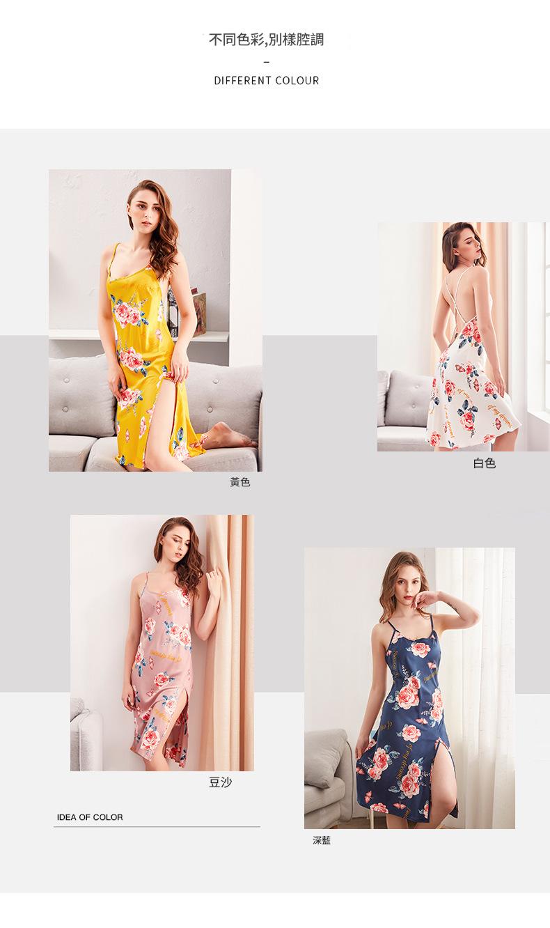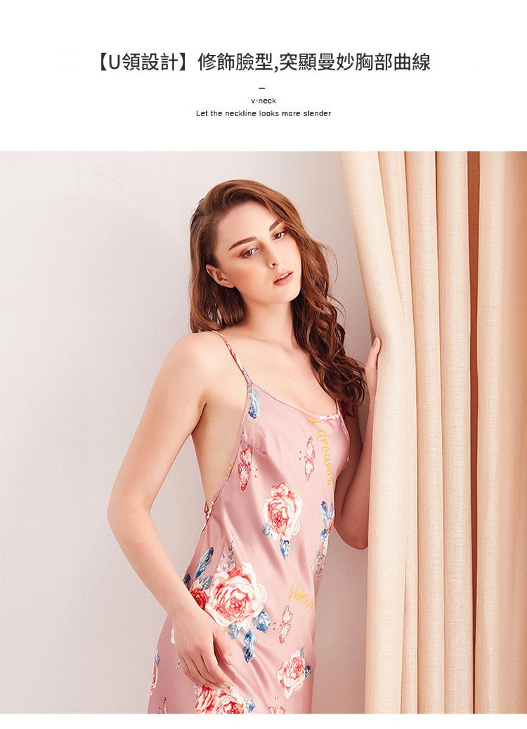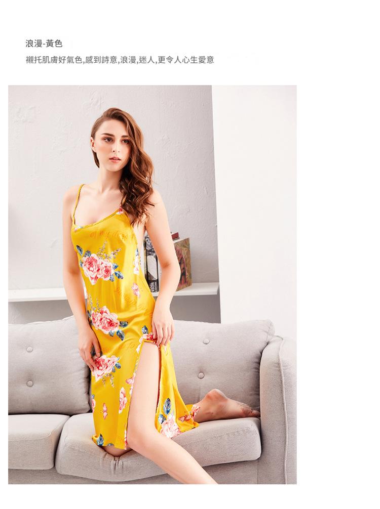 LCBN251225100243 歐美仿真絲性感睡衣夏季長款吊帶睡裙冰絲女士情趣內衣居家服