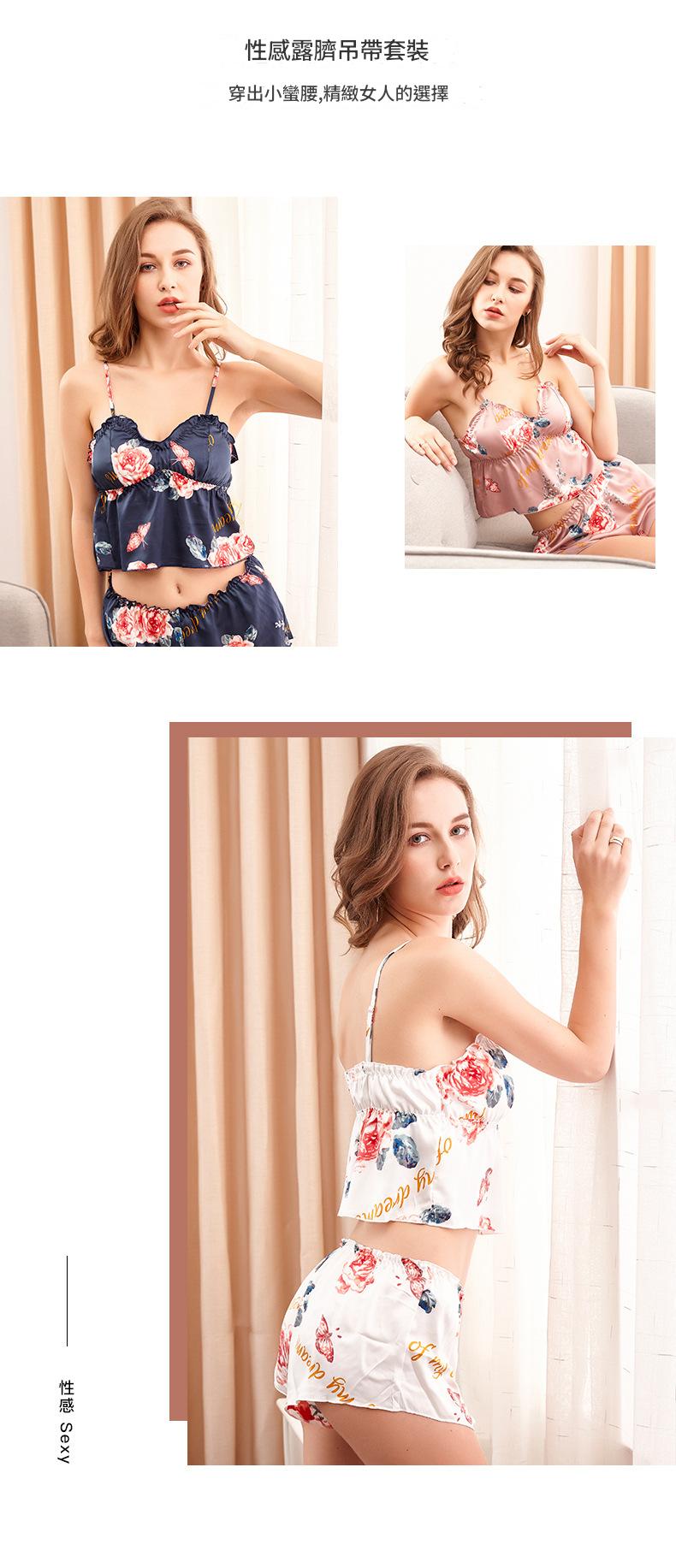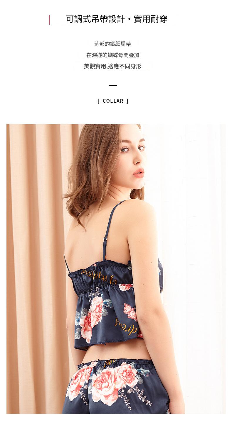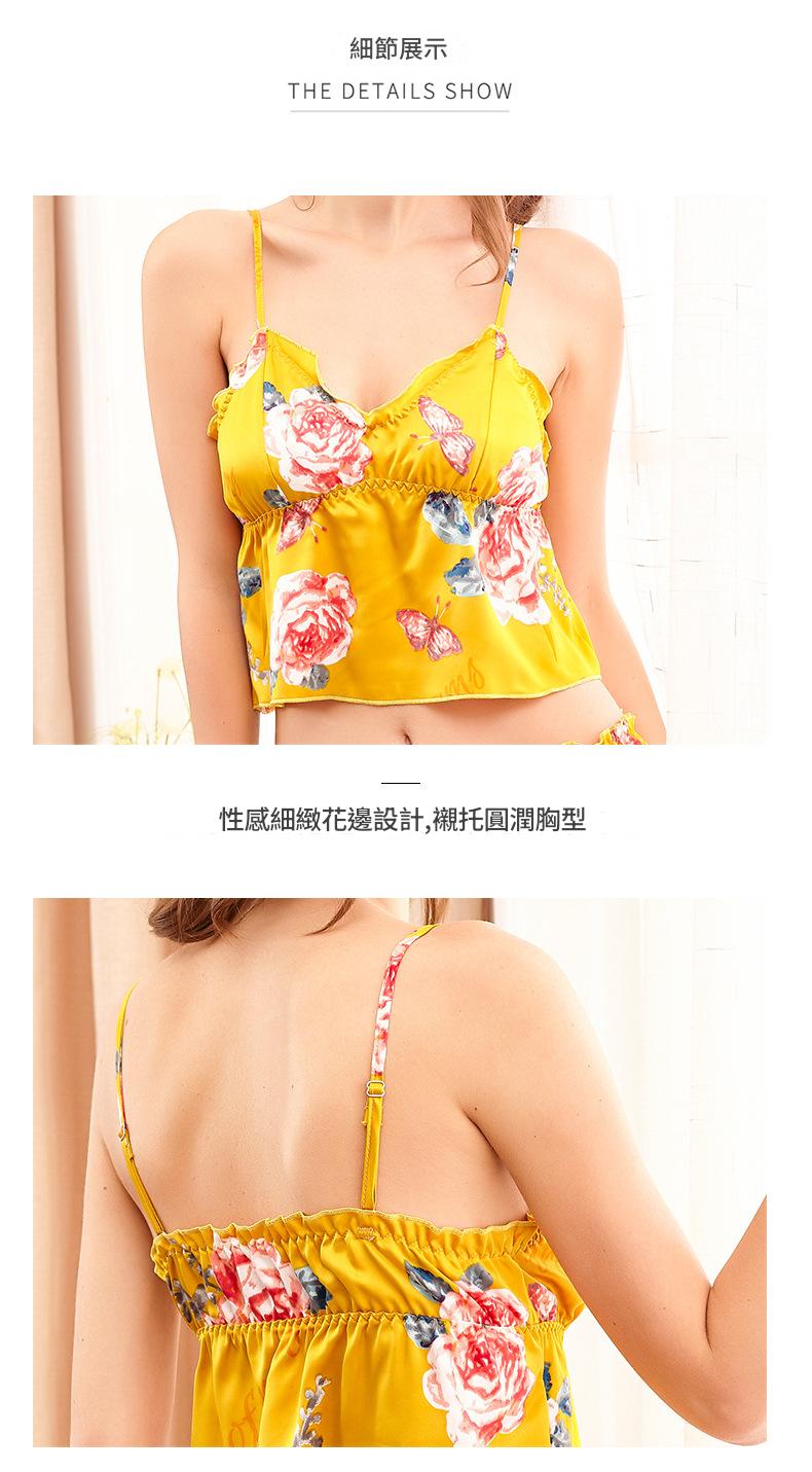 LCBN251225100251 印花冰絲性感睡衣女士夏露臍內衣超短吊帶睡裙短褲情趣套裝女