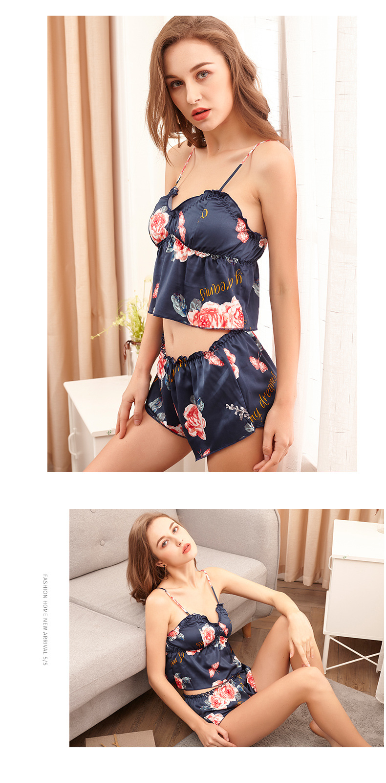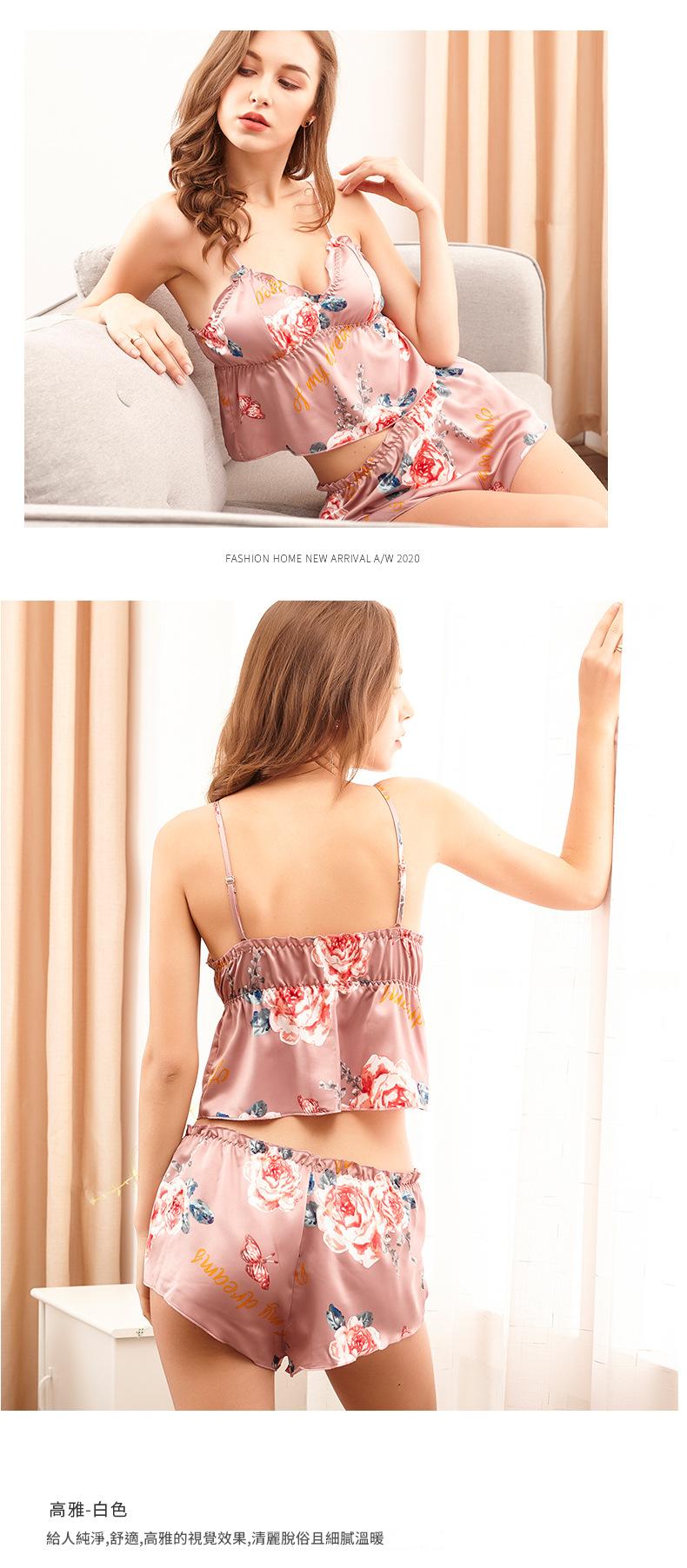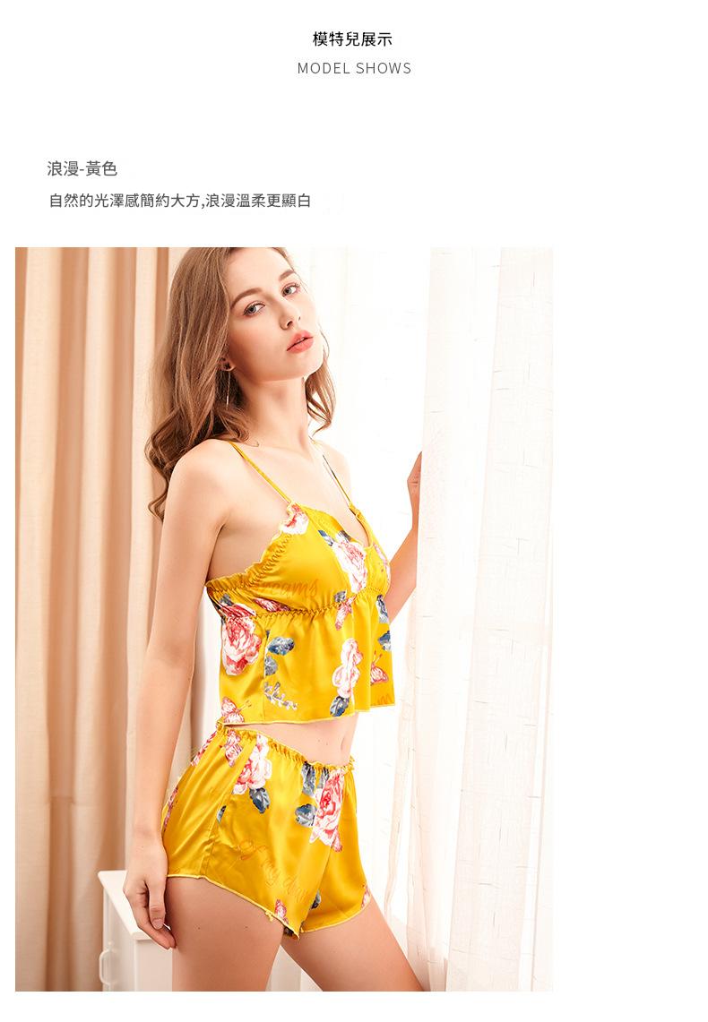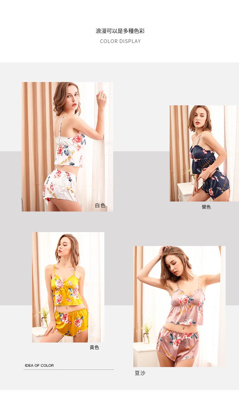 LCBN251225100251 印花冰絲性感睡衣女士夏露臍內衣超短吊帶睡裙短褲情趣套裝女