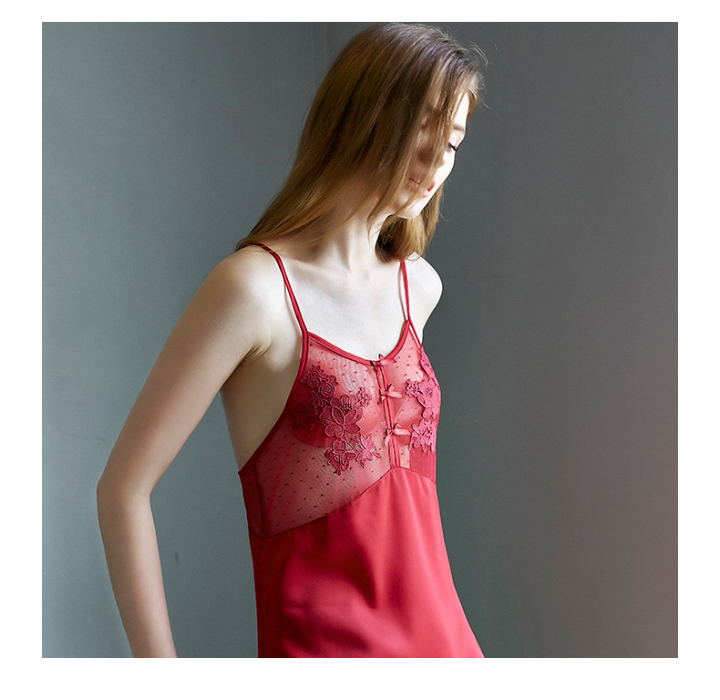 LCBN251225100253 露美背蕾絲誘惑性感睡裙騷冰絲緞面居家吊帶睡衣女士情趣內衣
