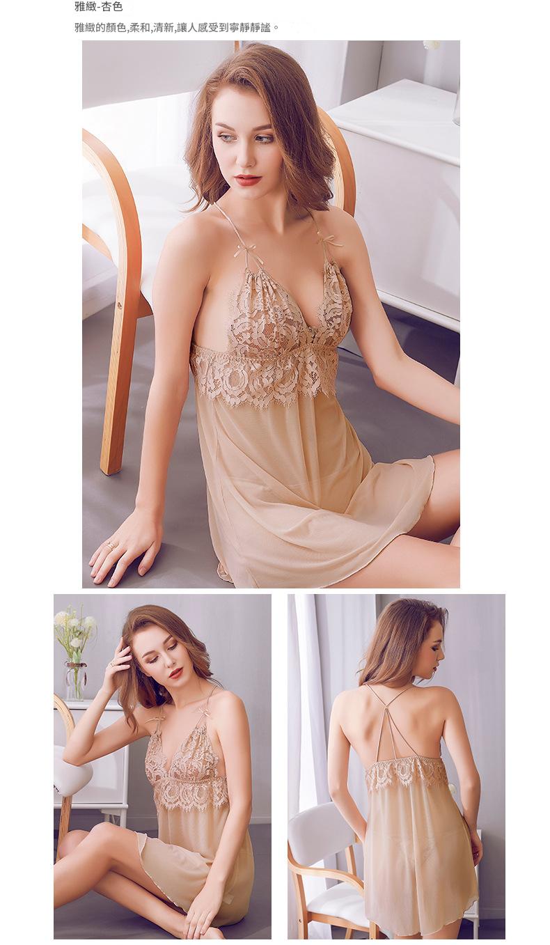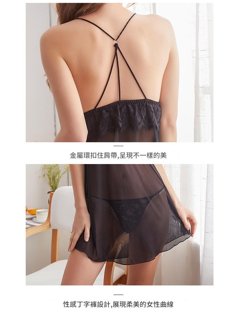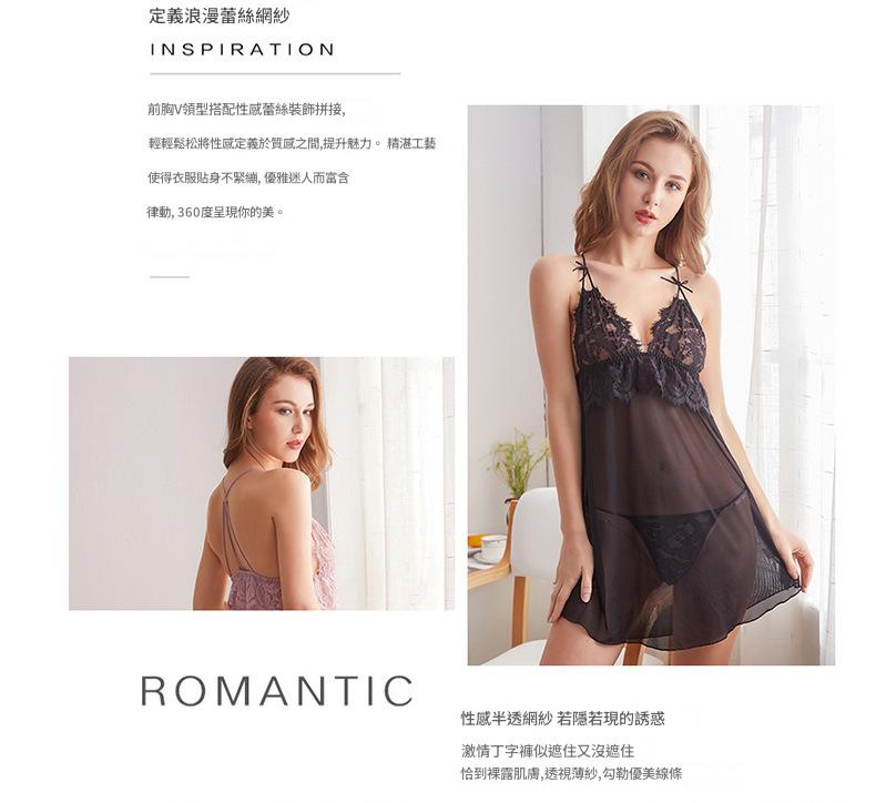 LCBN251225100259 空姐透明情趣睡衣深V新款誘惑吊帶網紗睡裙蕾絲女式性感內衣