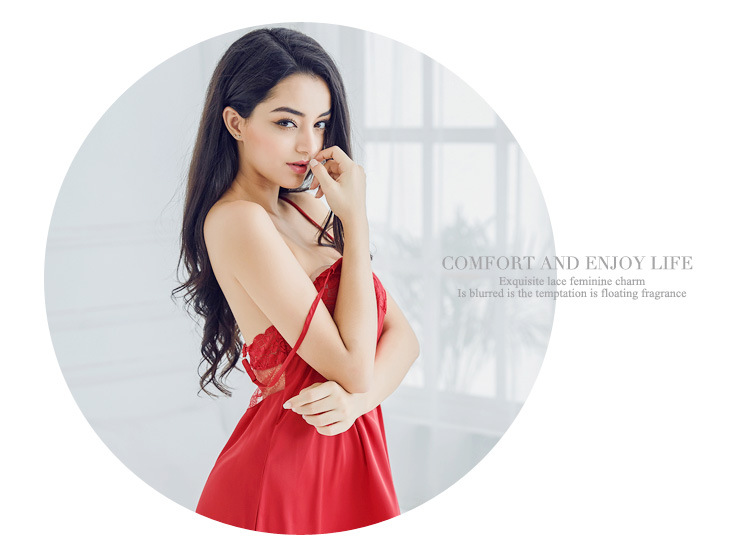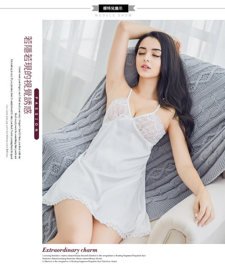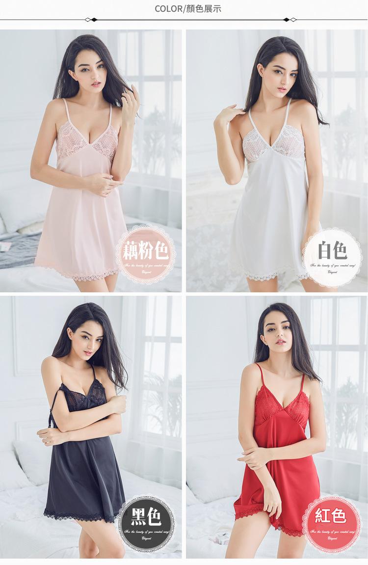 LCBN251225100277 性感夏季蕾絲花邊吊帶睡裙女情趣內衣鏤空美背緞面時尚家居服睡衣