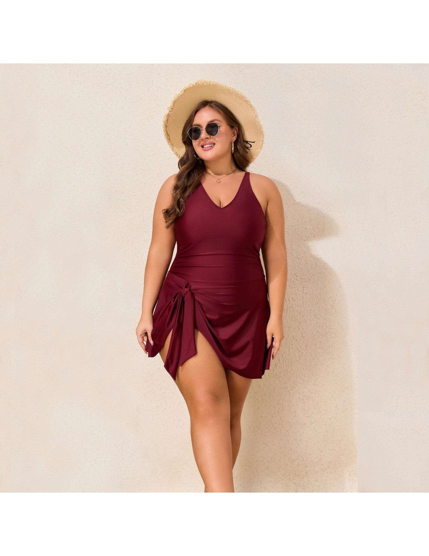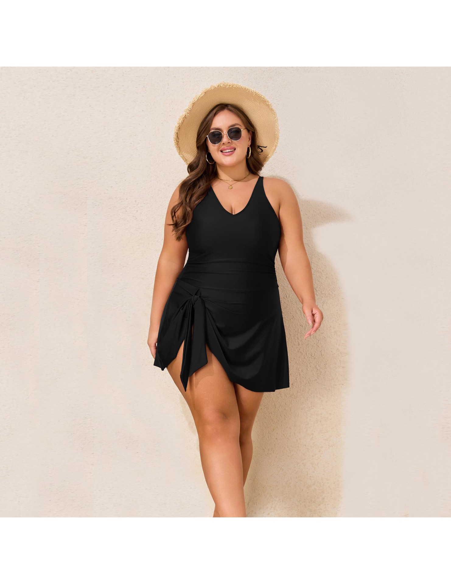 LYXN120100129 2026新款大碼肥婆泳衣純色連體裙式女士泳裝比基尼游泳衣