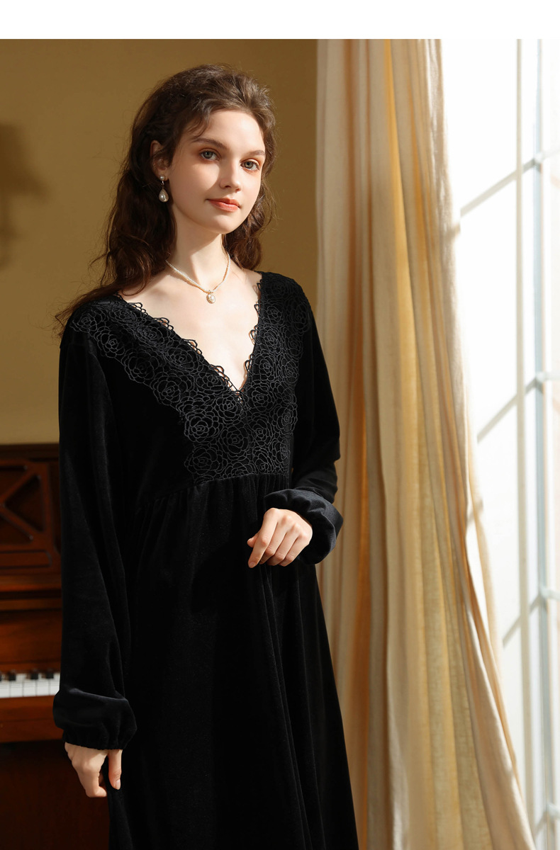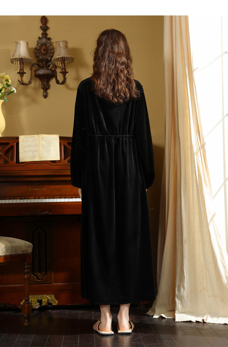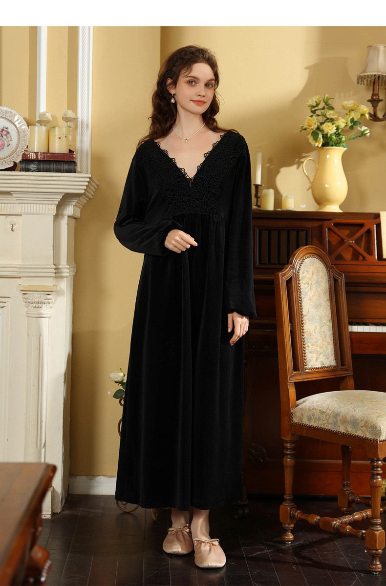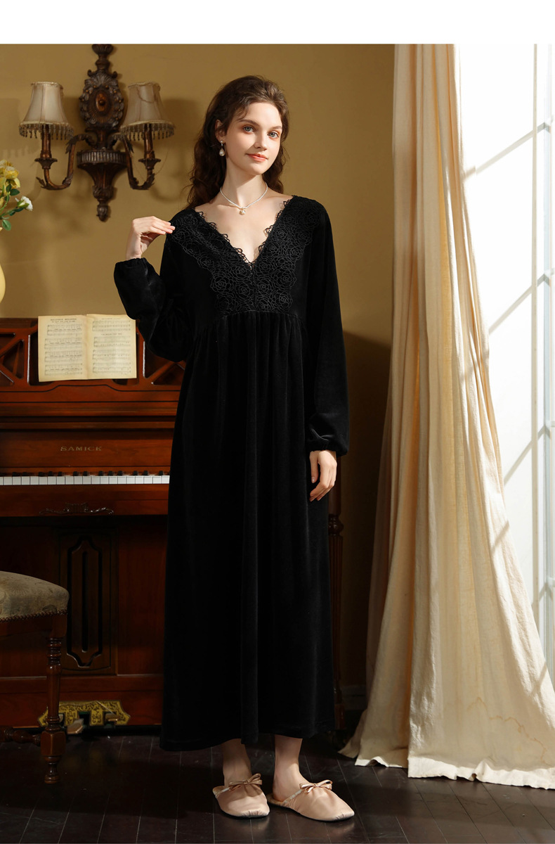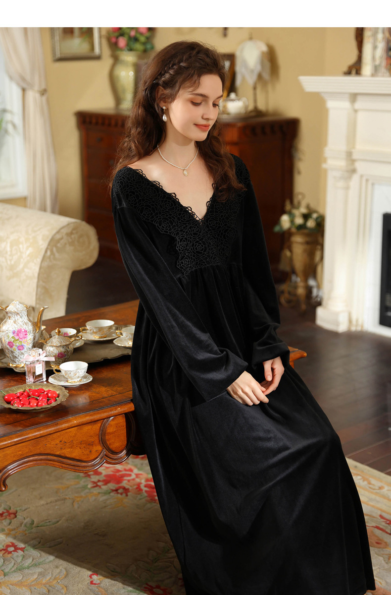 TCLN122100005 長袖新款睡裙女春秋冬宮廷風長裙保暖黑色睡衣外穿修身大碼家居服