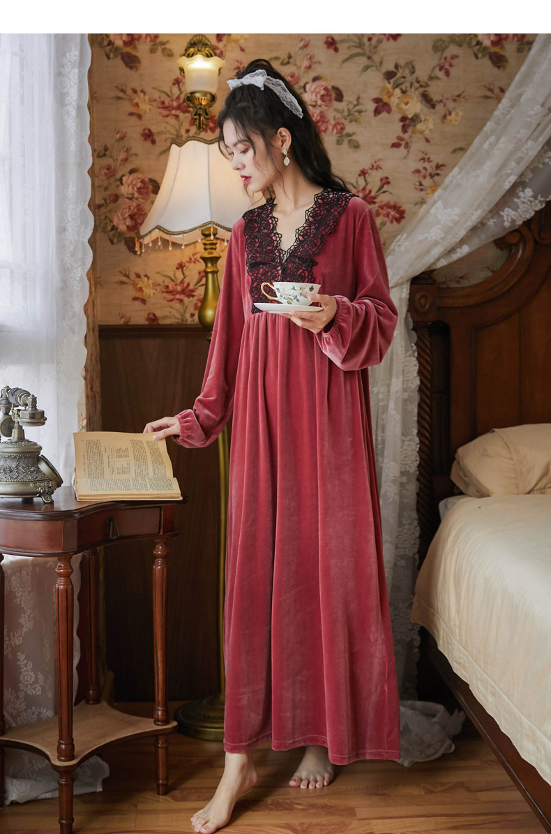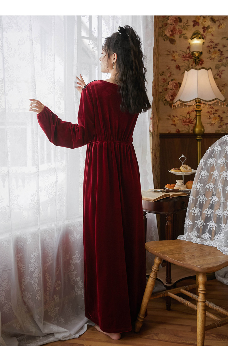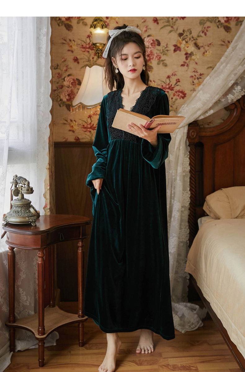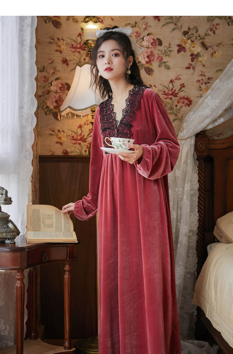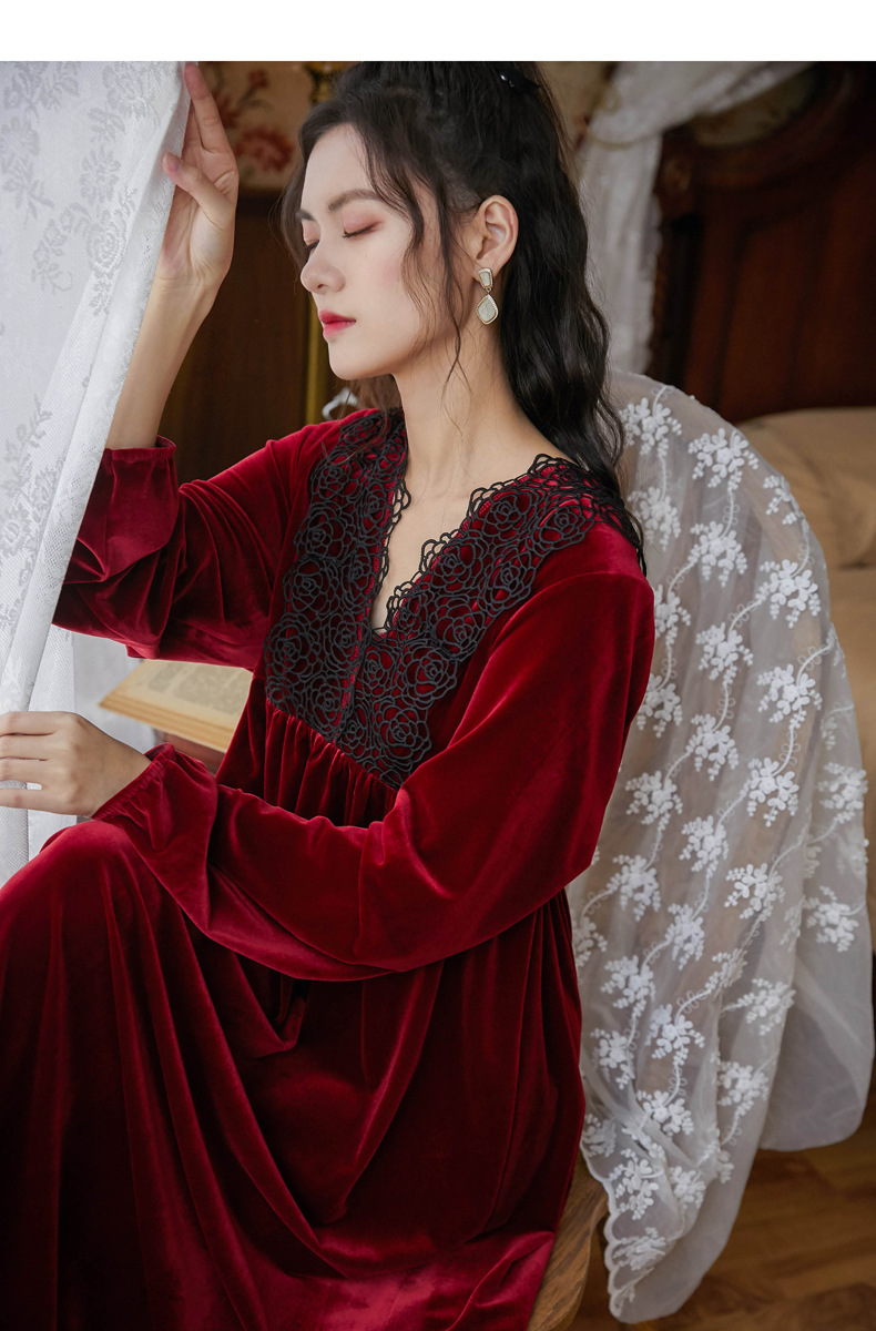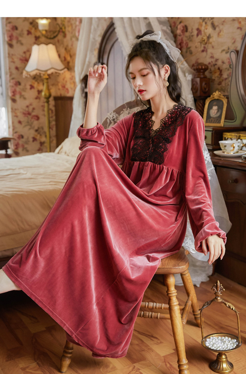 TCLN122100005 長袖新款睡裙女春秋冬宮廷風長裙保暖黑色睡衣外穿修身大碼家居服