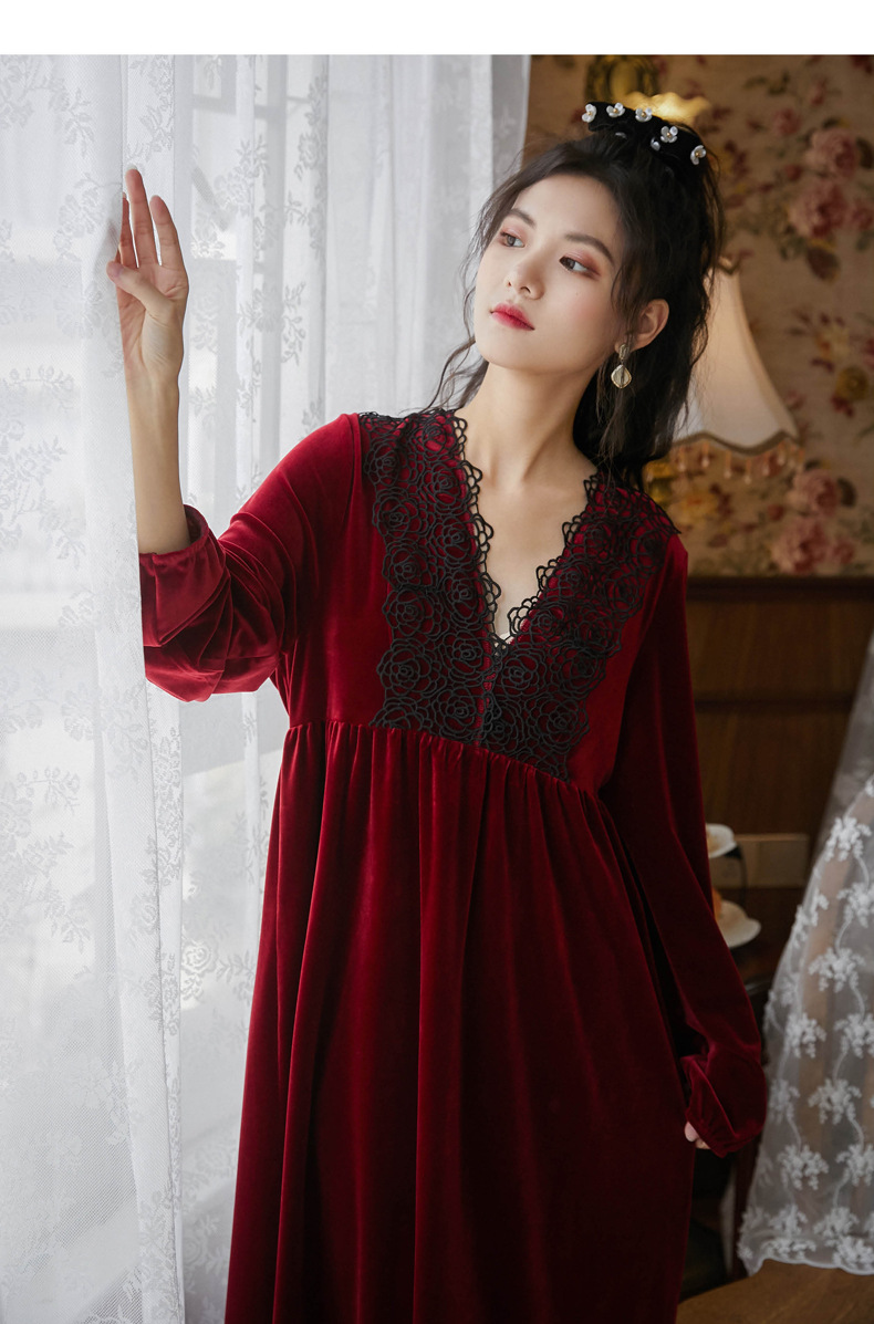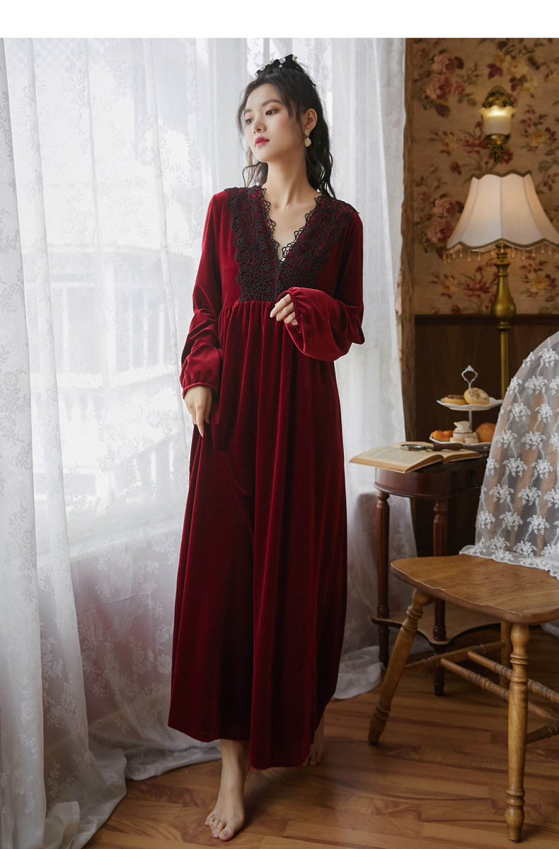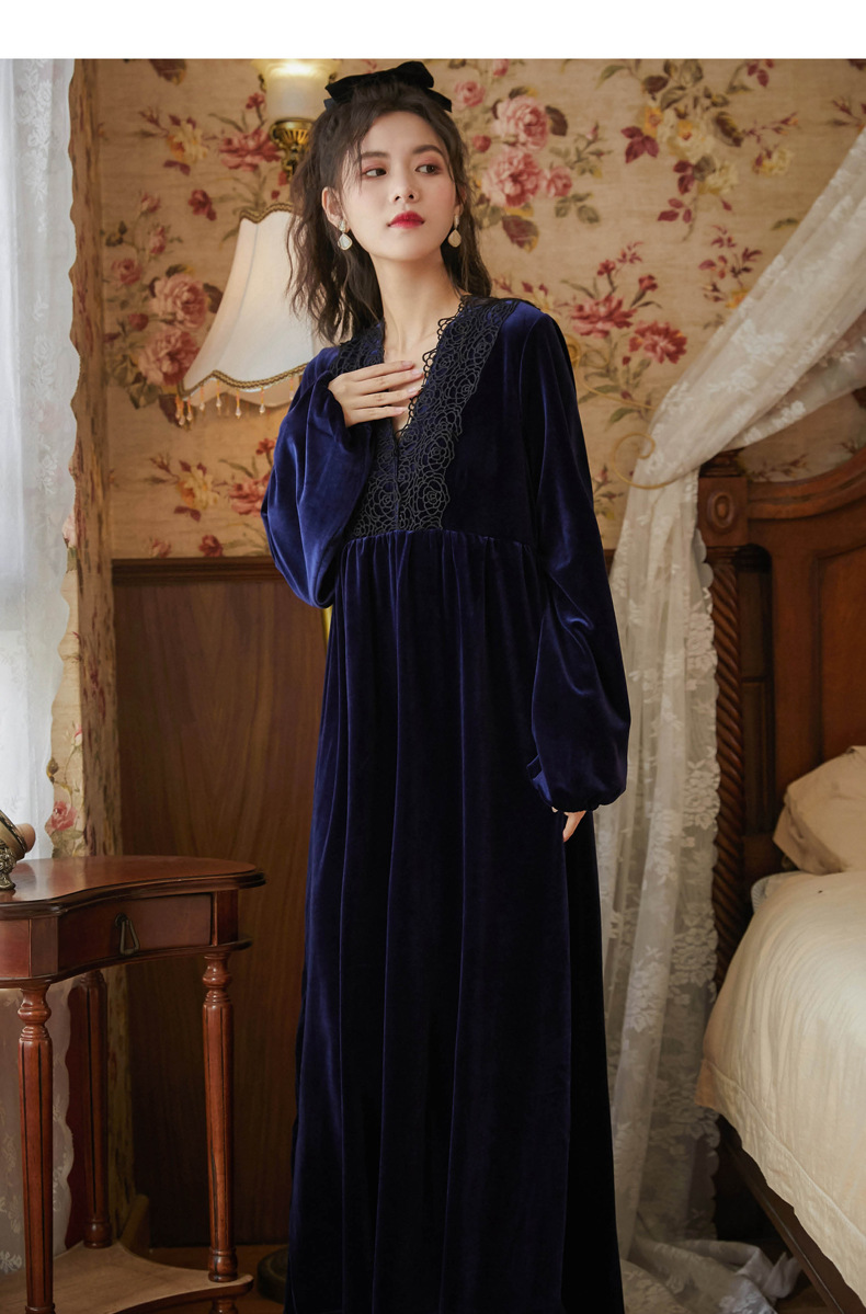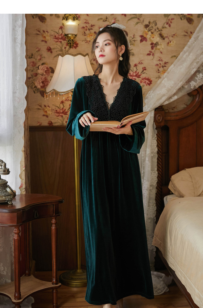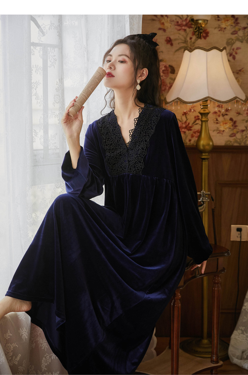 TCLN122100005 長袖新款睡裙女春秋冬宮廷風長裙保暖黑色睡衣外穿修身大碼家居服