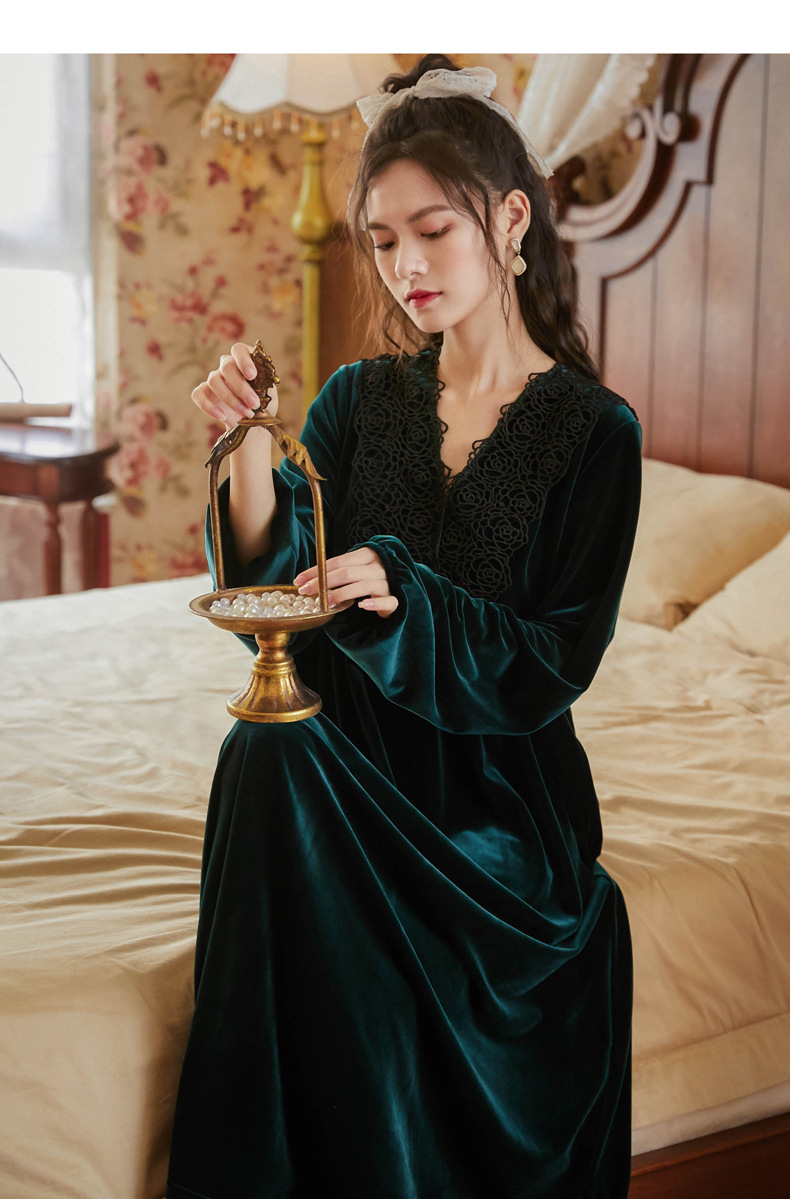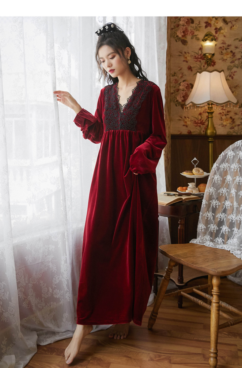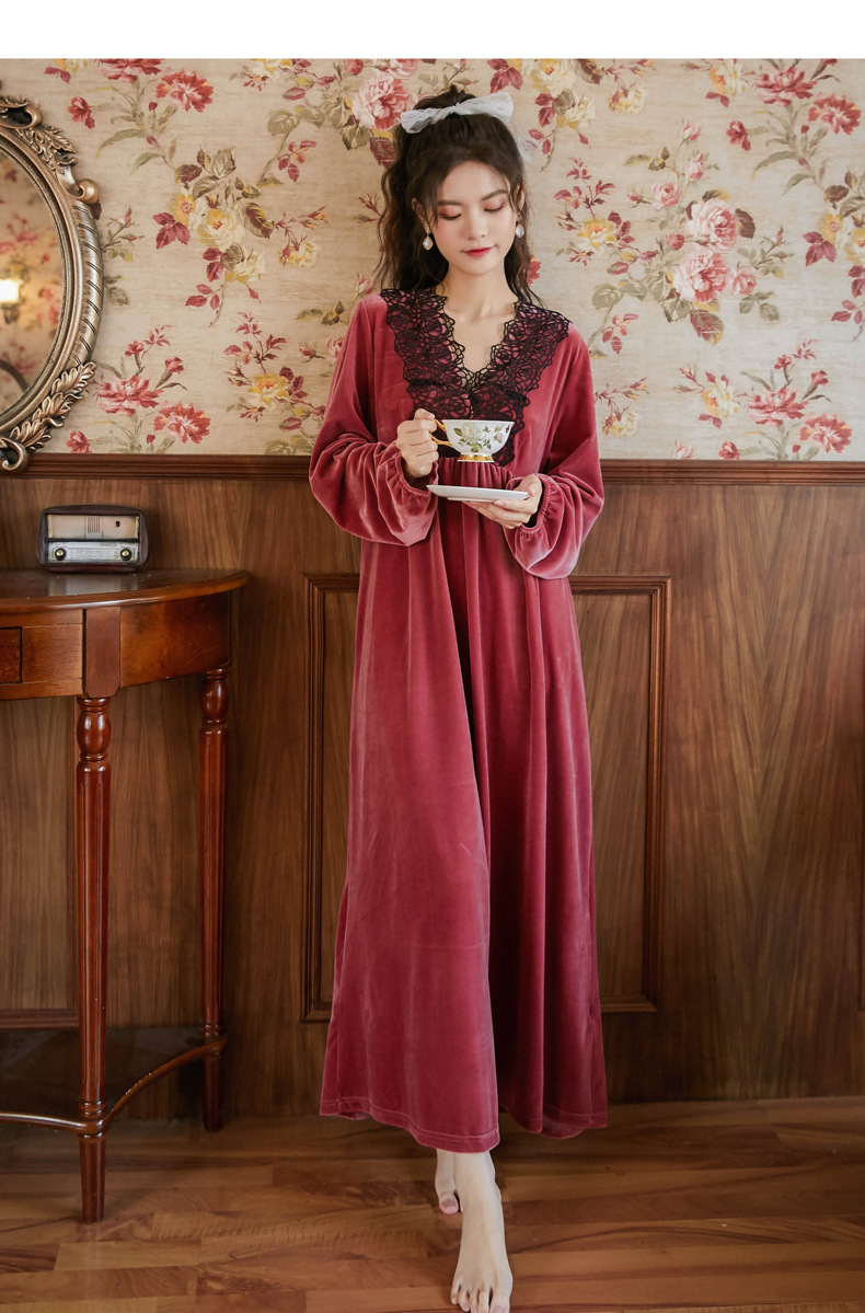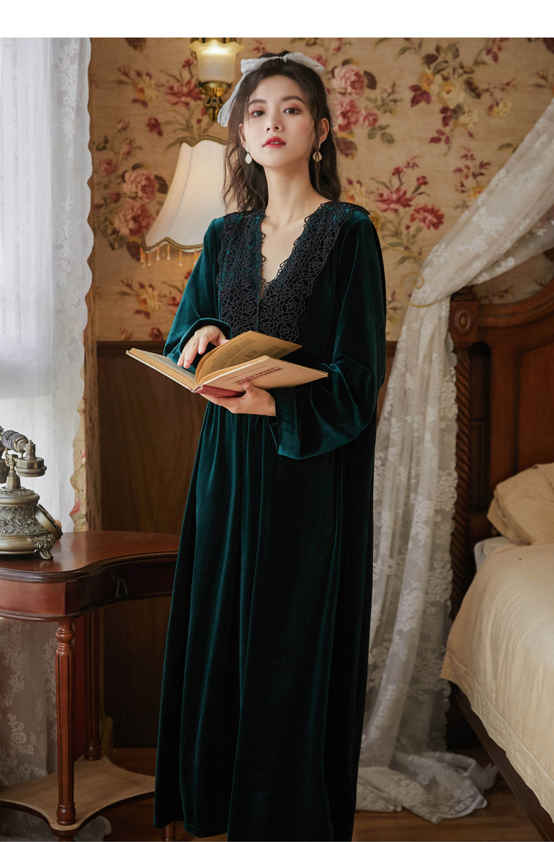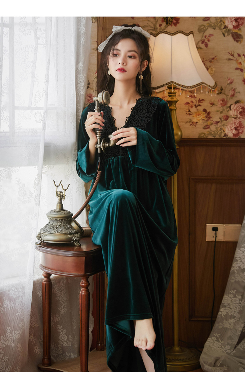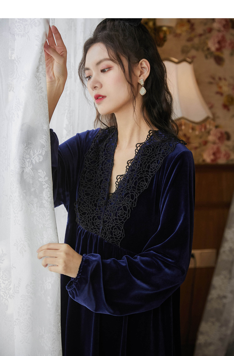 TCLN122100005 長袖新款睡裙女春秋冬宮廷風長裙保暖黑色睡衣外穿修身大碼家居服