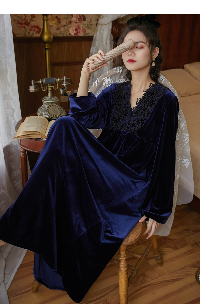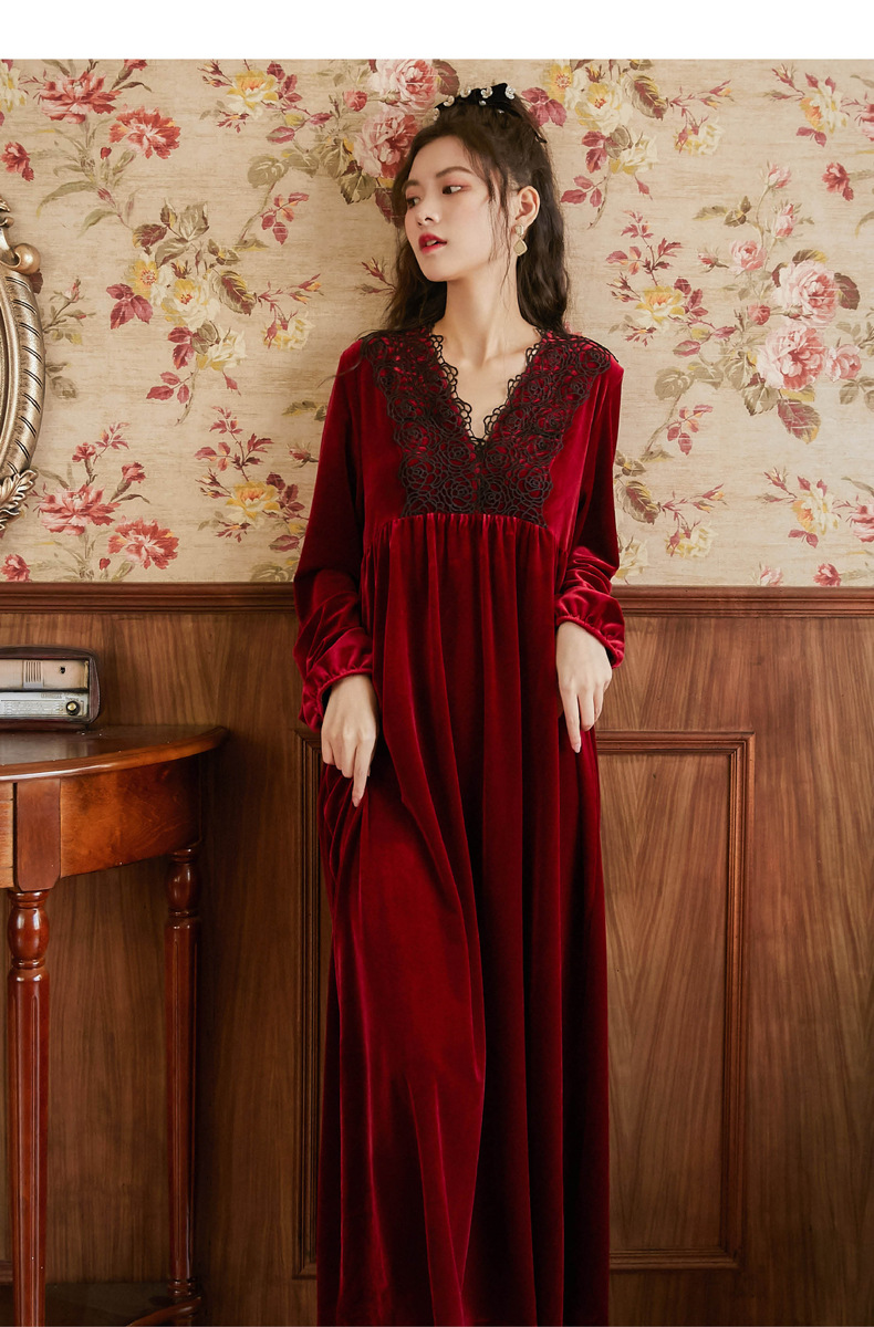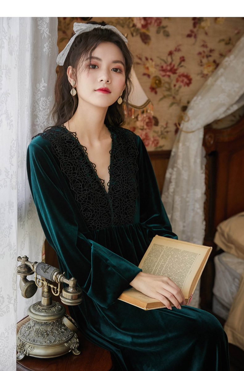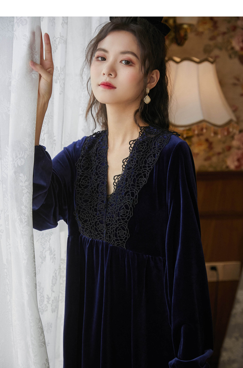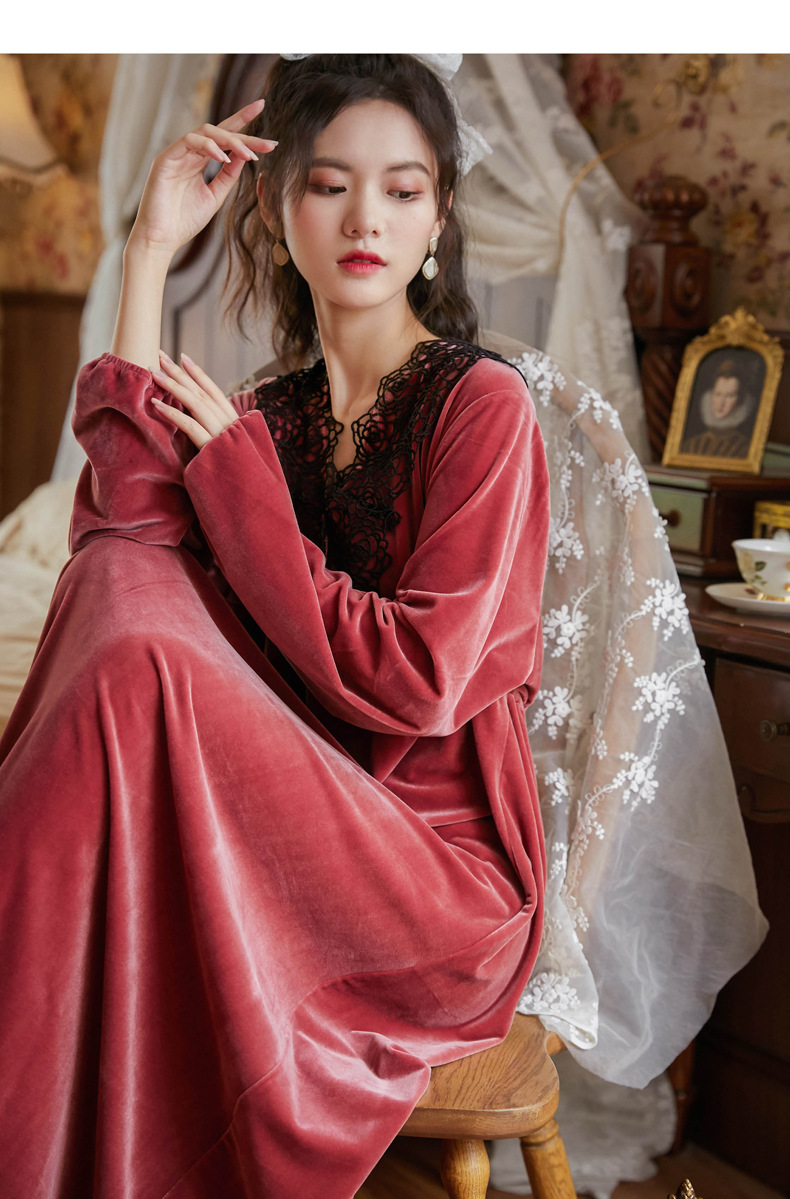TCLN122100005 長袖新款睡裙女春秋冬宮廷風長裙保暖黑色睡衣外穿修身大碼家居服