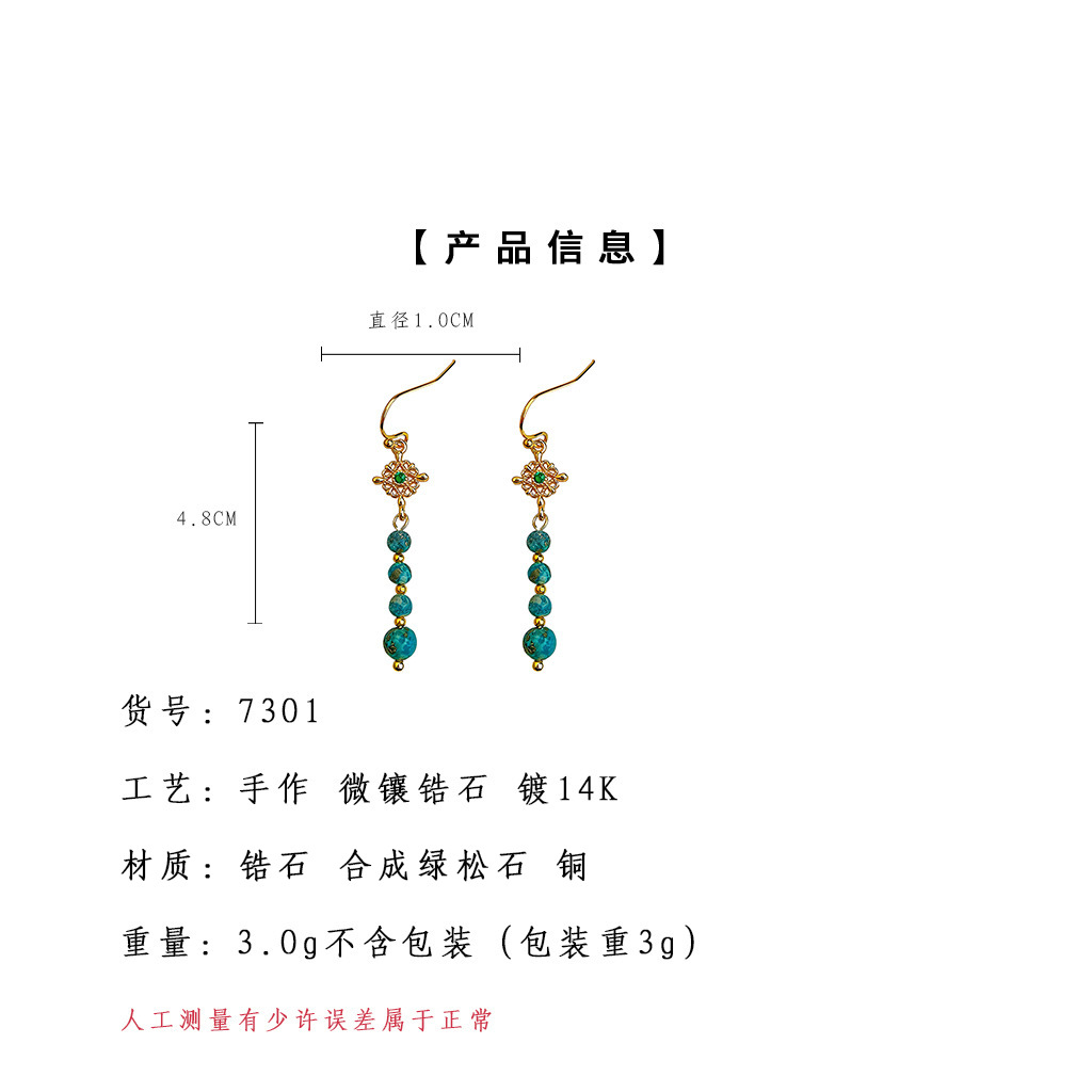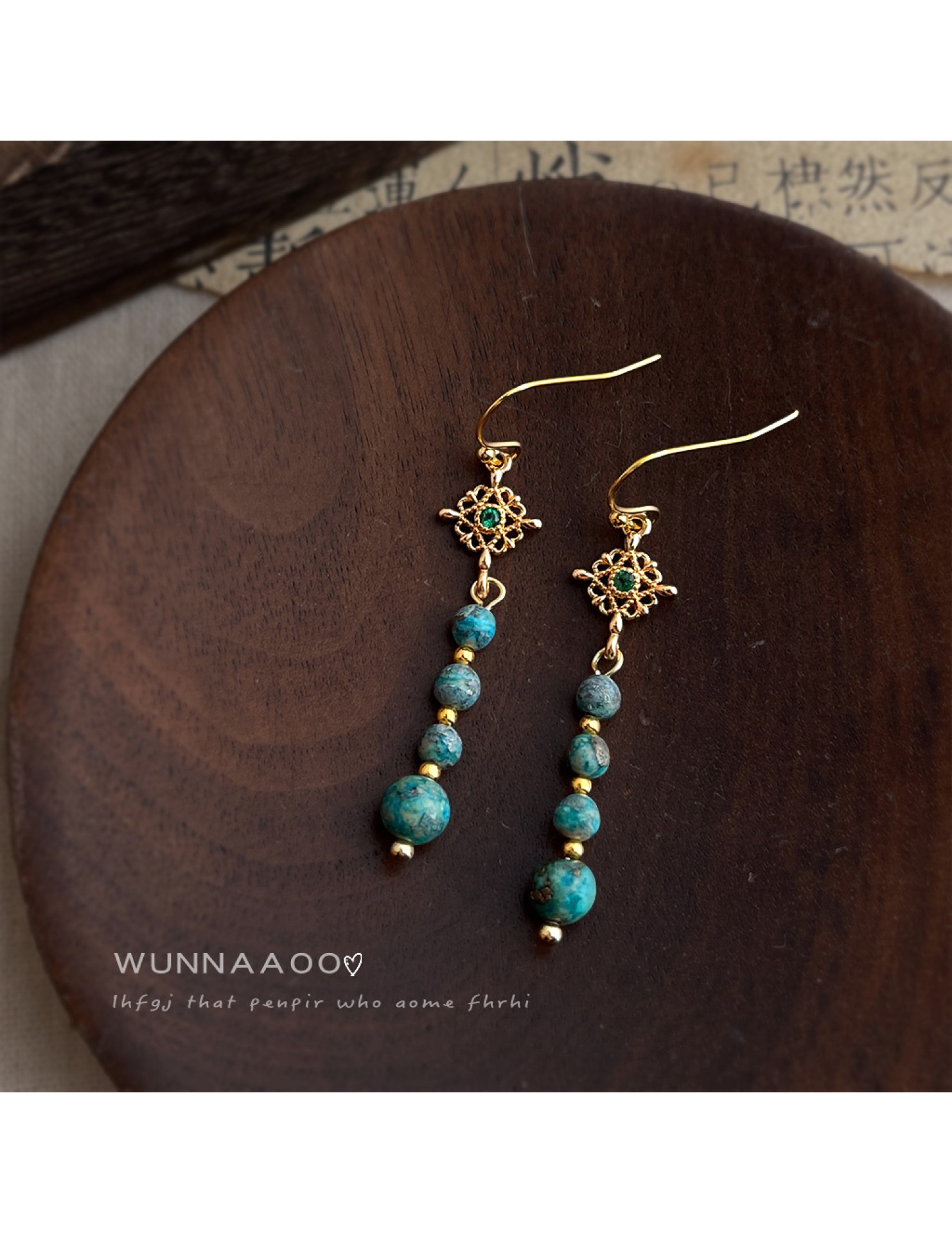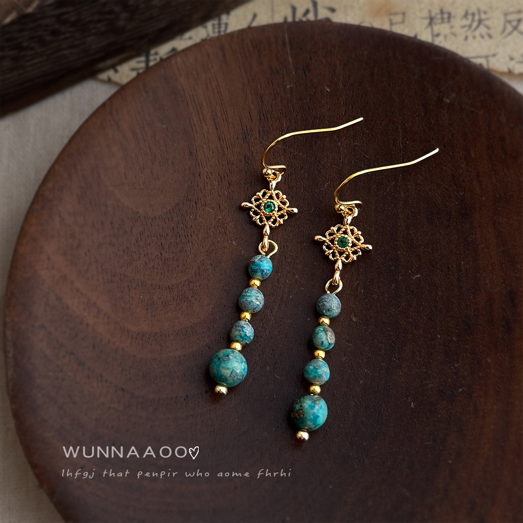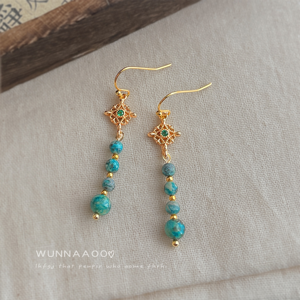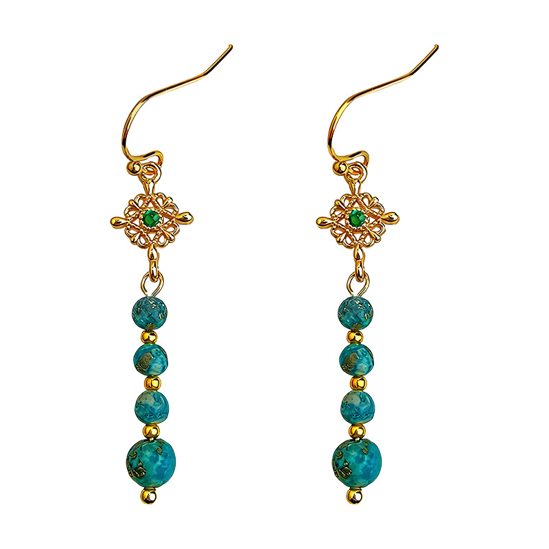 HELN124100381 復古新中式長款合成松石石手工流蘇耳環氣質新款飾品