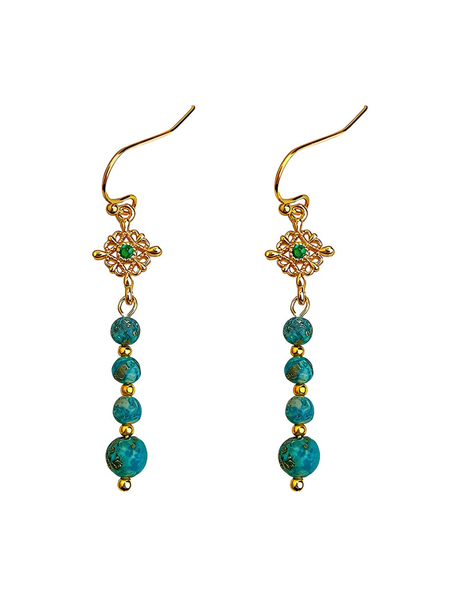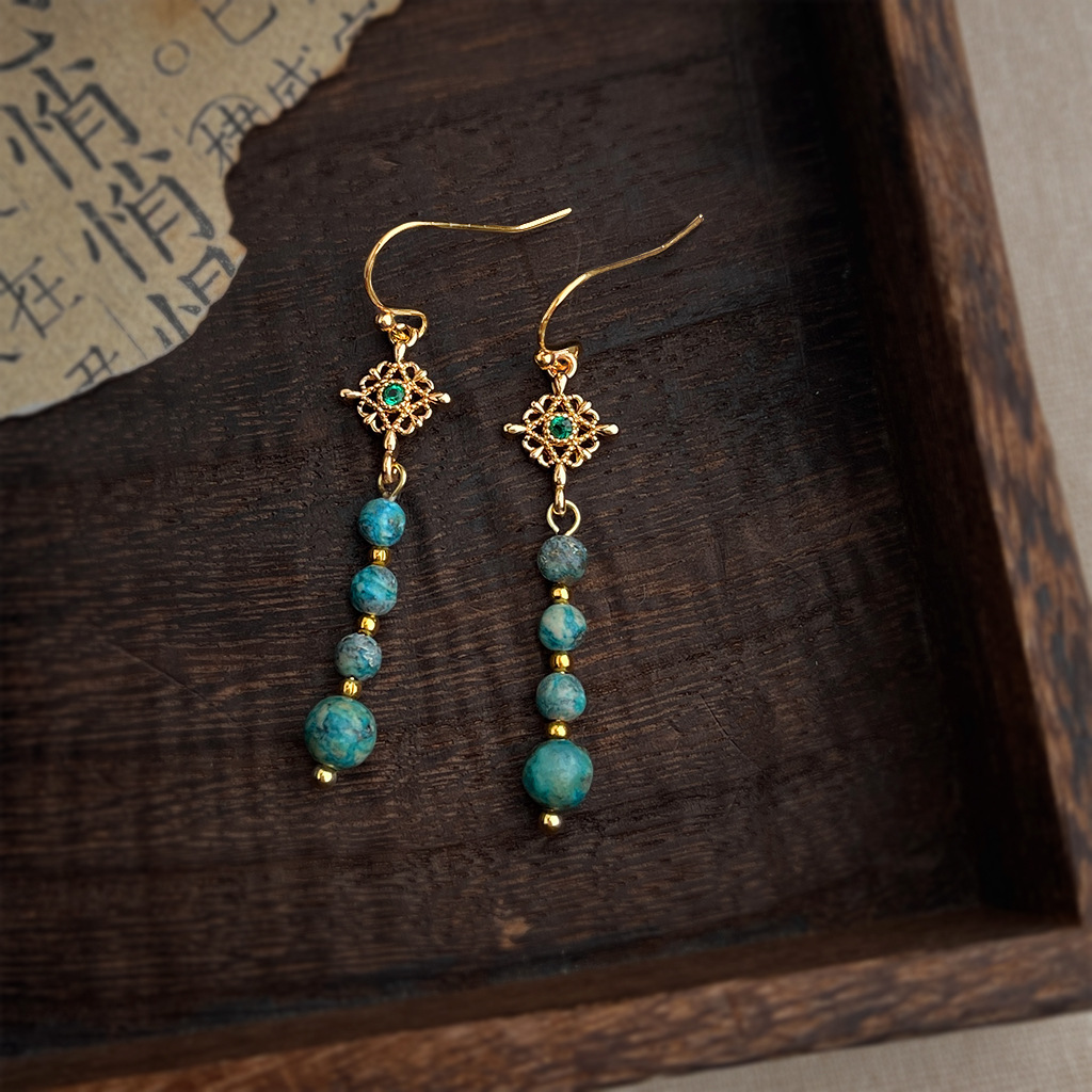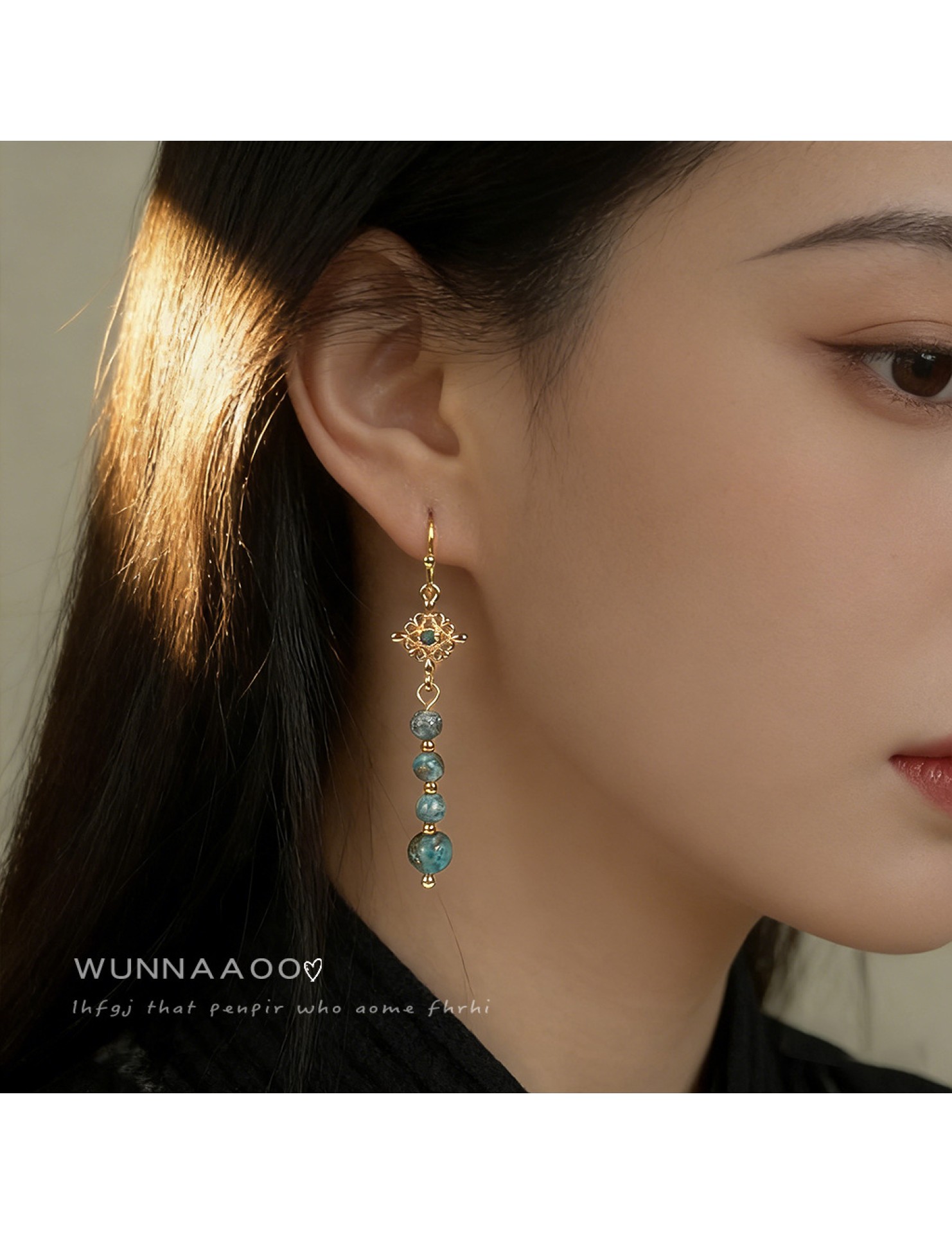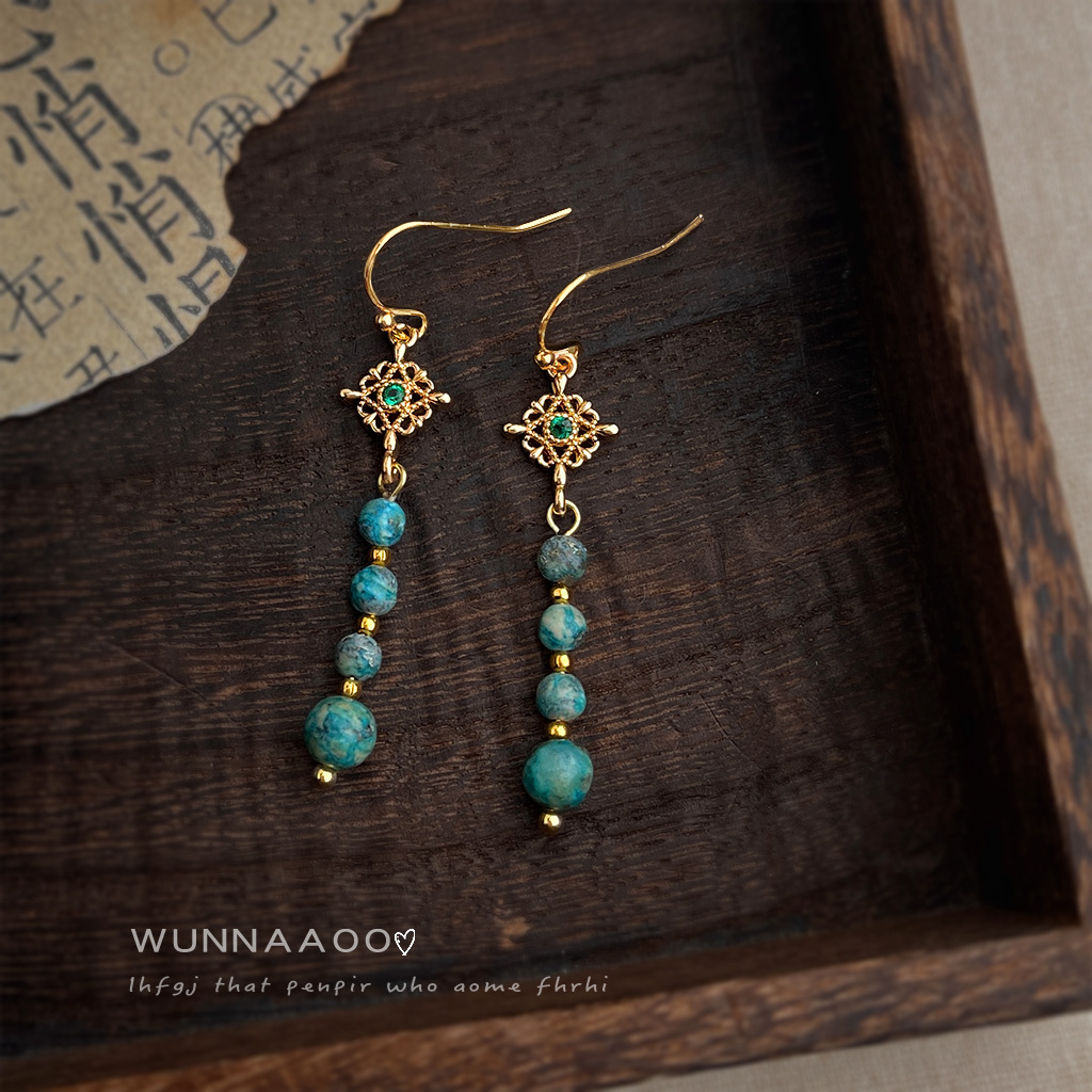 HELN124100381 復古新中式長款合成松石石手工流蘇耳環氣質新款飾品