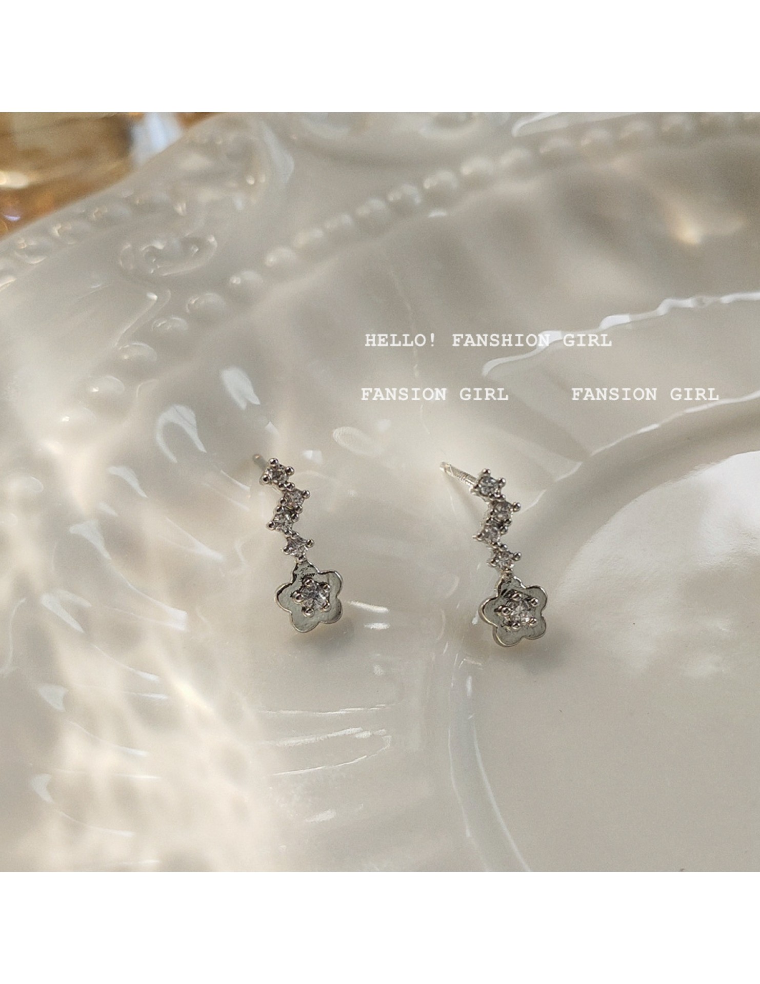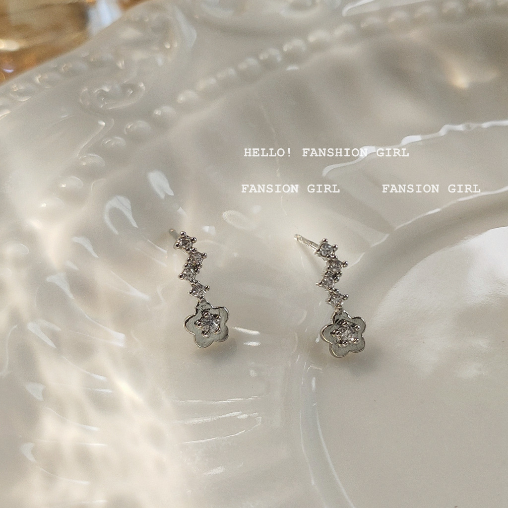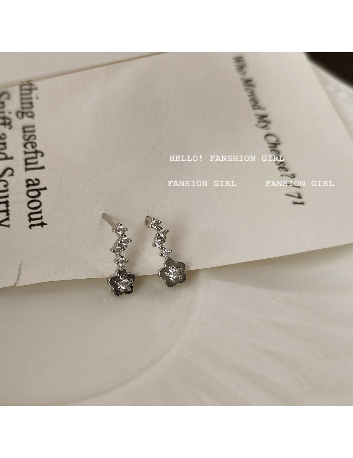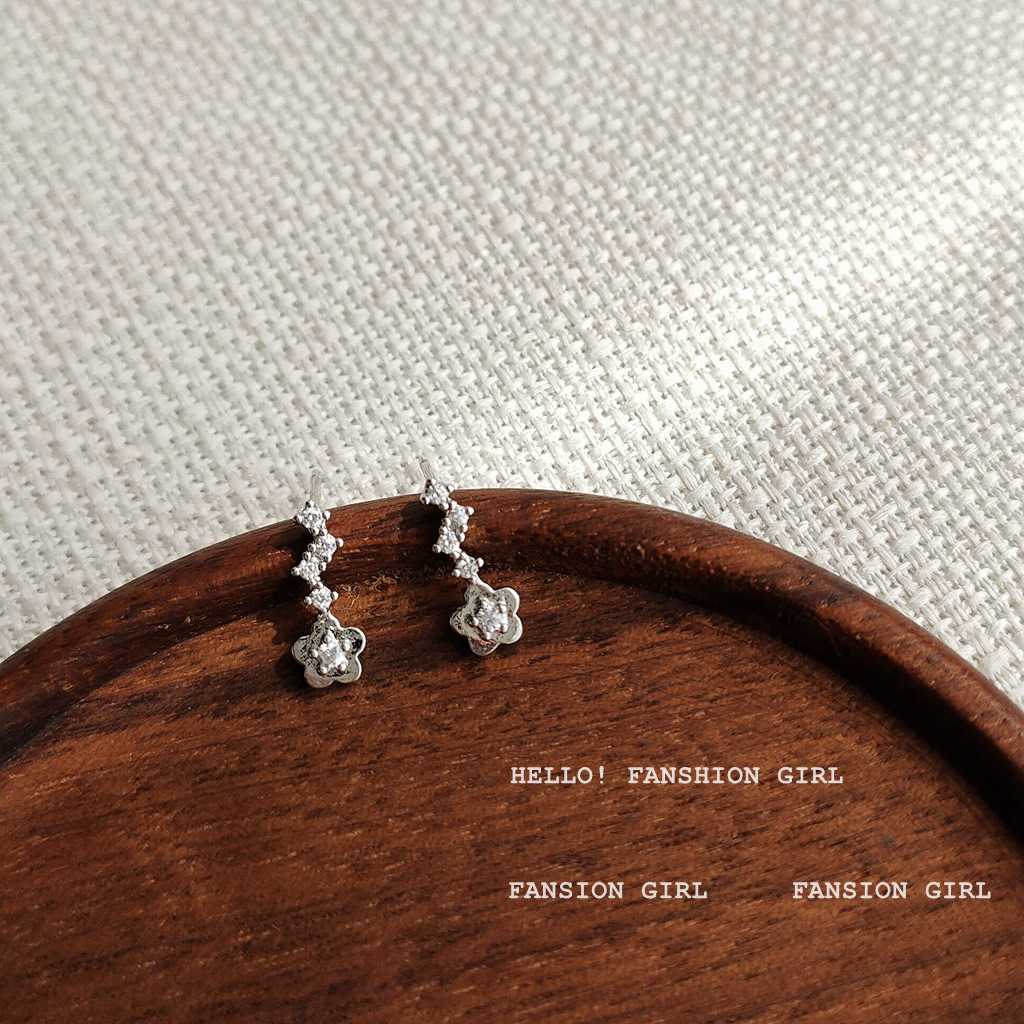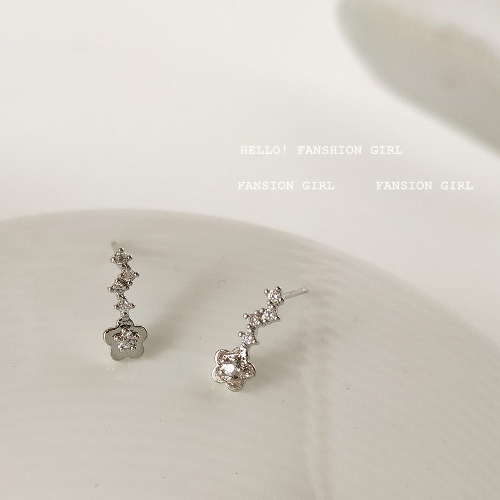 HELN124100386 迷你鋯石小花耳釘女925銀針銀色日韓日常款出勤耳飾潮耳環飾品