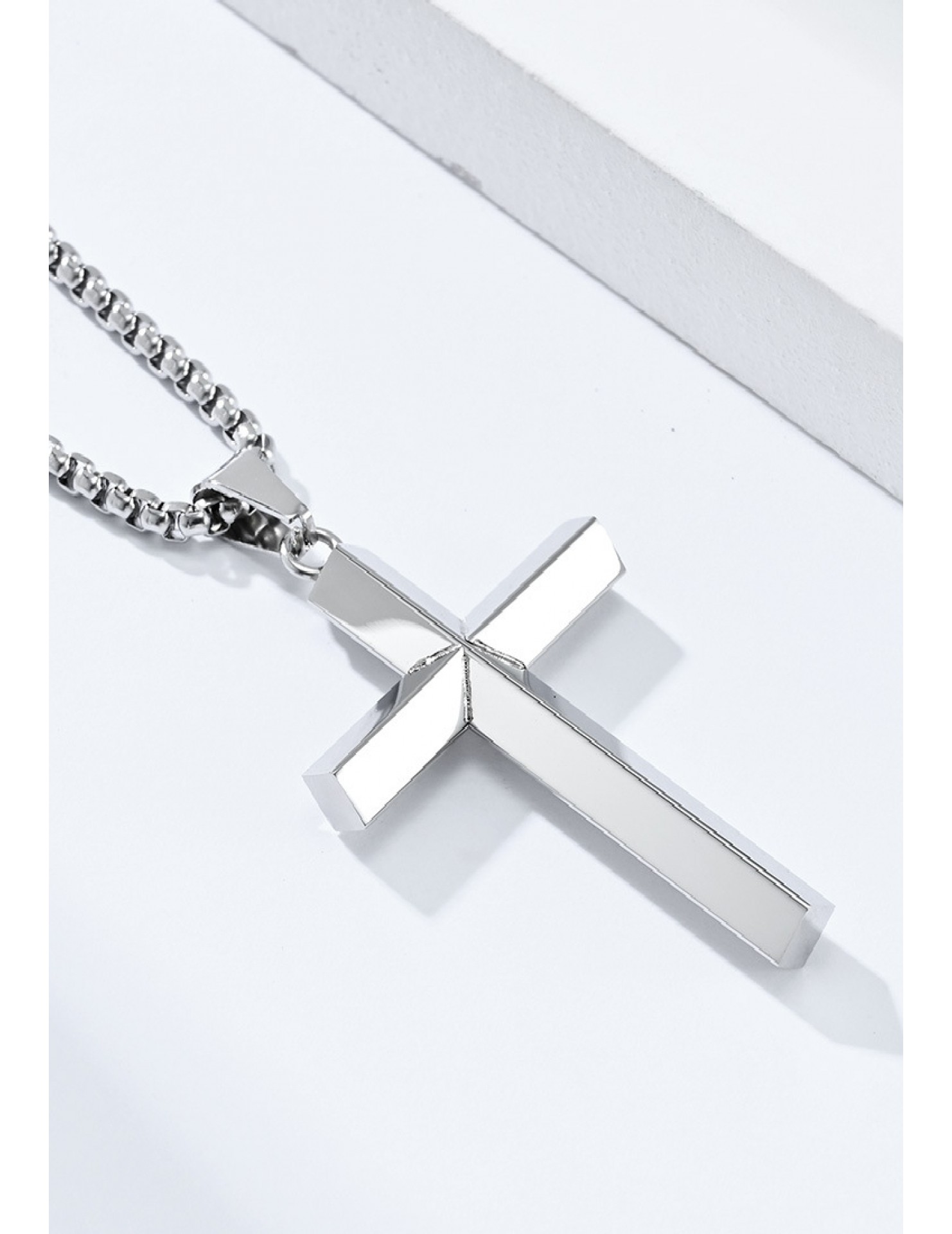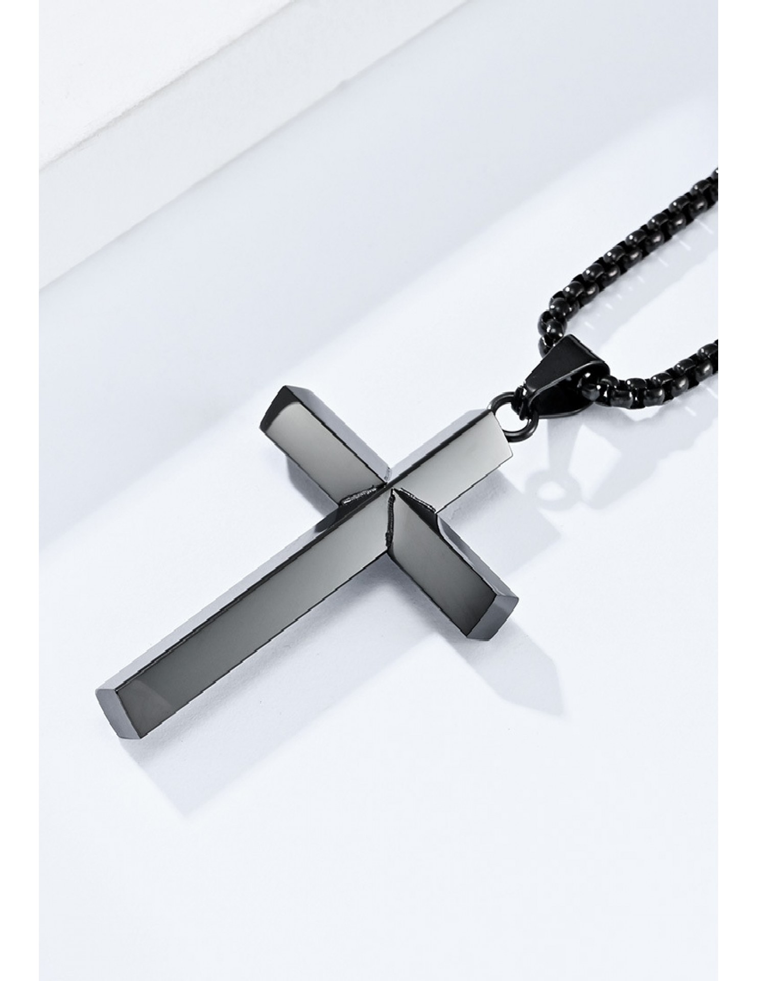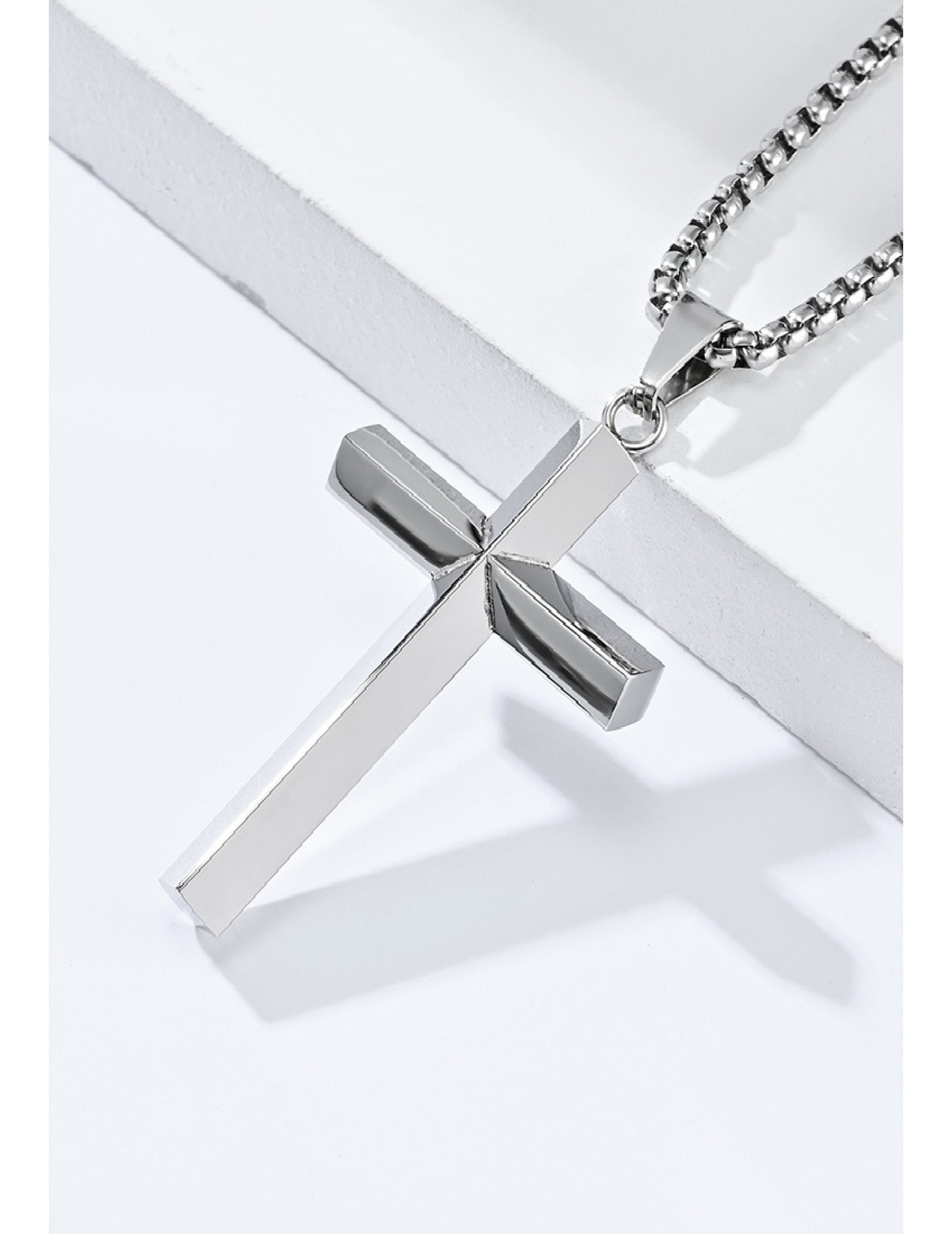JSC3028 316L鈦鋼簡約菱形鏡面十字架項鏈