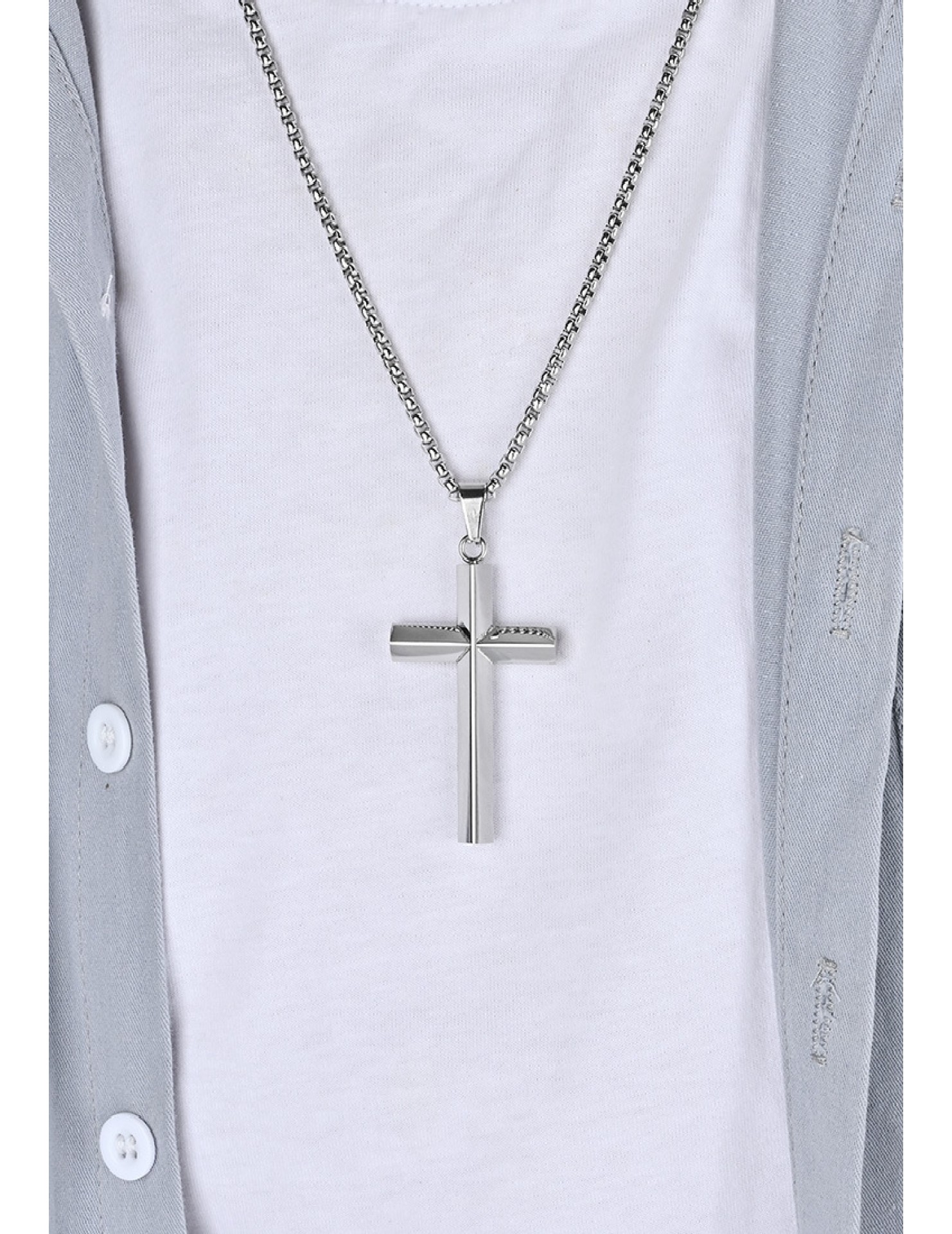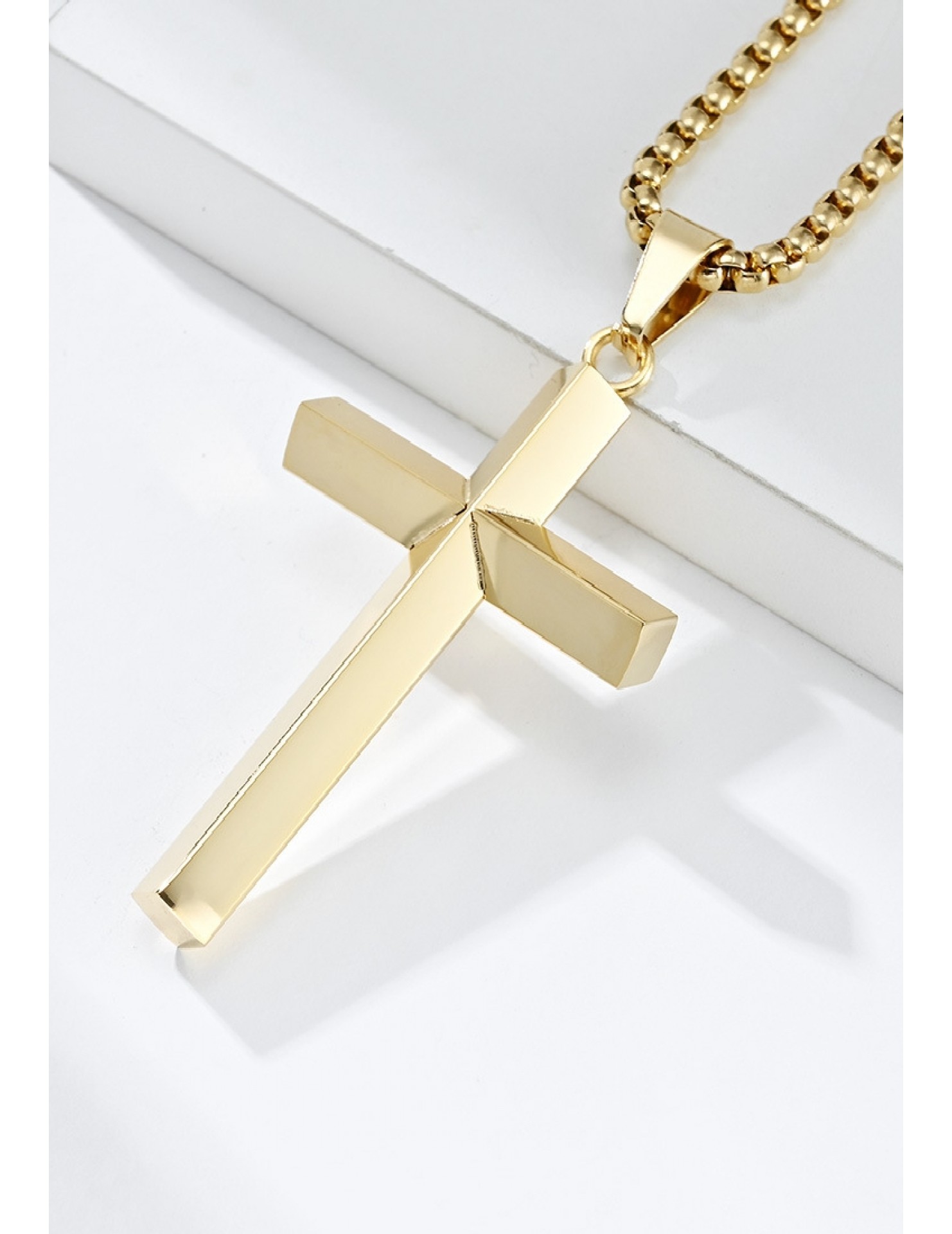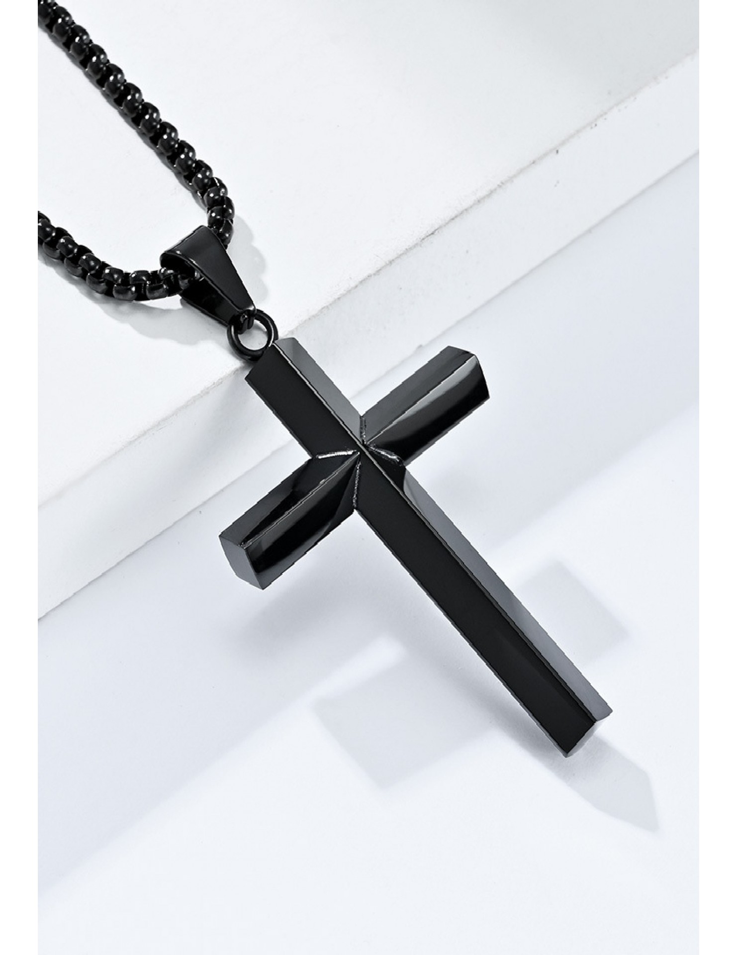 JSC3028 316L鈦鋼簡約菱形鏡面十字架項鏈