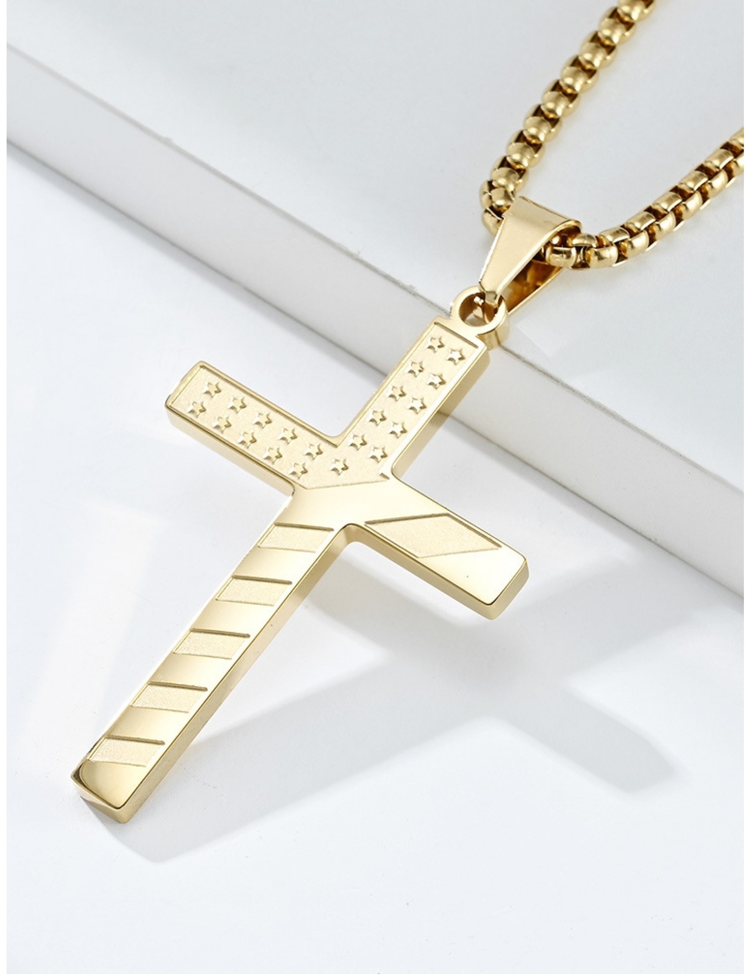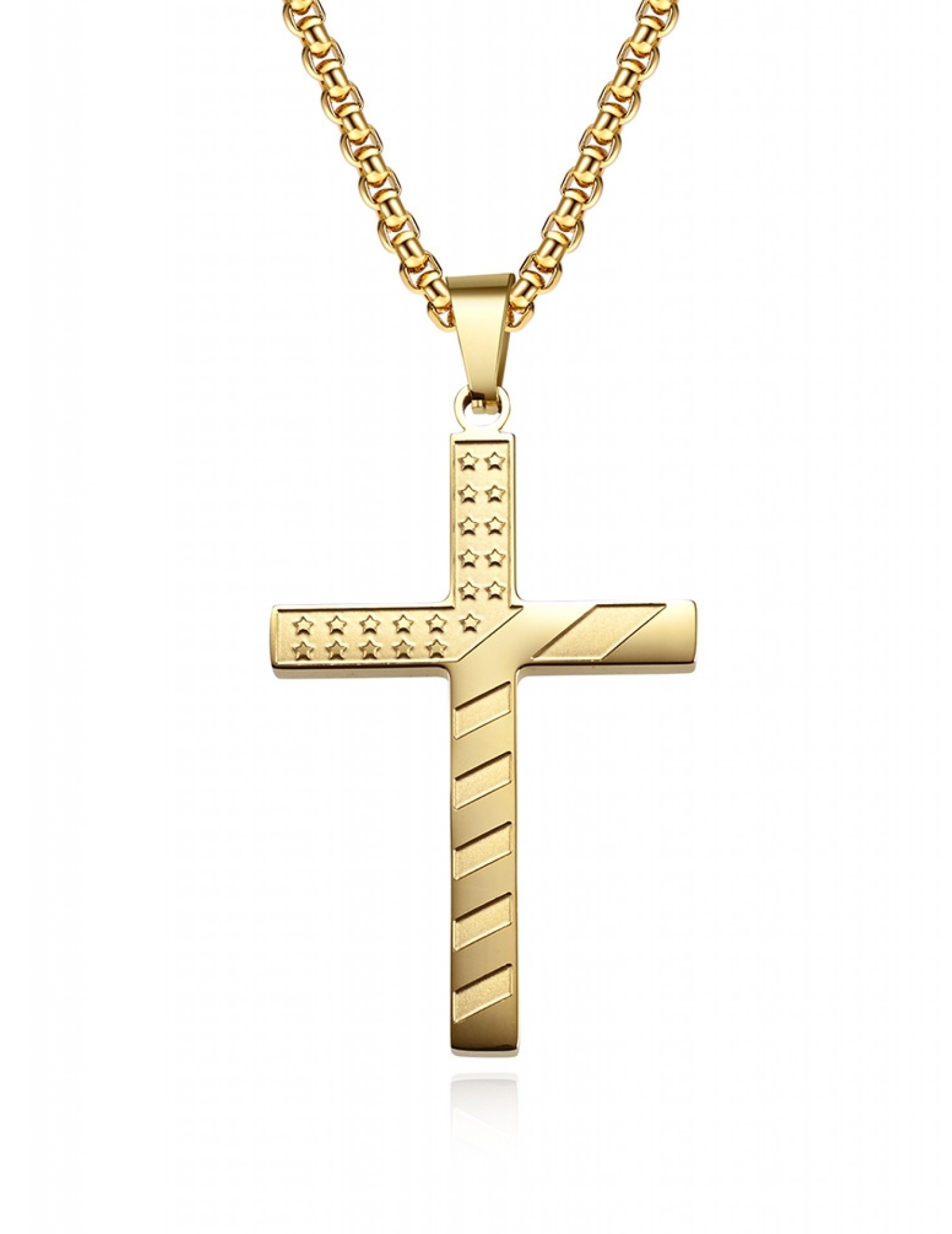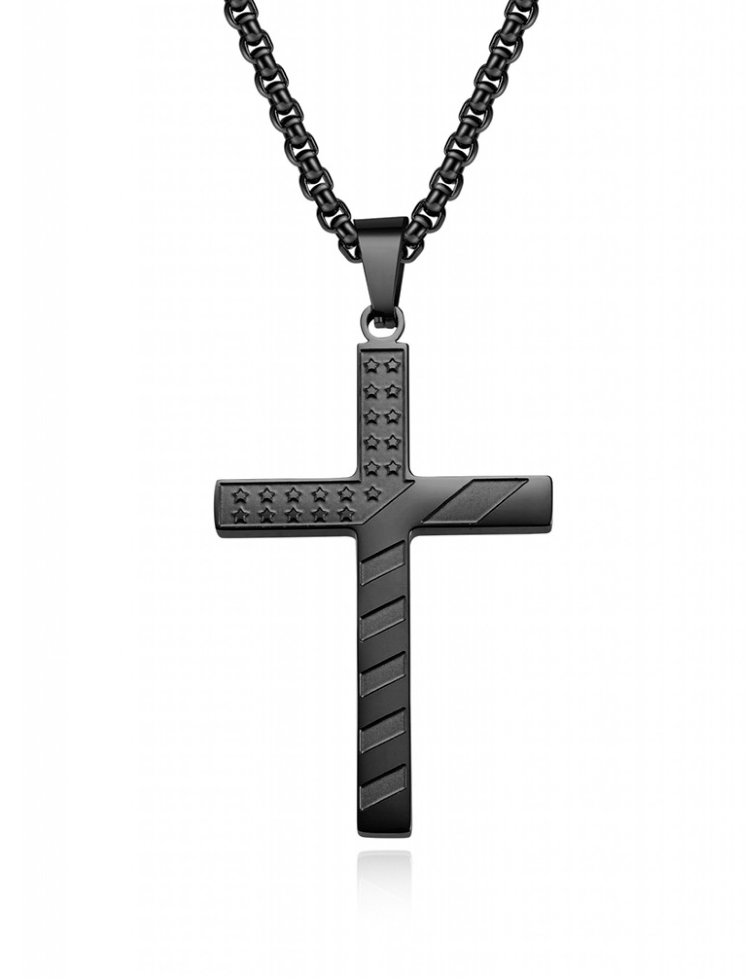 JSC3105 316L鈦鋼美國星條旗十字架項鏈