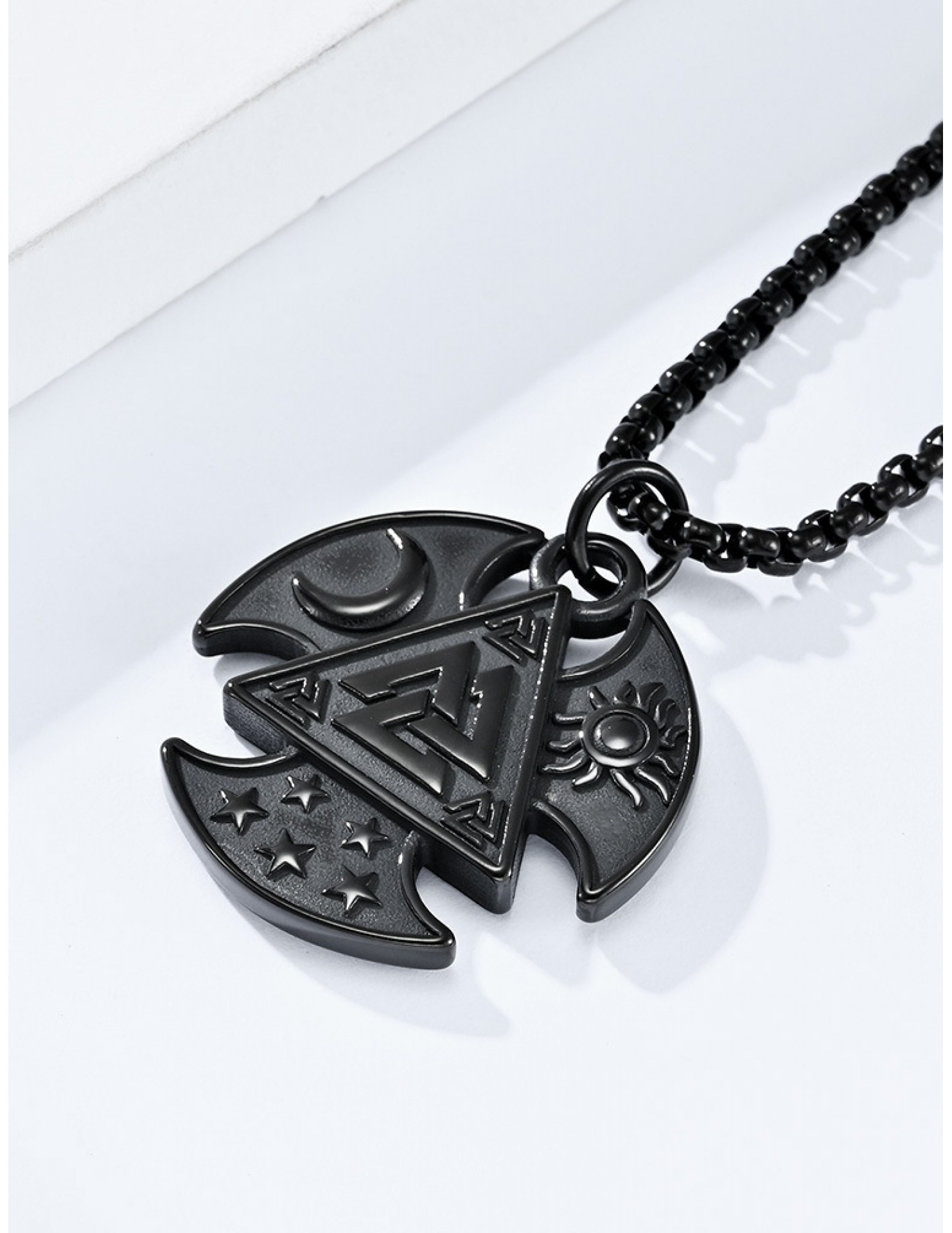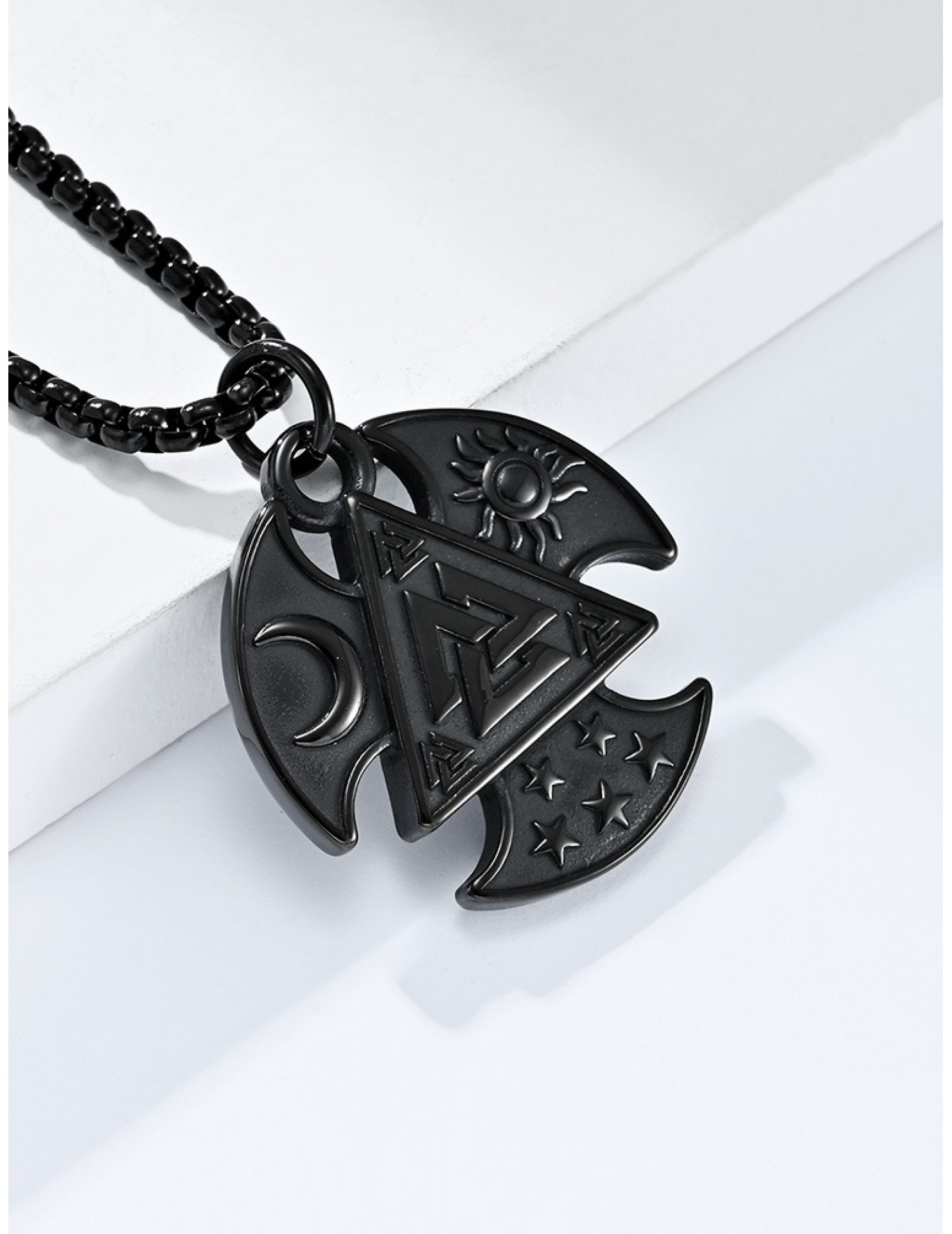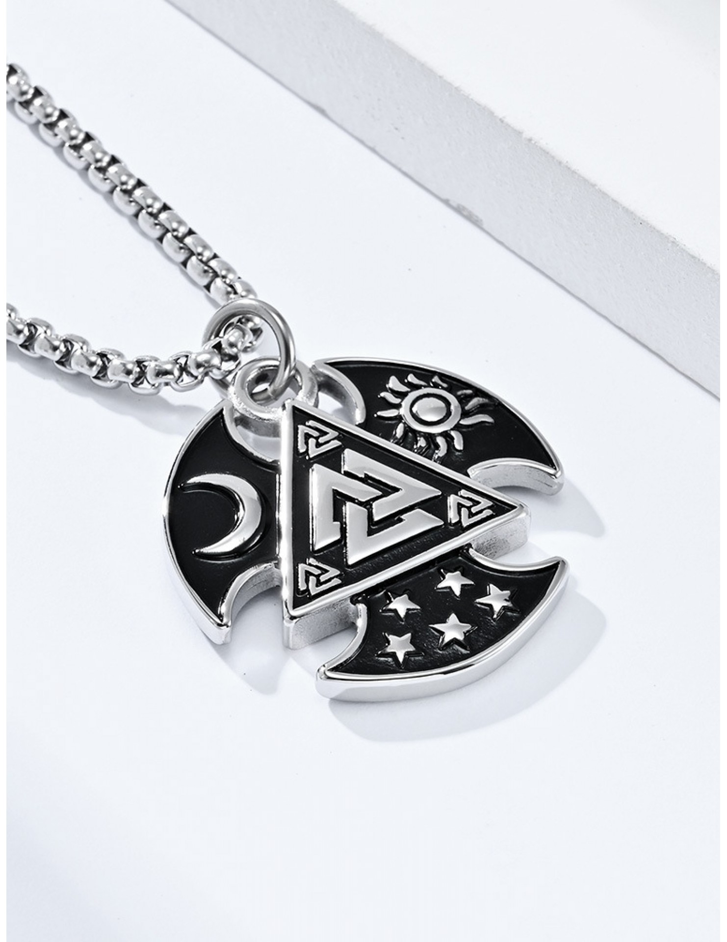 JSC3108 316L鈦鋼北歐三角結星星月亮太陽項鏈
