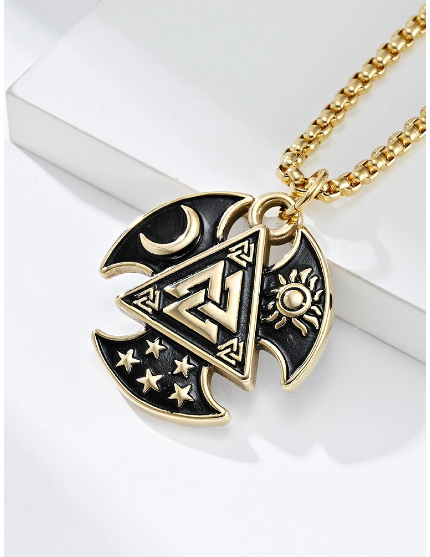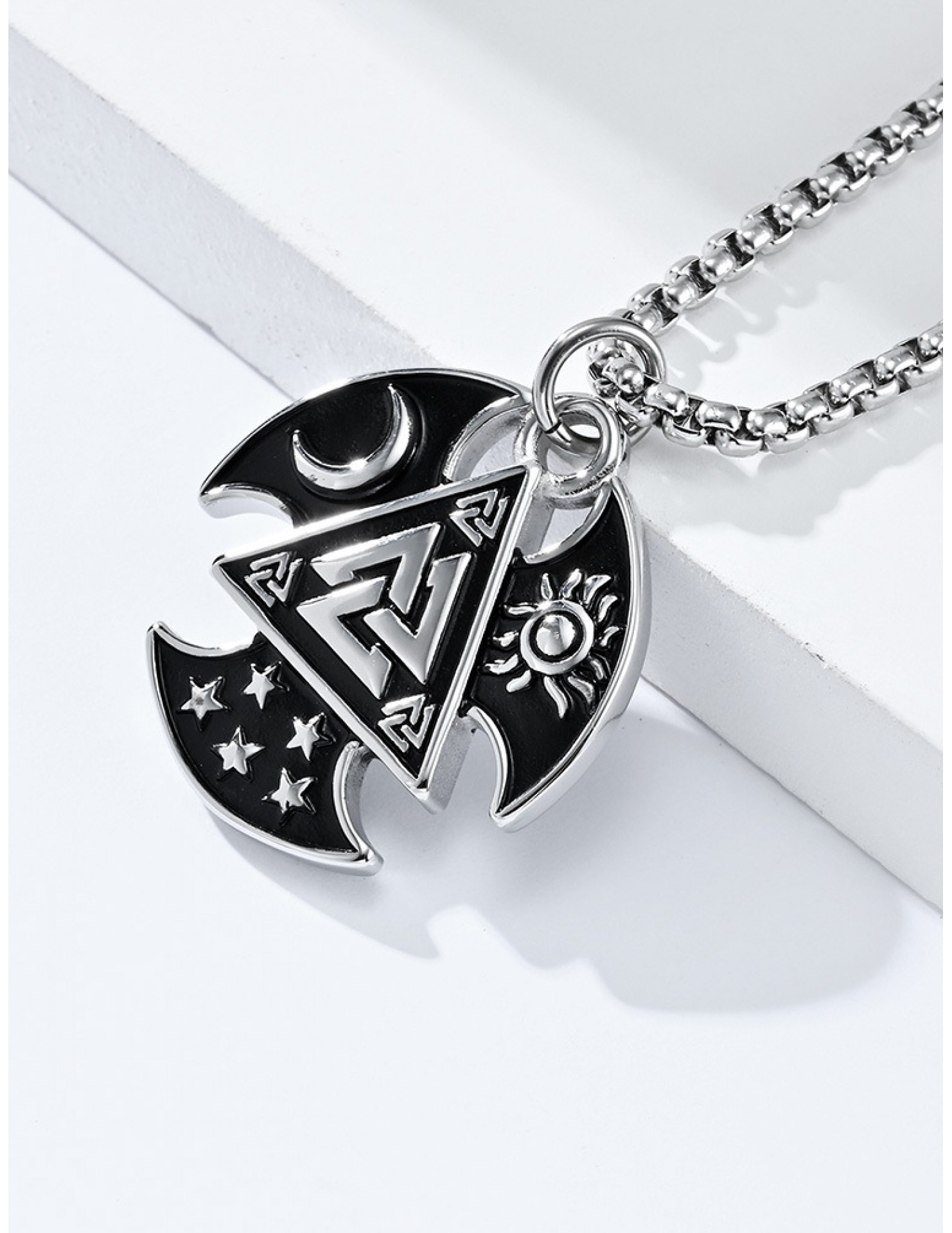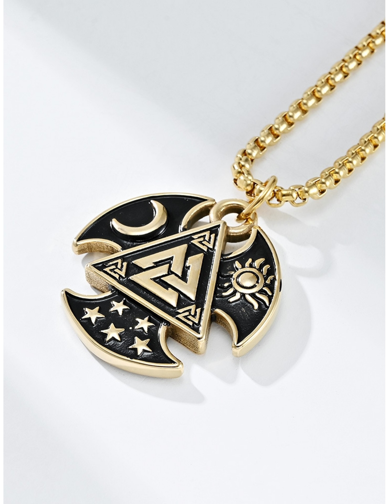 JSC3108 316L鈦鋼北歐三角結星星月亮太陽項鏈