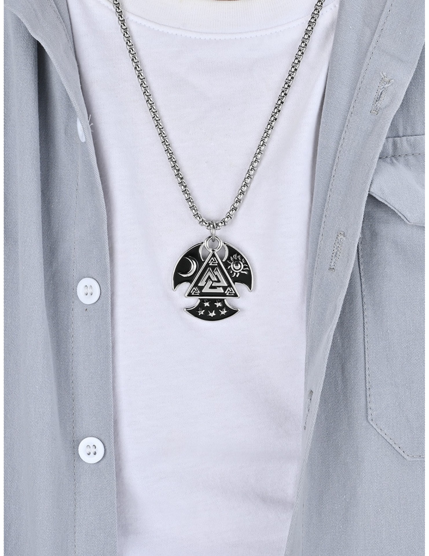 JSC3102 316L鈦鋼維京奧丁三角結項鏈