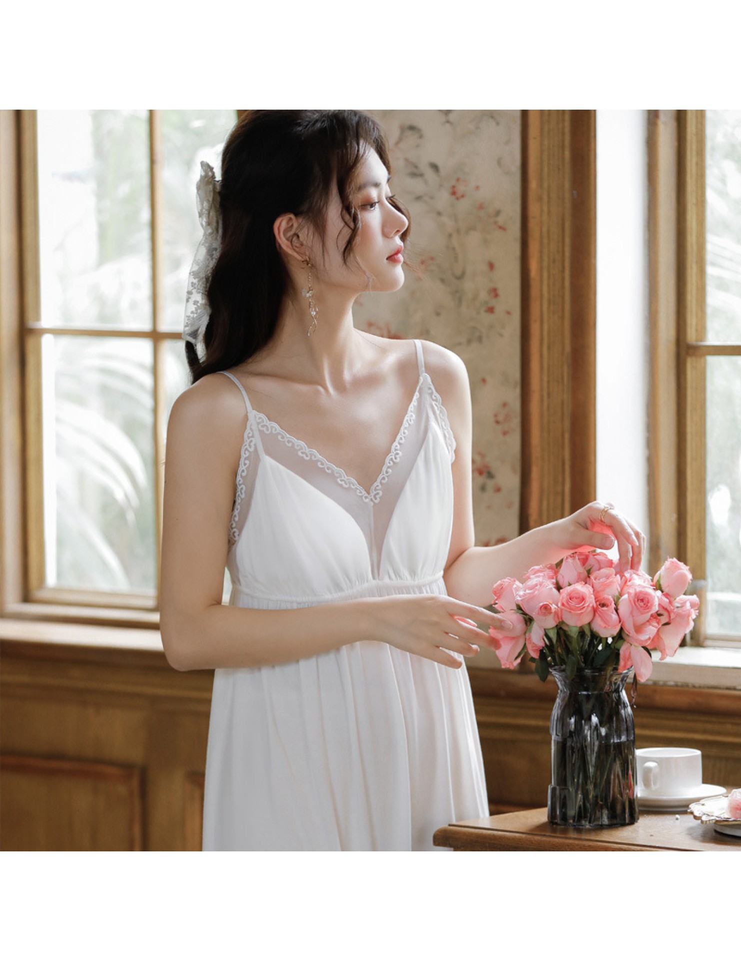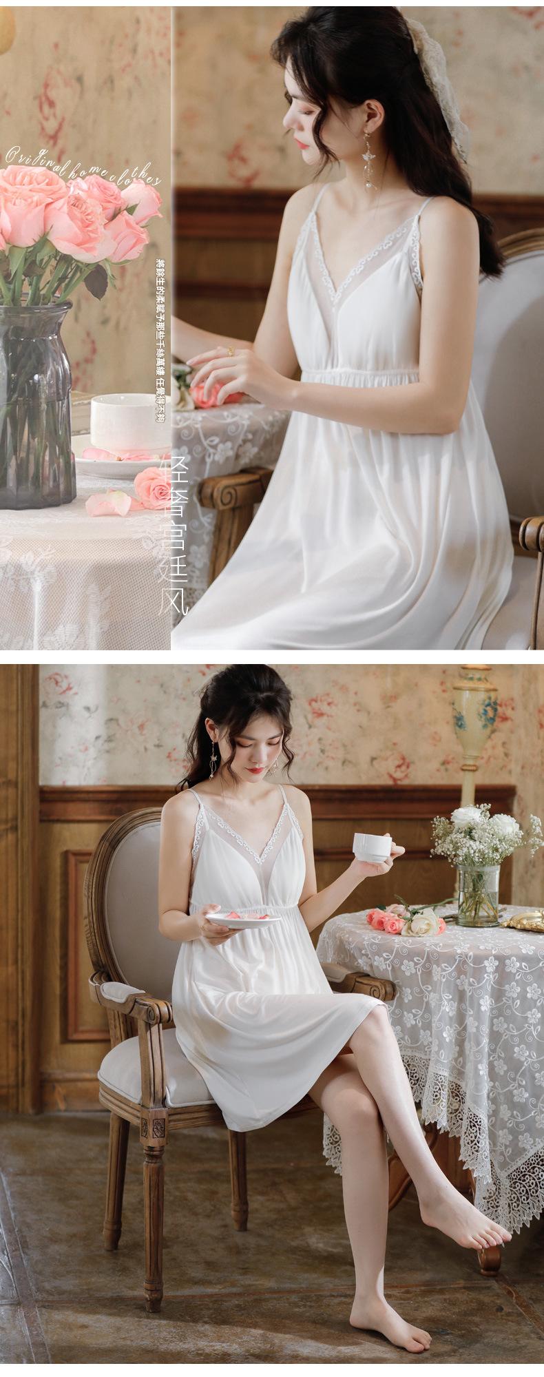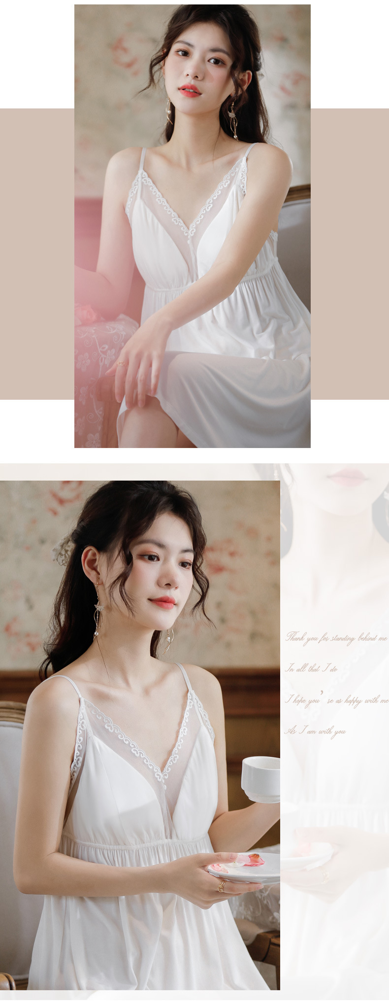 PRDN121100073 吊帶睡裙女夏棉宮廷風性感舒適蕾絲公主睡衣胸墊繡花可外穿家居服