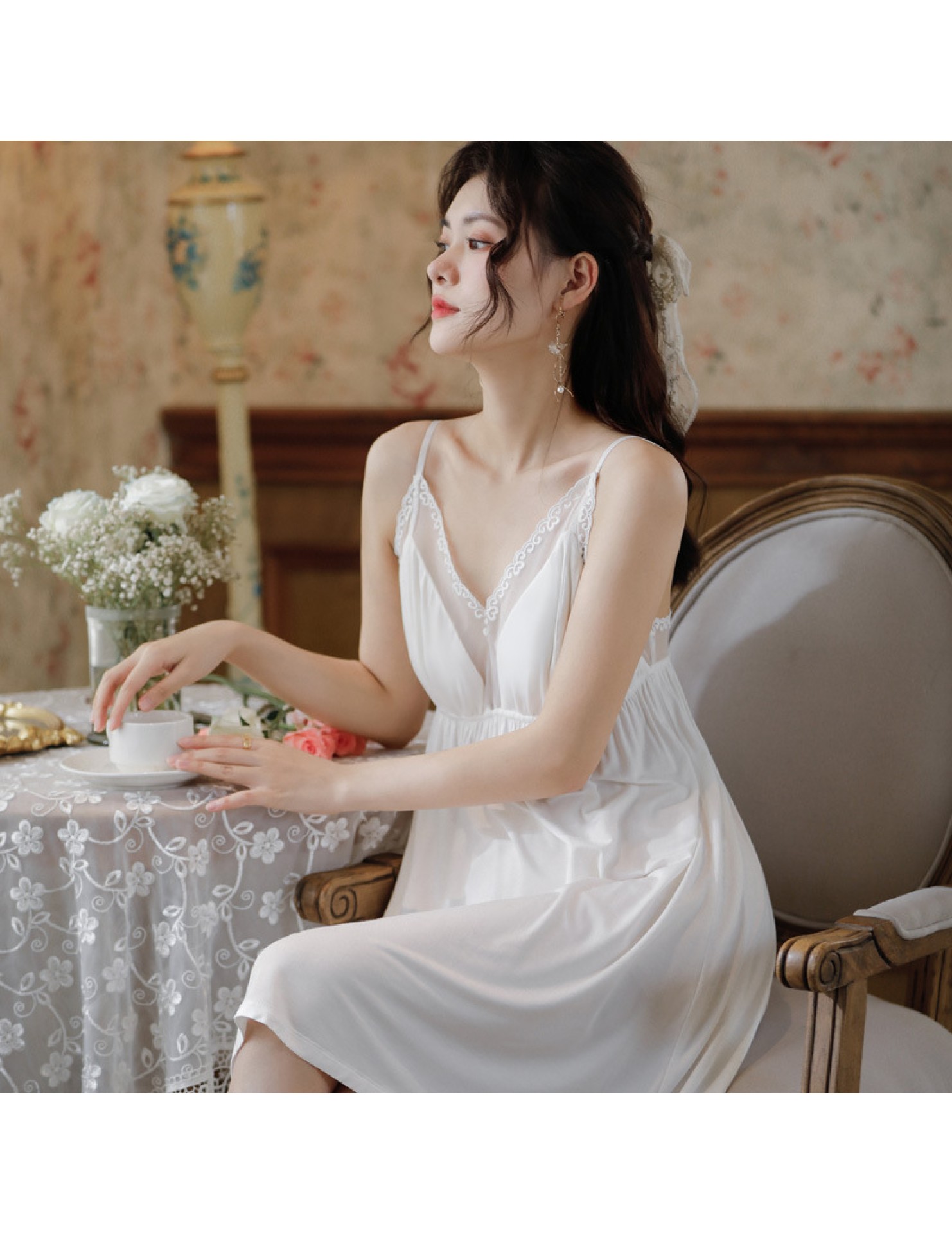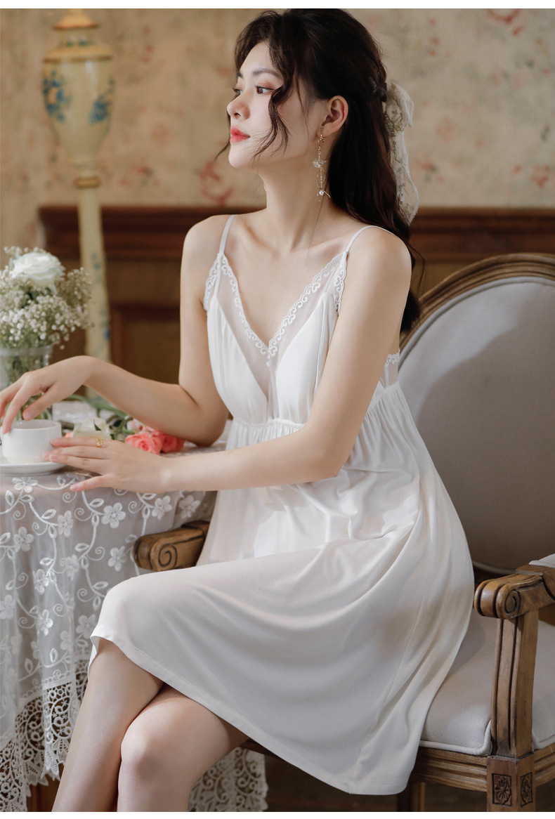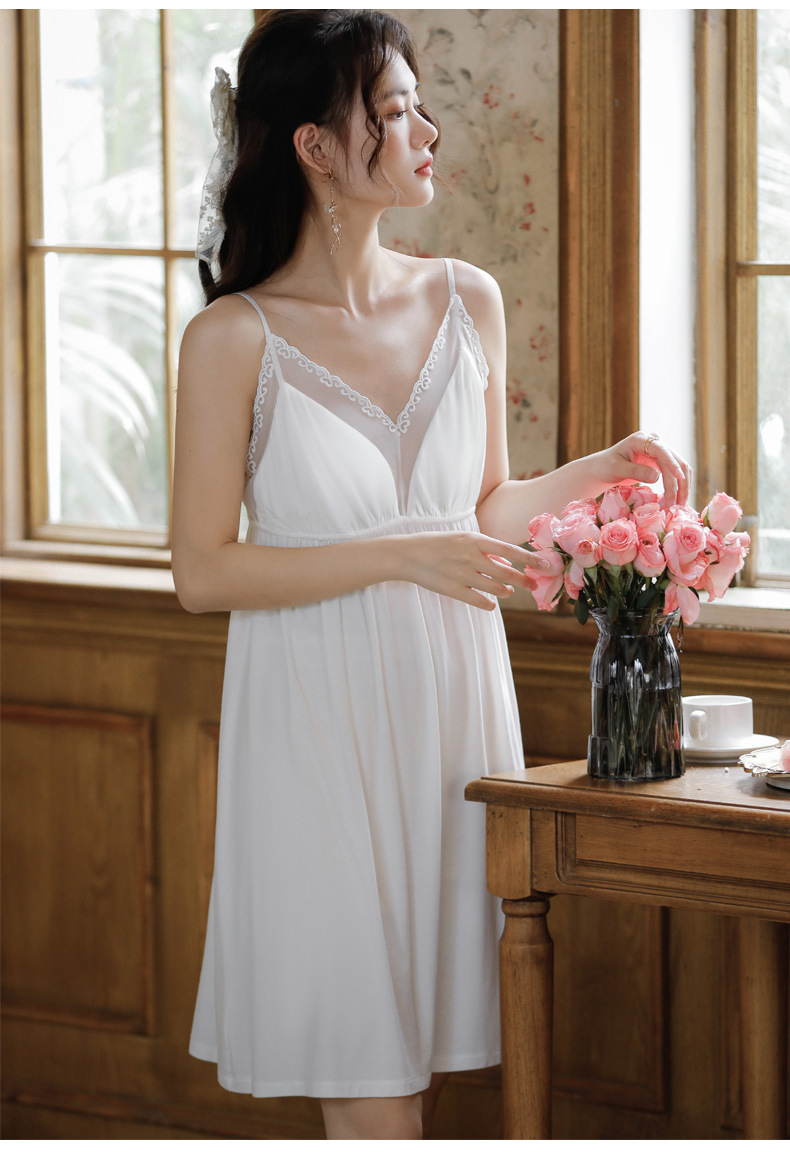 PRDN121100073 吊帶睡裙女夏棉宮廷風性感舒適蕾絲公主睡衣胸墊繡花可外穿家居服