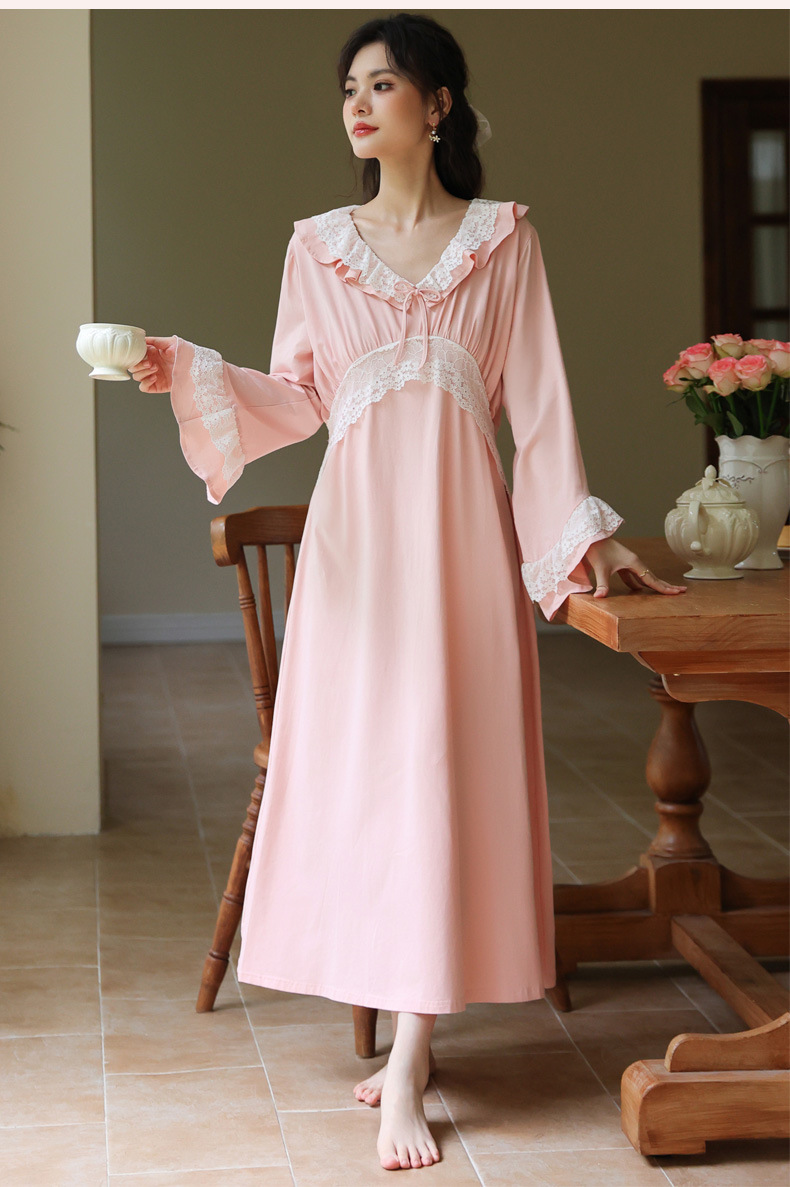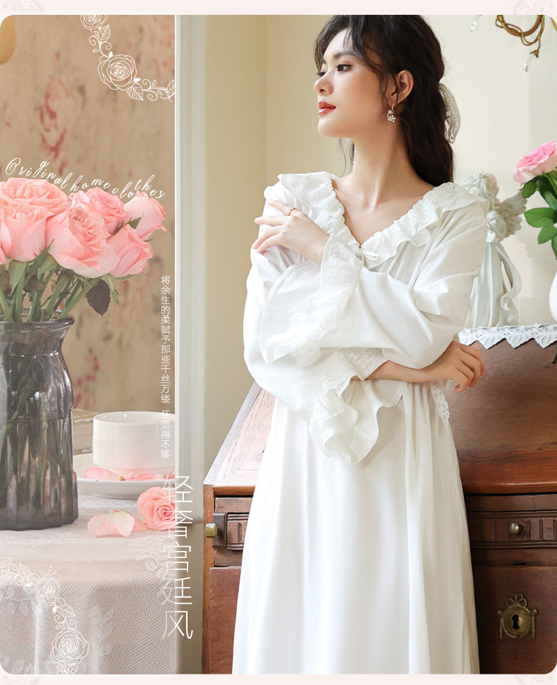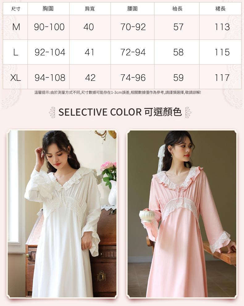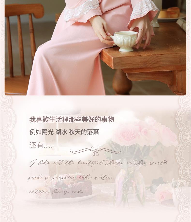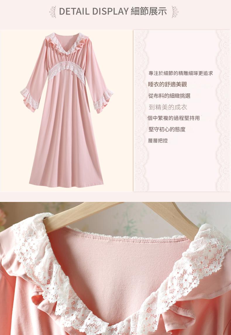 PRDN121100074 長袖睡裙棉春季舒適法式宮廷風長款睡衣柔軟可外穿甜美家居服秋冬