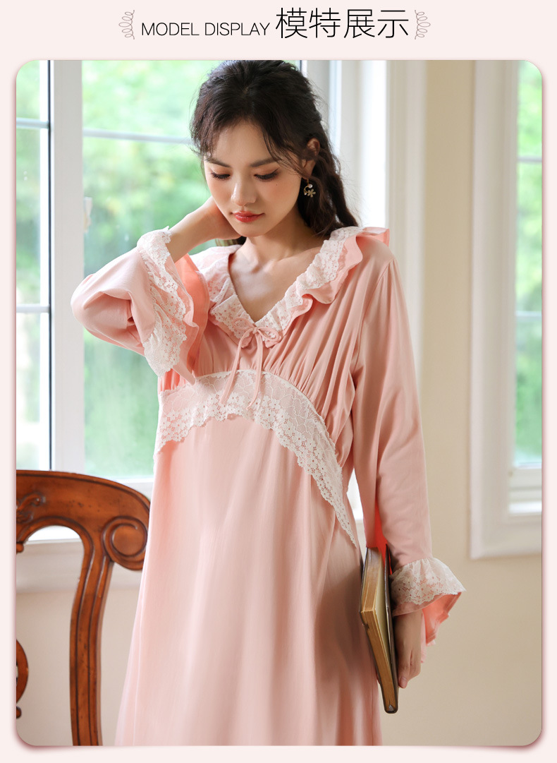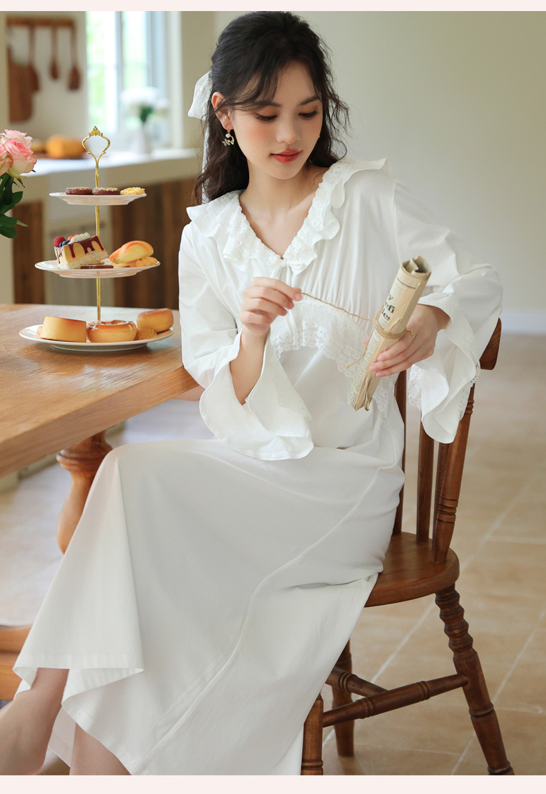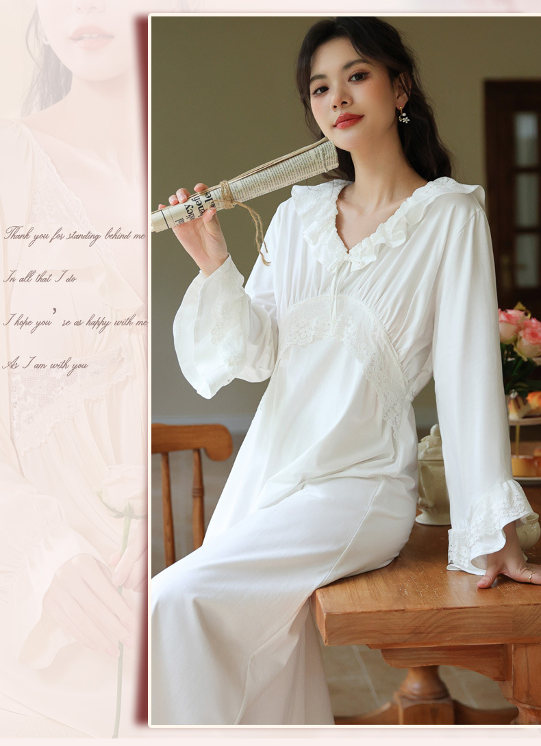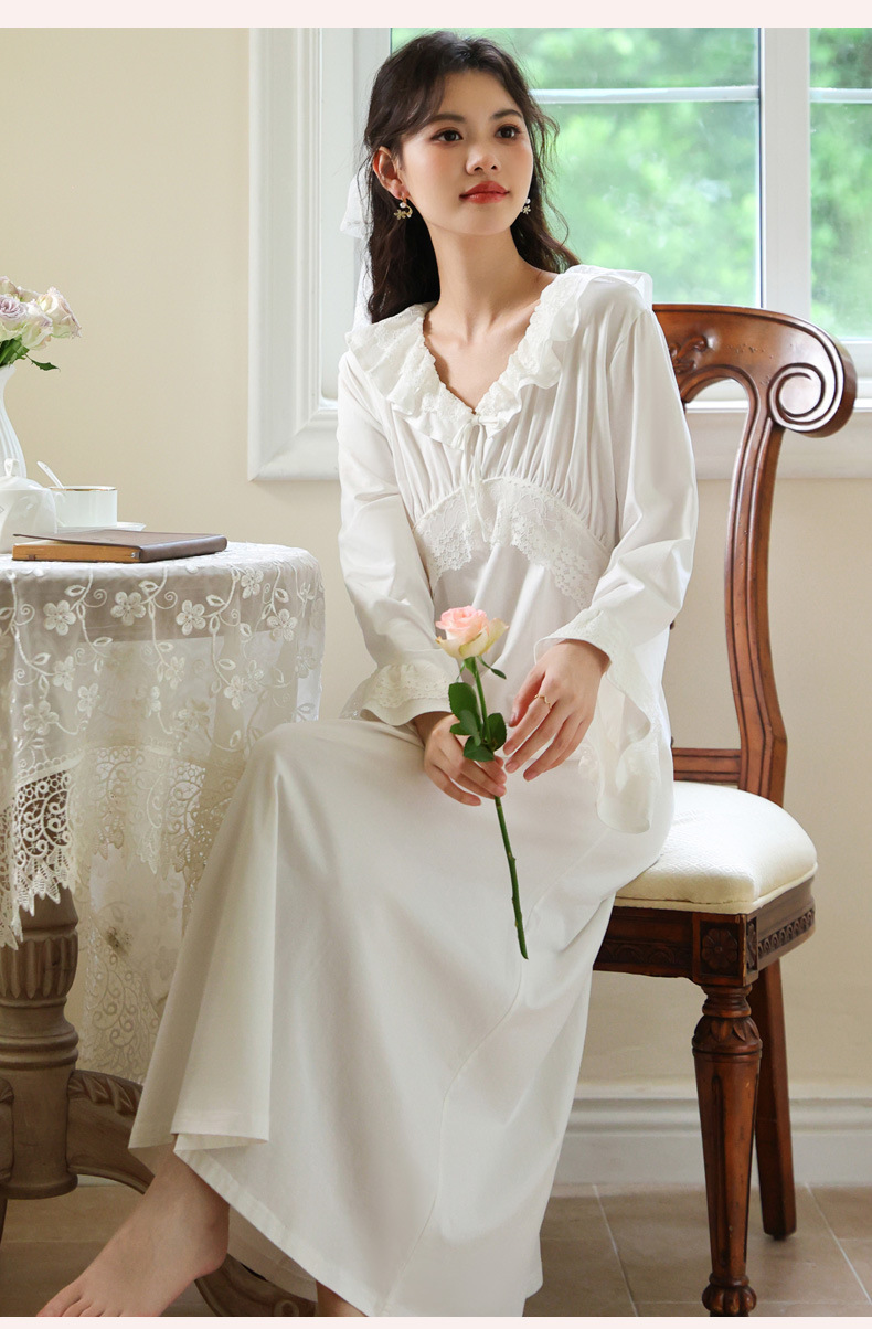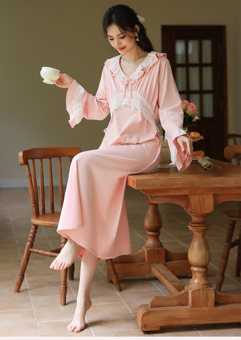 PRDN121100074 長袖睡裙棉春季舒適法式宮廷風長款睡衣柔軟可外穿甜美家居服秋冬