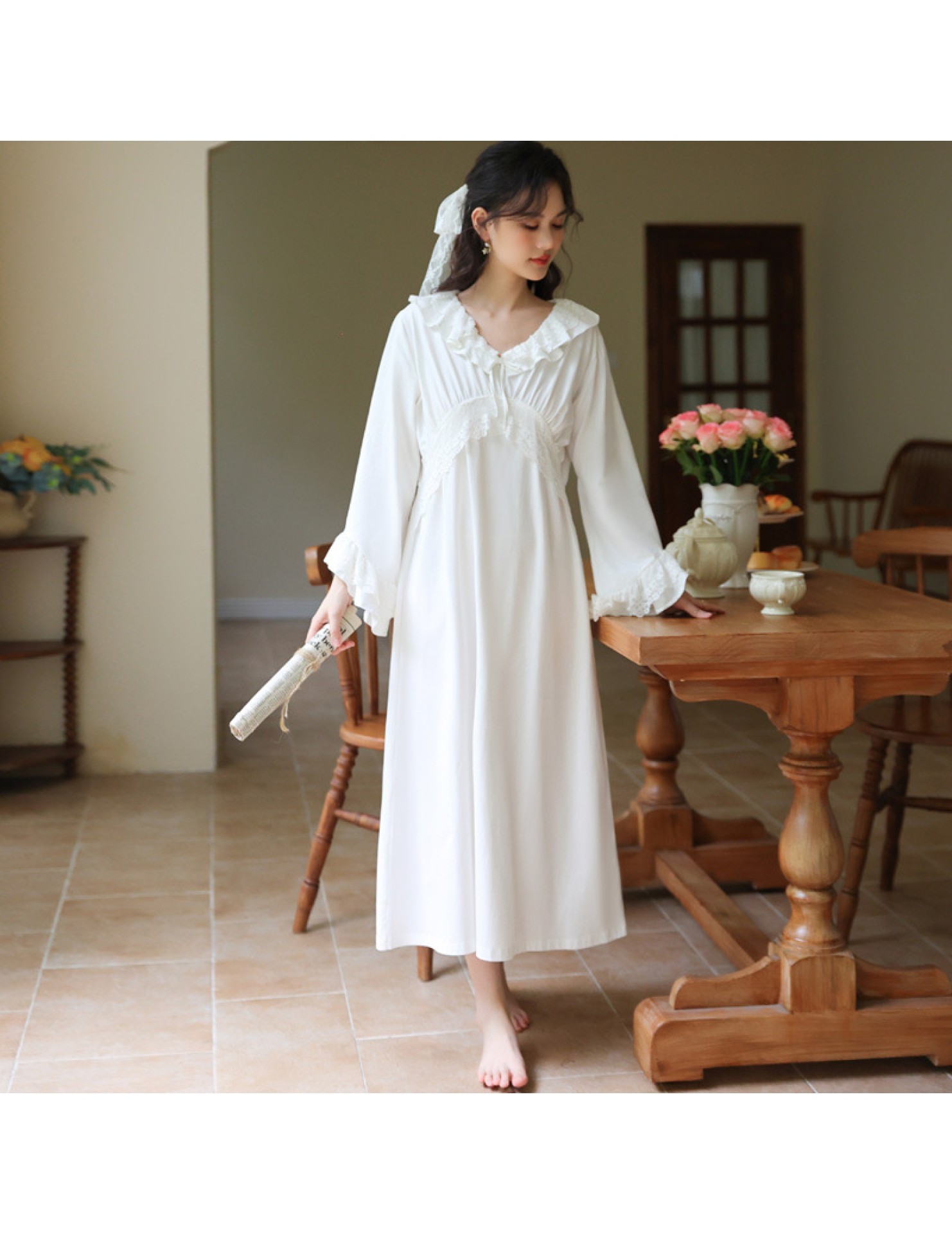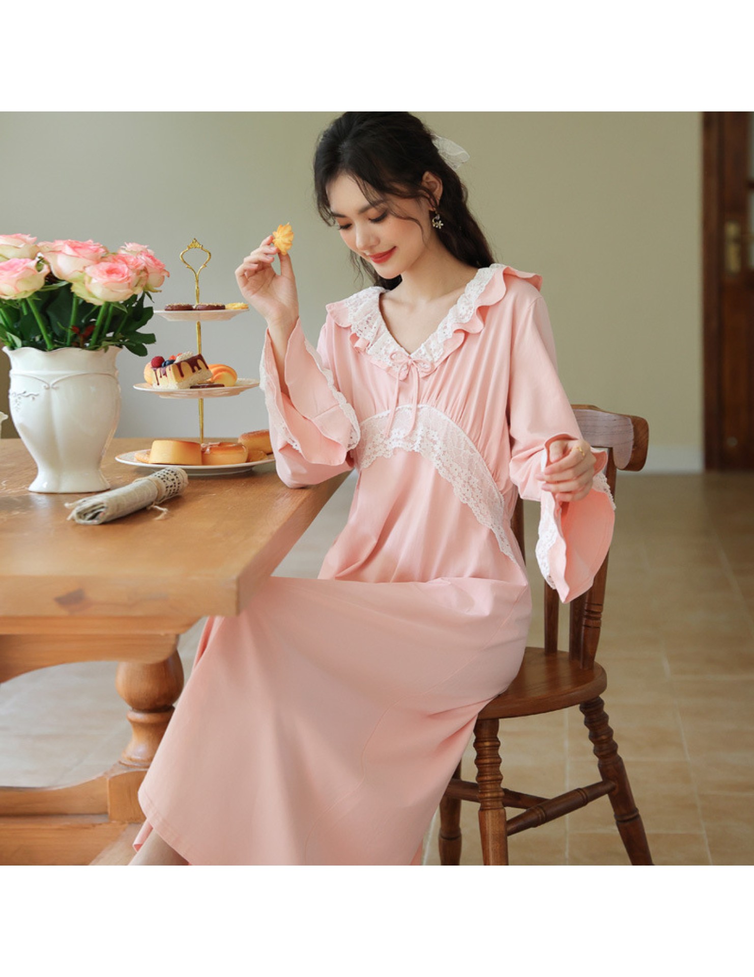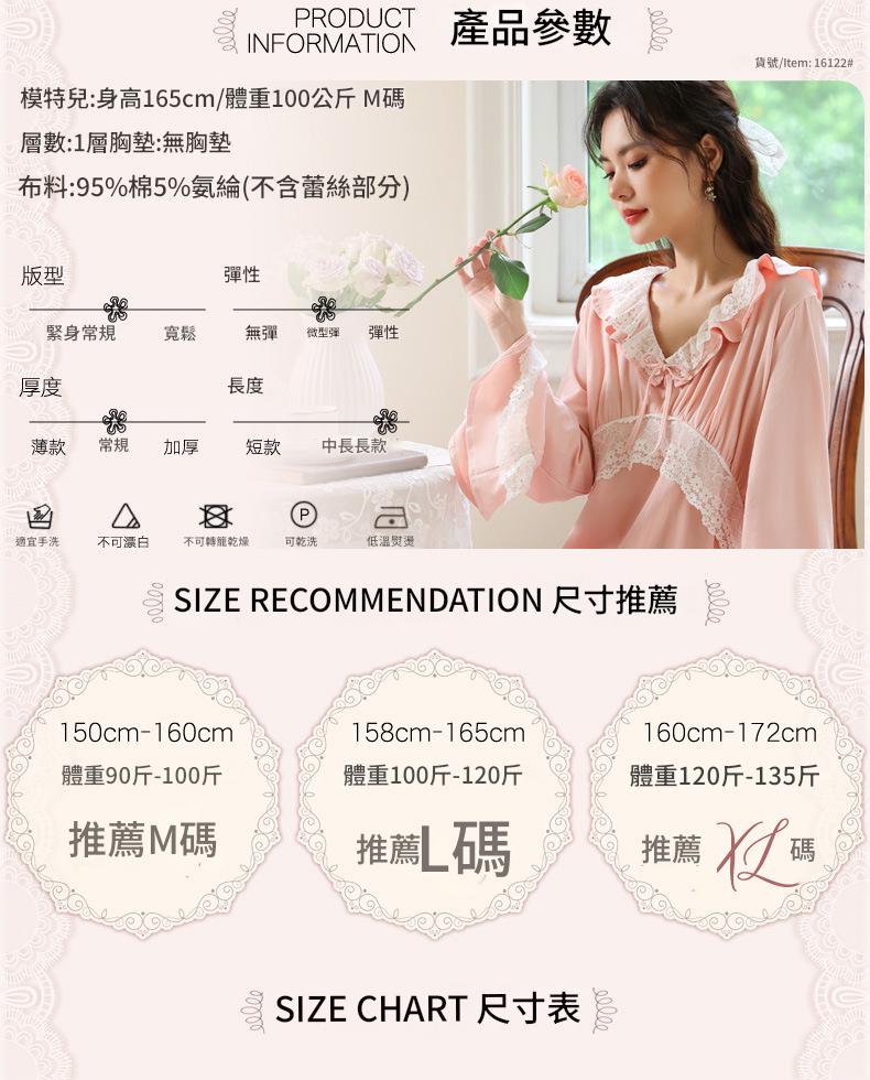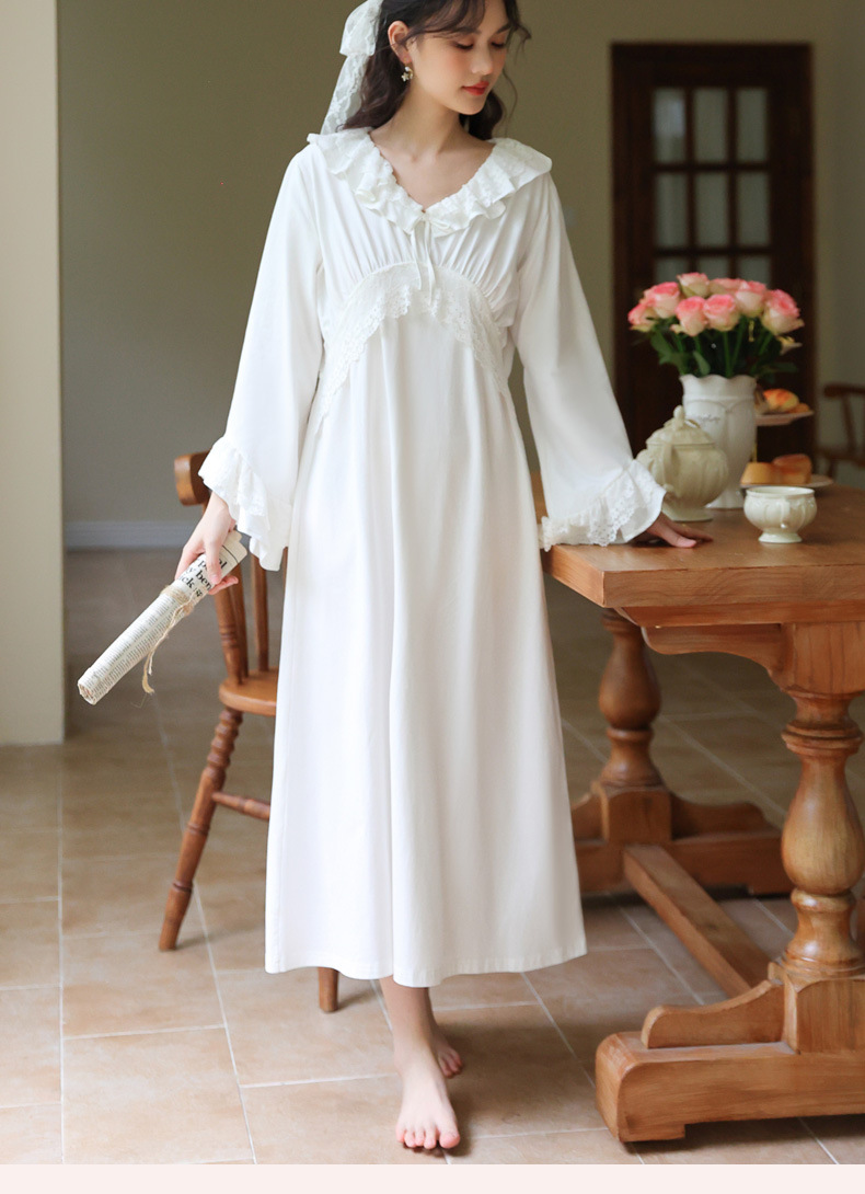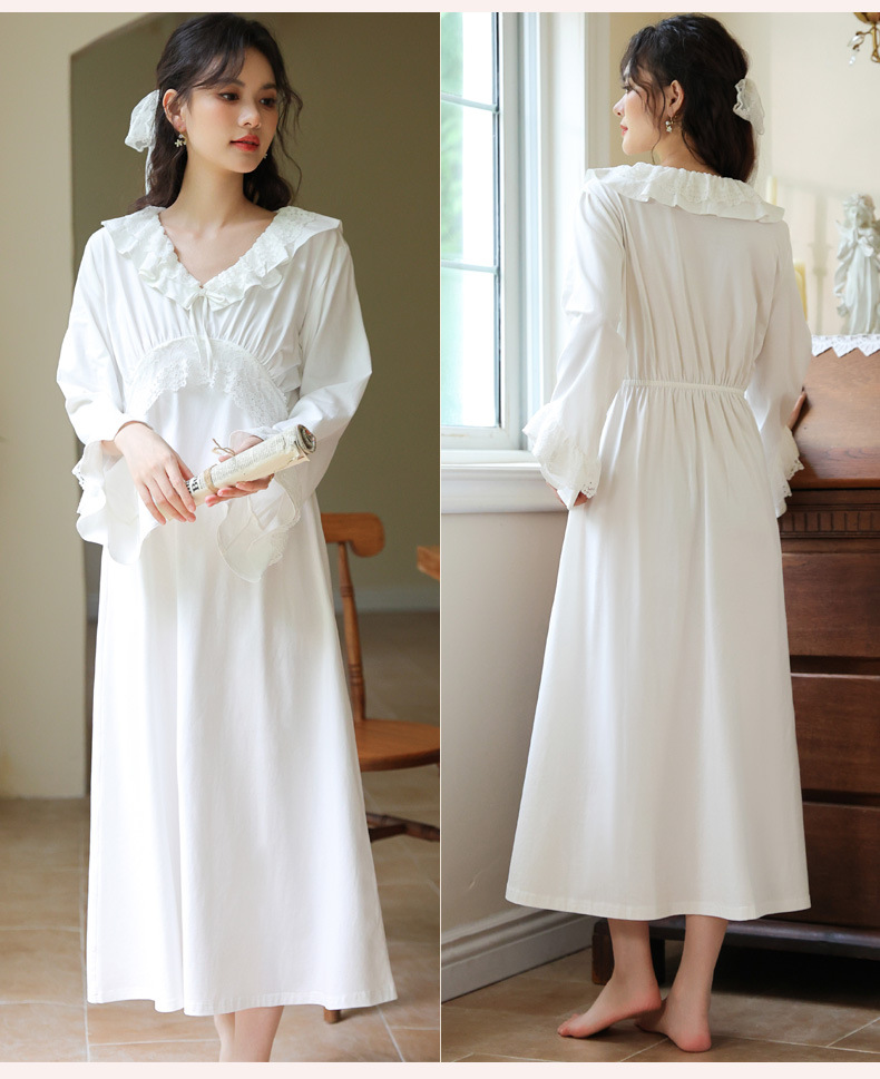 PRDN121100074 長袖睡裙棉春季舒適法式宮廷風長款睡衣柔軟可外穿甜美家居服秋冬