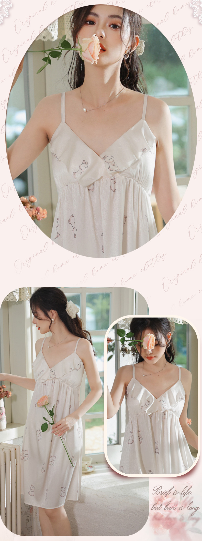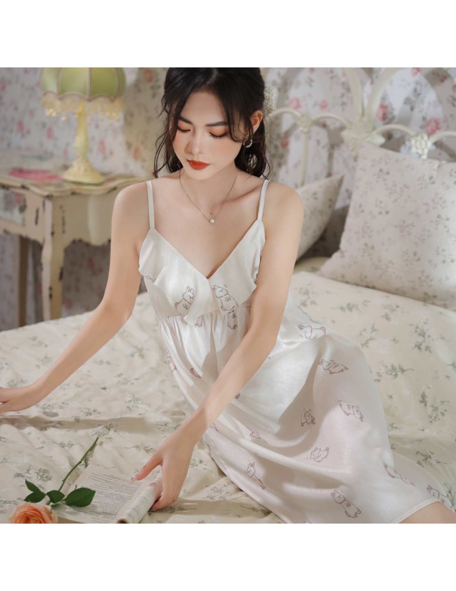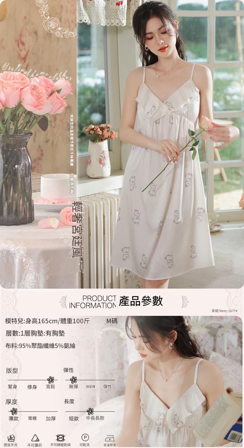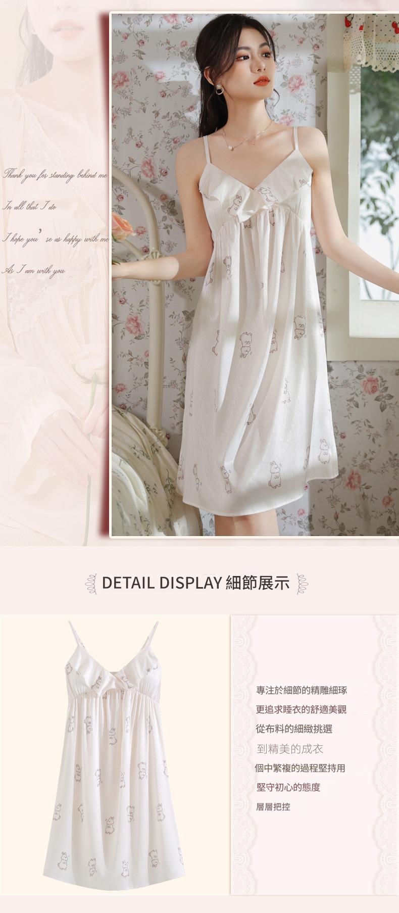 PRDN121100079 薄款吊帶睡裙女夏季印花可愛中長款冰絲睡衣裙帶胸墊可外穿家居服