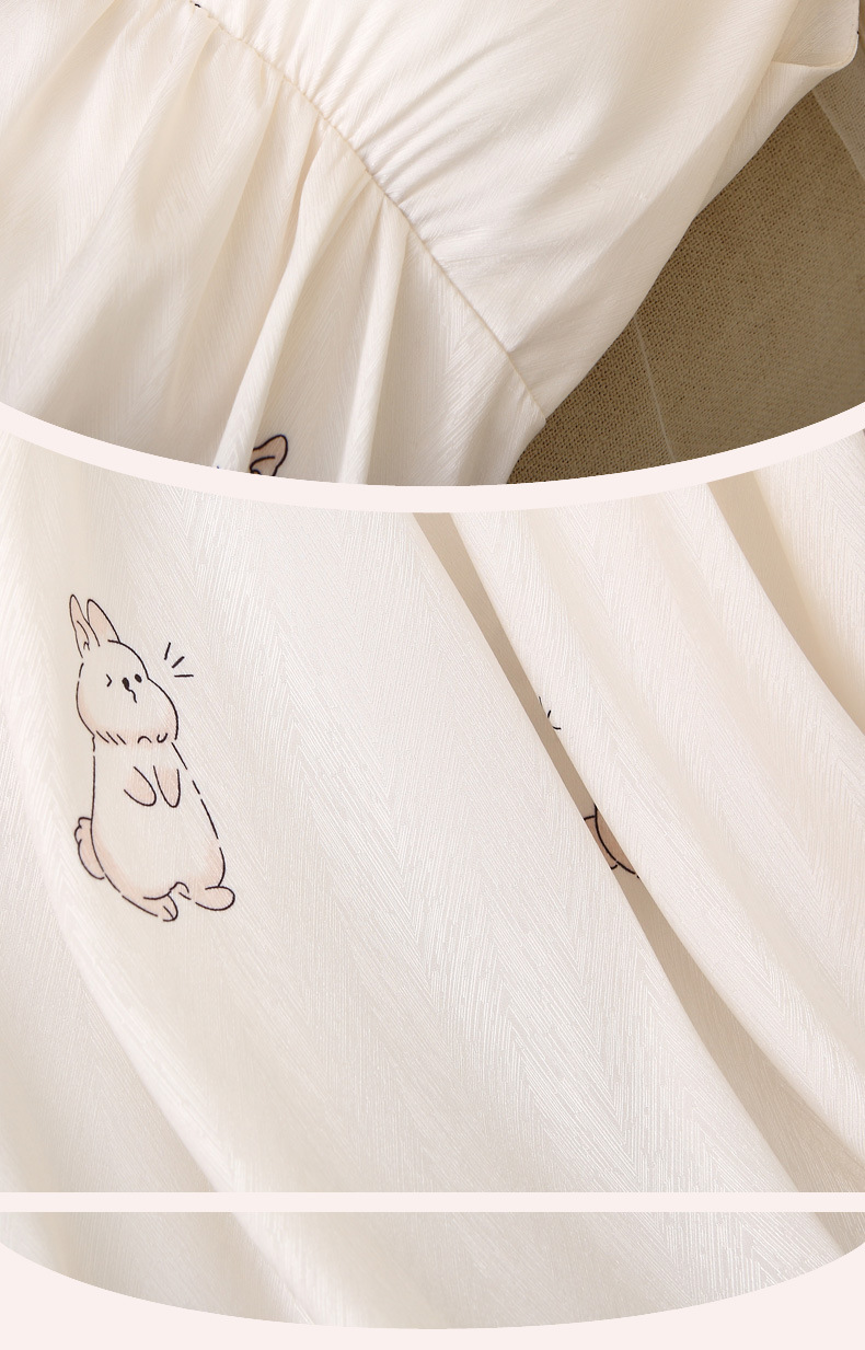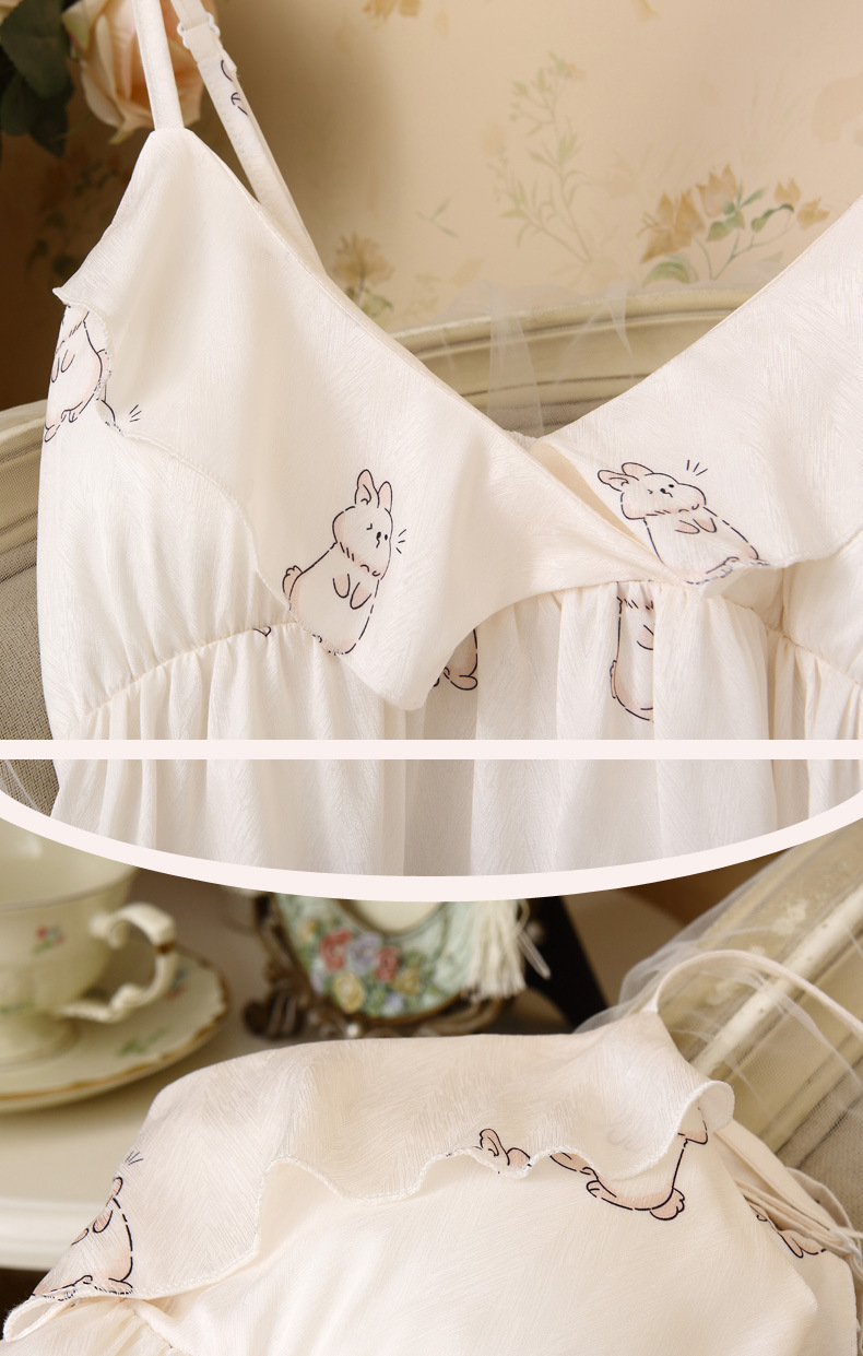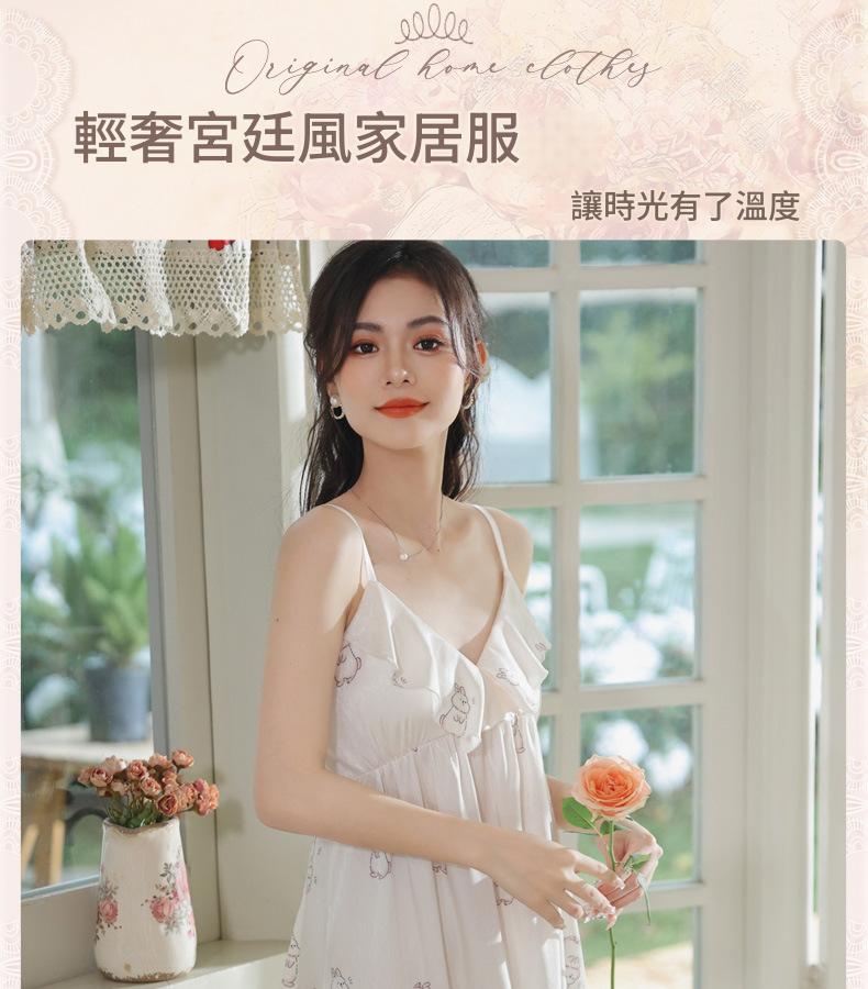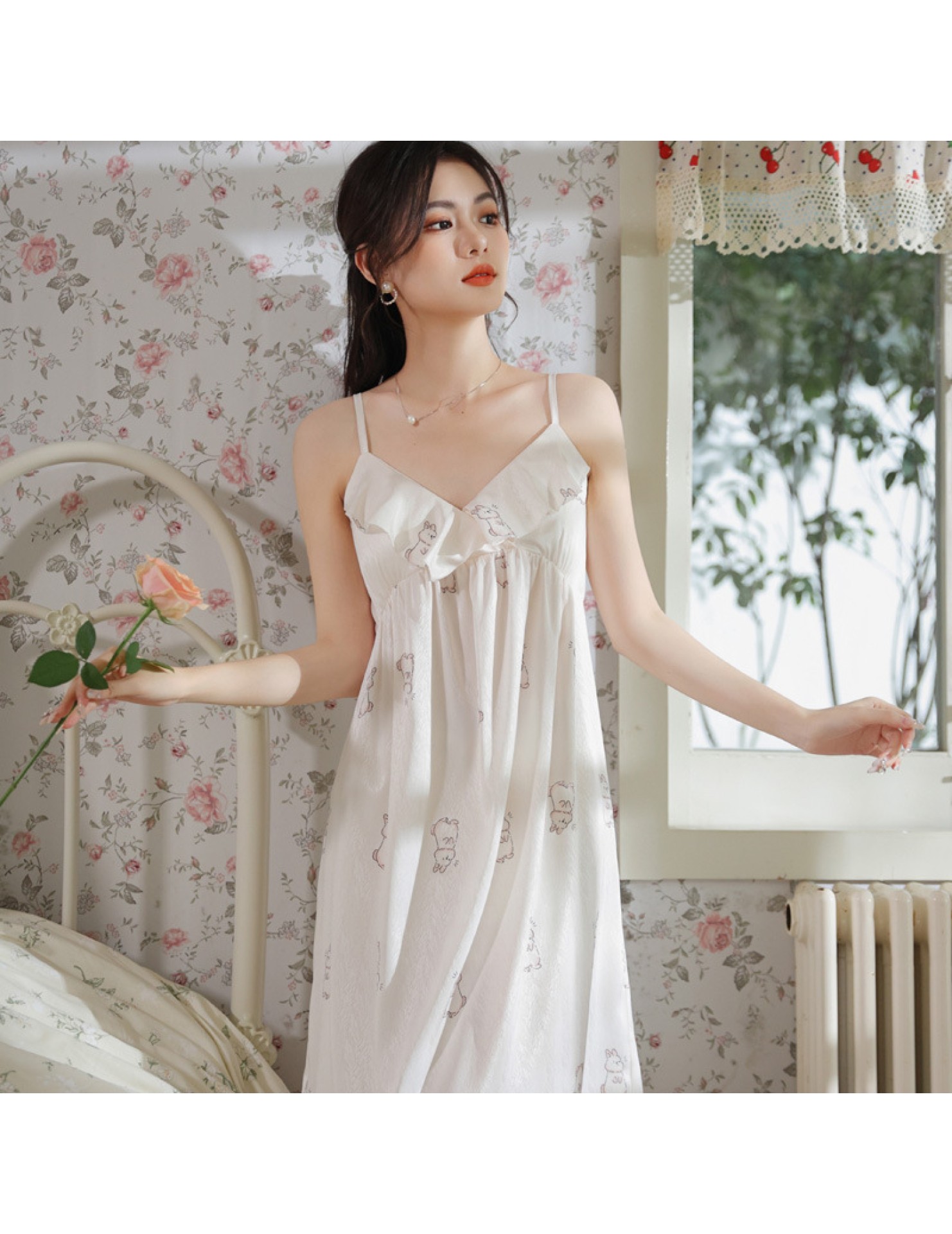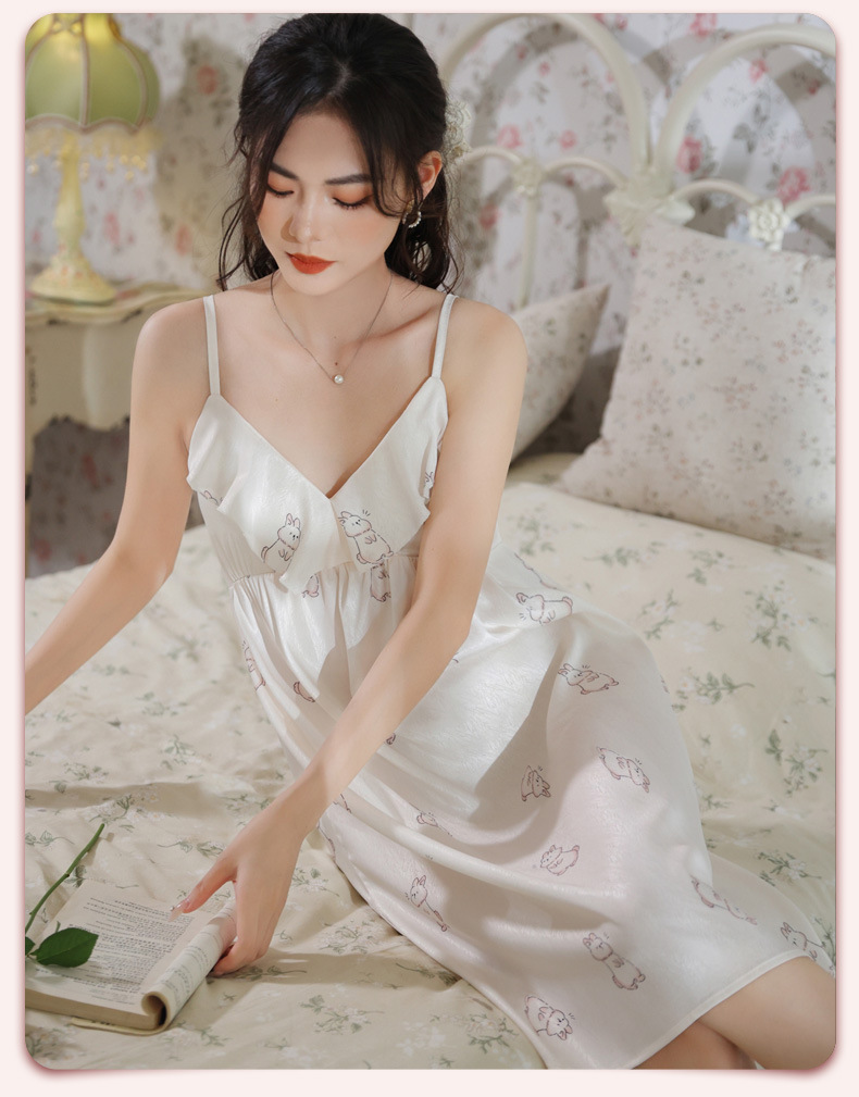 PRDN121100079 薄款吊帶睡裙女夏季印花可愛中長款冰絲睡衣裙帶胸墊可外穿家居服