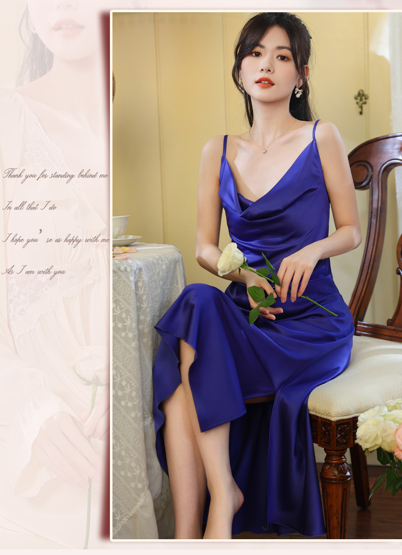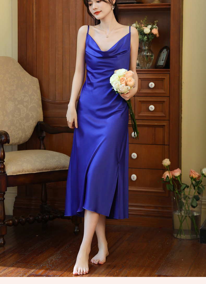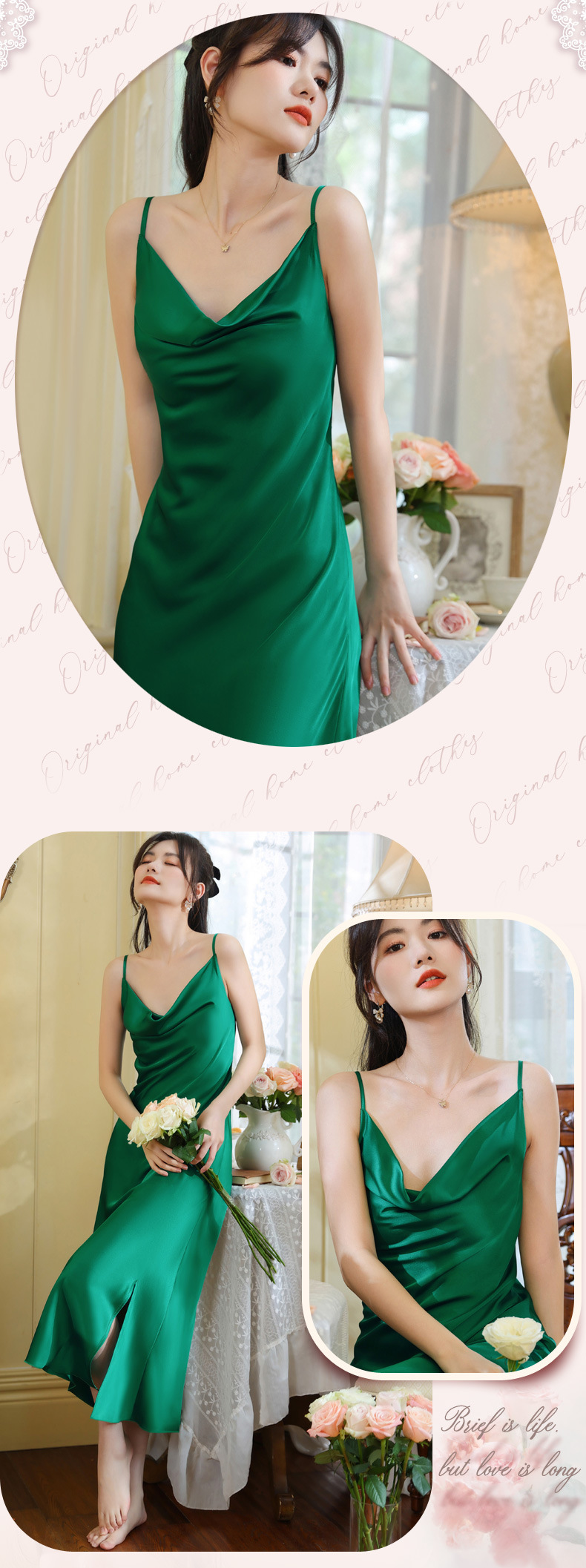 PRDN121100092 吊帶睡裙女夏仿真絲性感宮廷風家居服舒適冰絲睡衣氣質長款吊帶裙