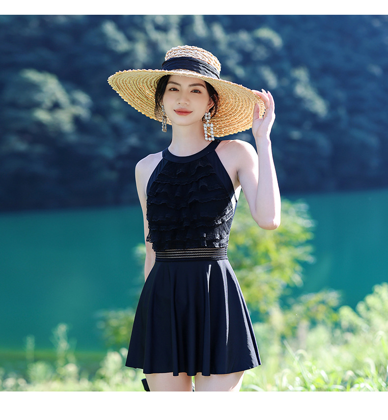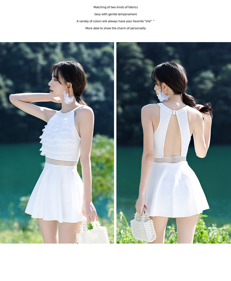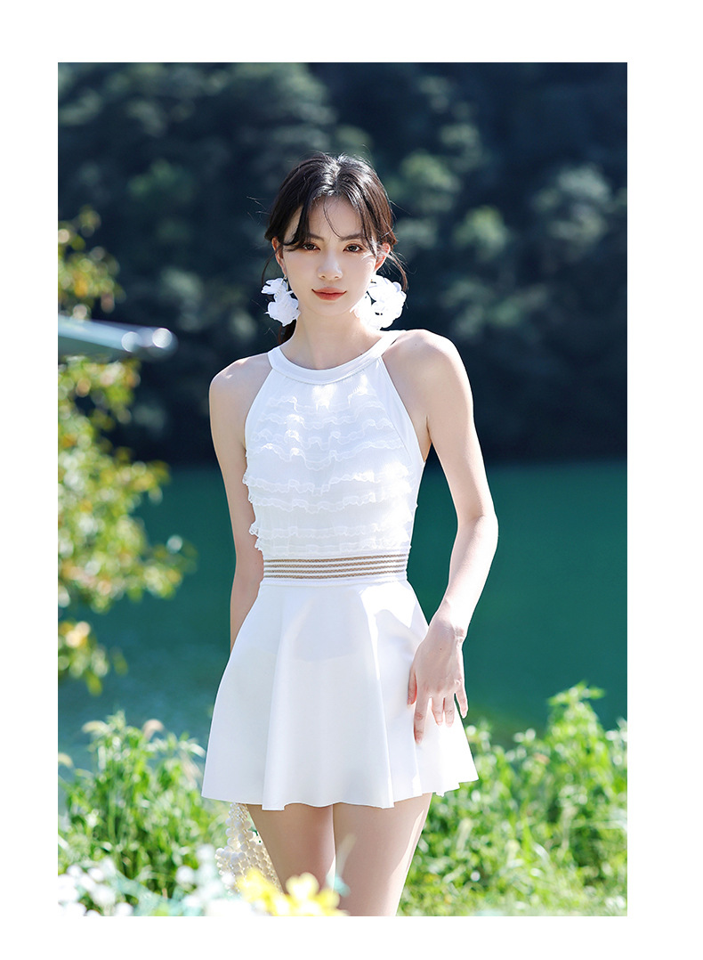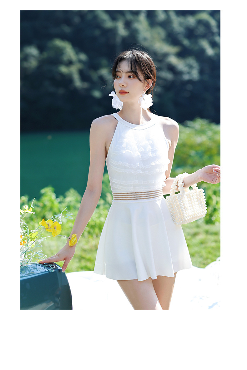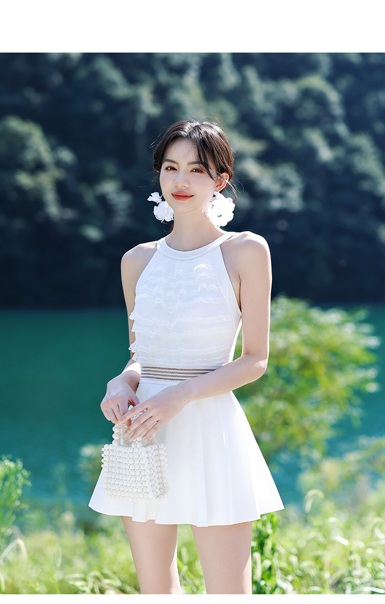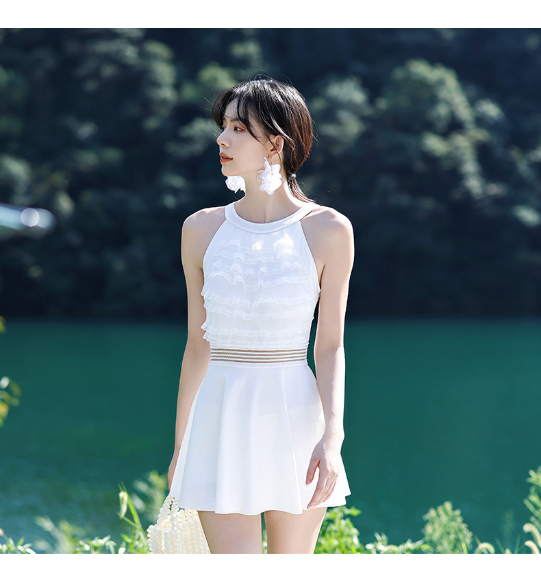 LFWN121100003 新款泳衣女泡溫泉連體裙式平角帶胸墊小胸聚攏韓國網紅風度假泳衣