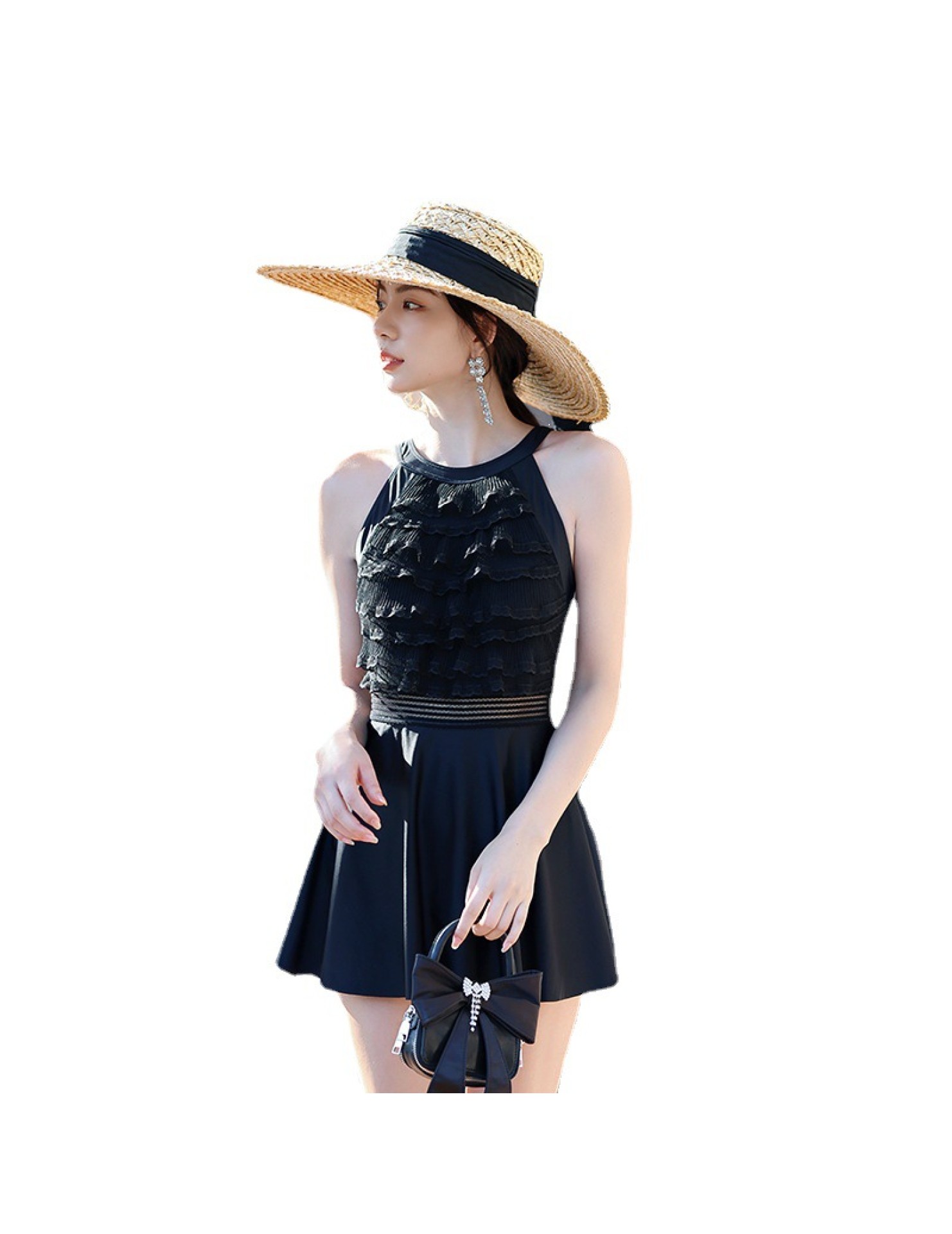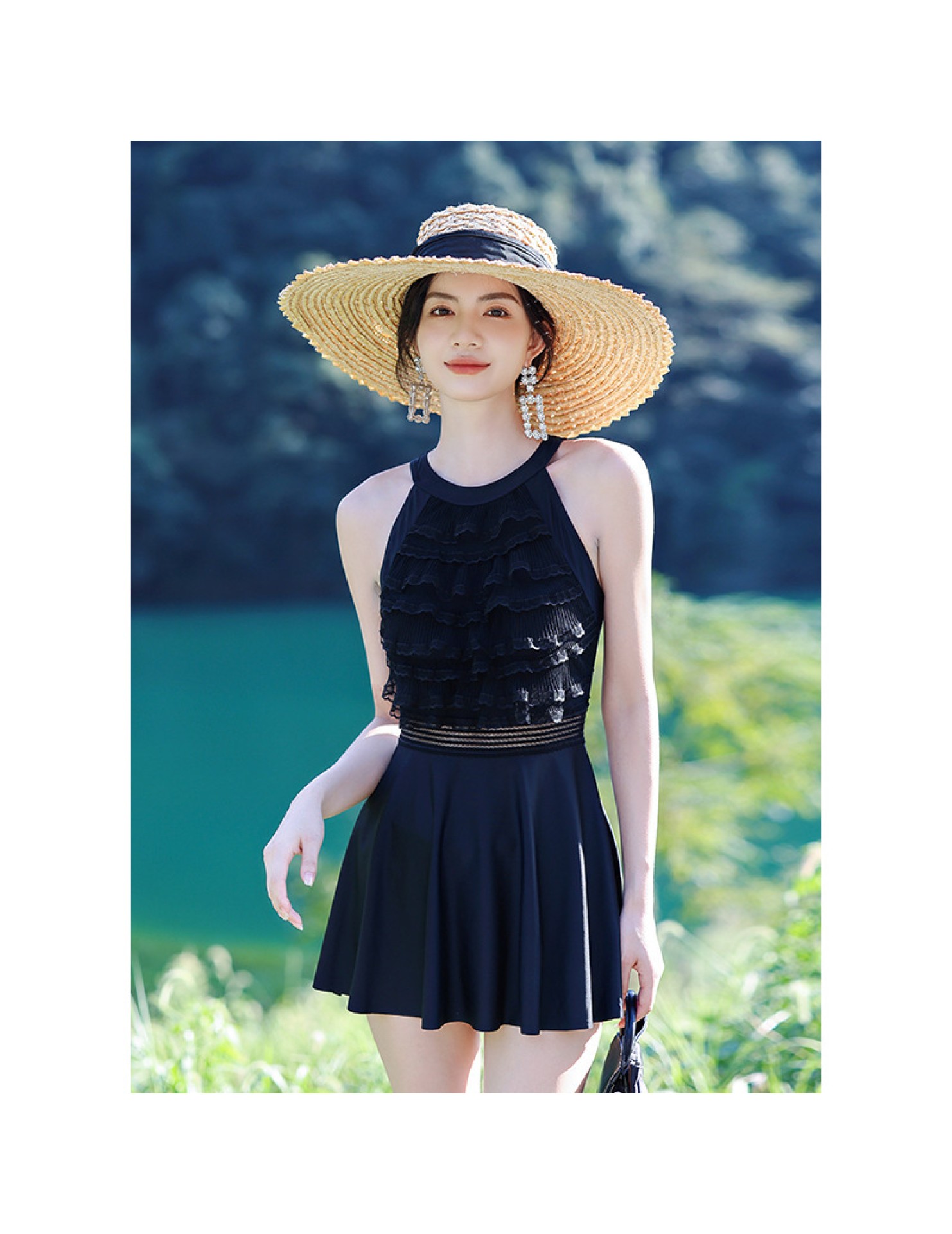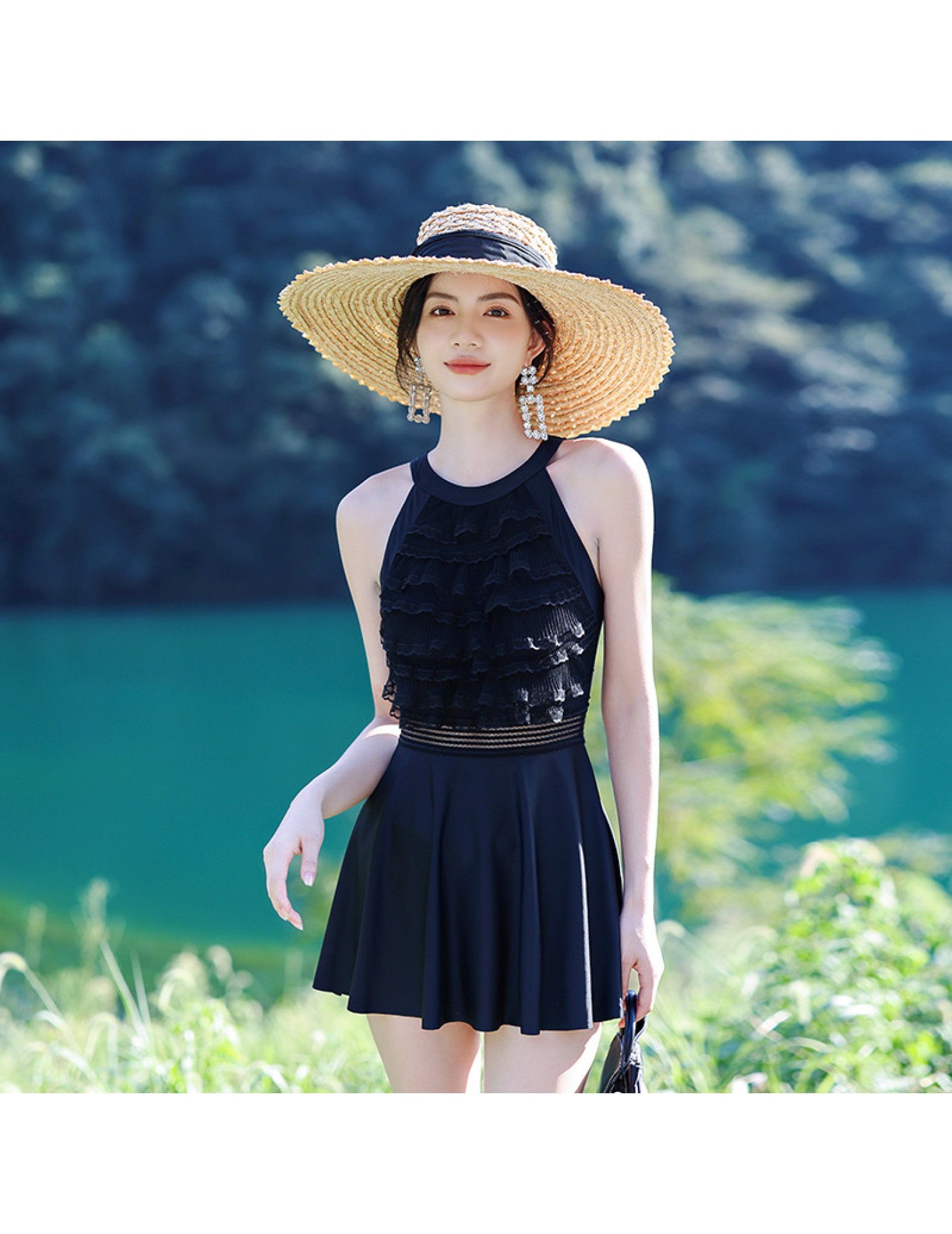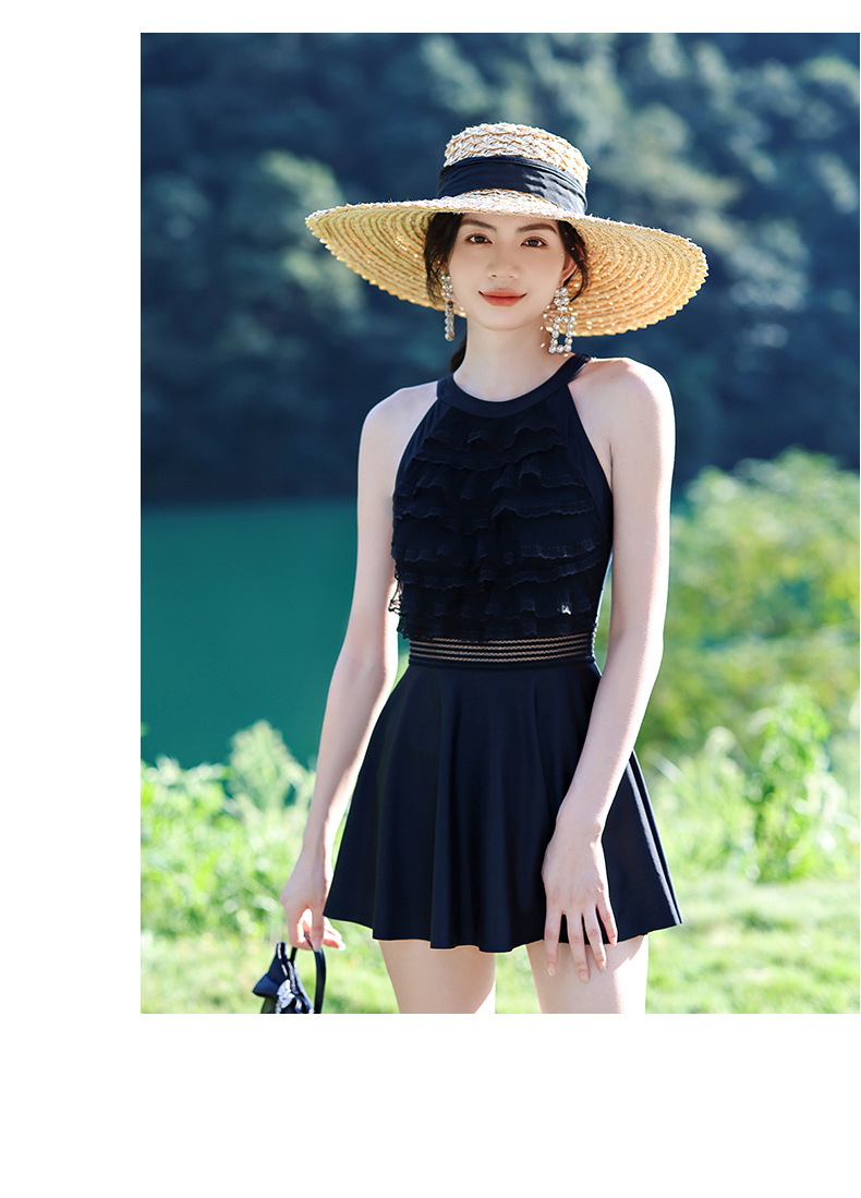 LFWN121100003 新款泳衣女泡溫泉連體裙式平角帶胸墊小胸聚攏韓國網紅風度假泳衣
