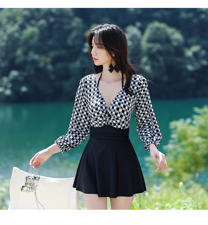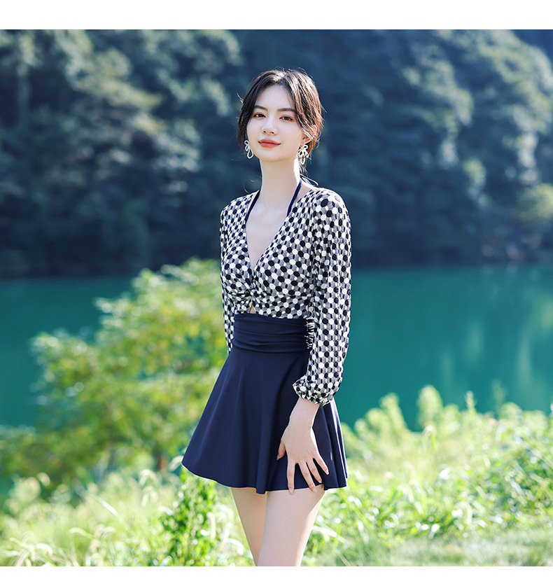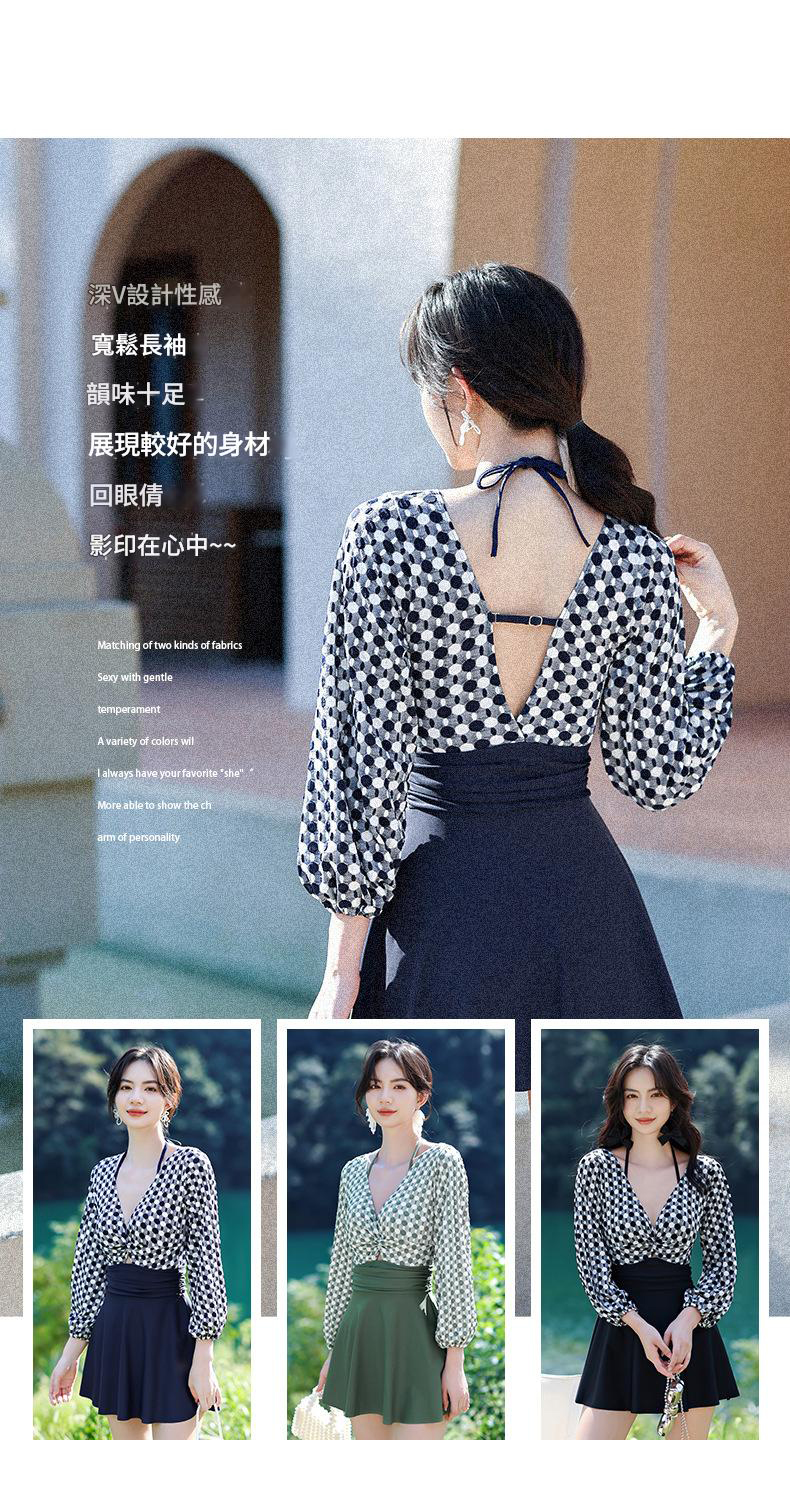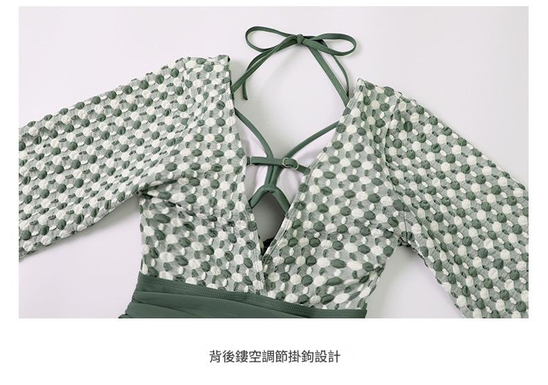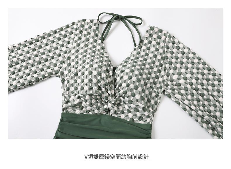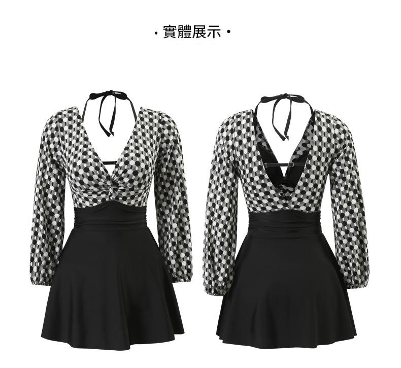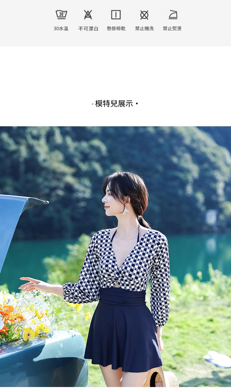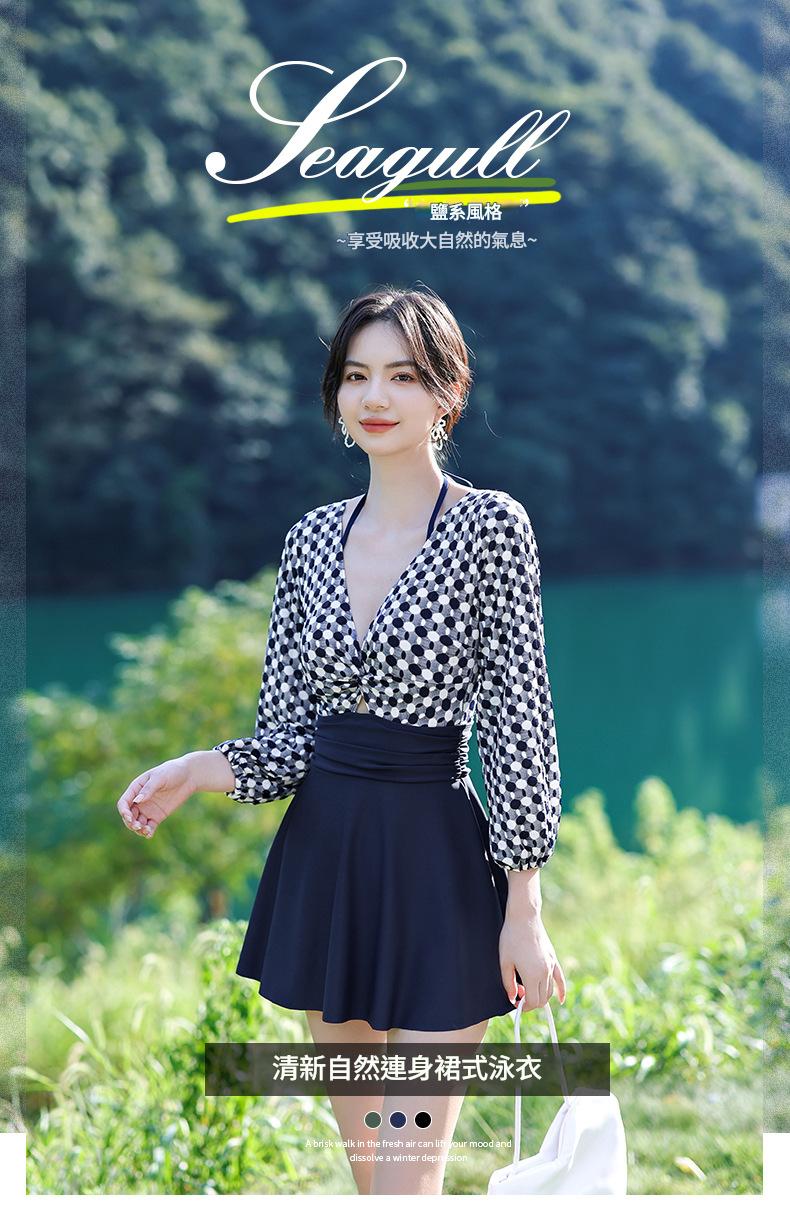 LFWN121100004 2025新款大碼長袖連體泳衣女裙式遮肚顯瘦保守游泳衣泡溫泉泳裝女