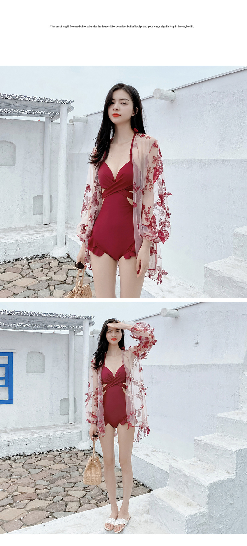LFWN121100012 泳裝2025新款連體泳衣女韓版性感連體比基尼兩件套小胸聚攏游泳衣