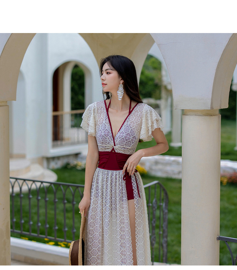 LFWN121100013 時尚拼色泳衣女新款連體比基尼兩件套小胸聚攏溫泉游泳衣女
