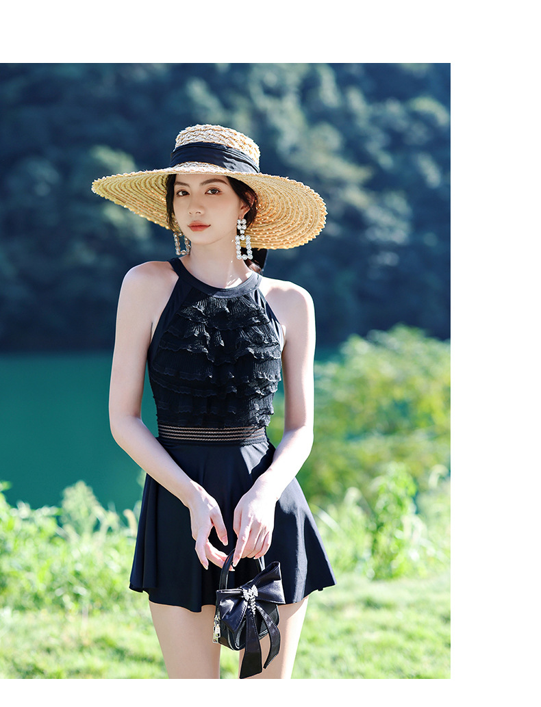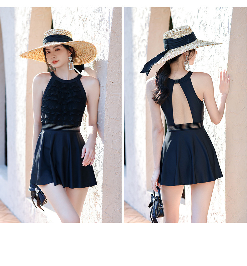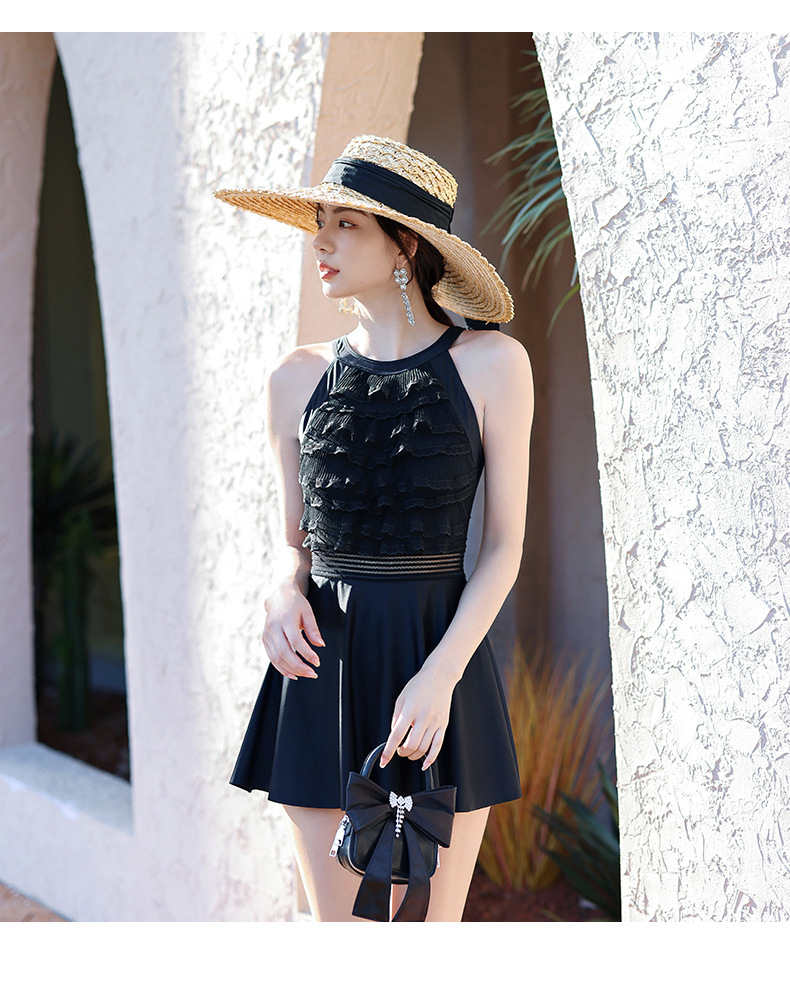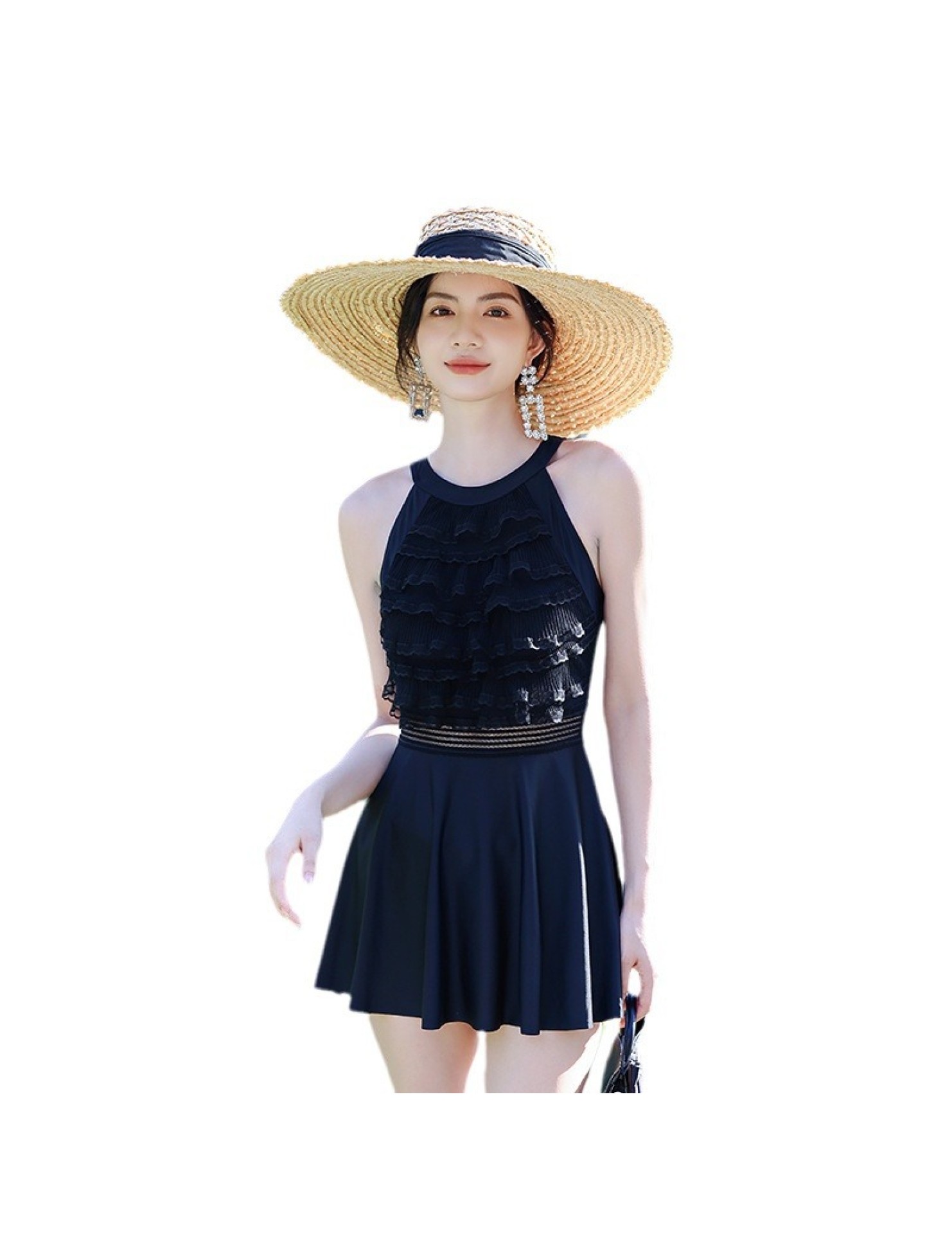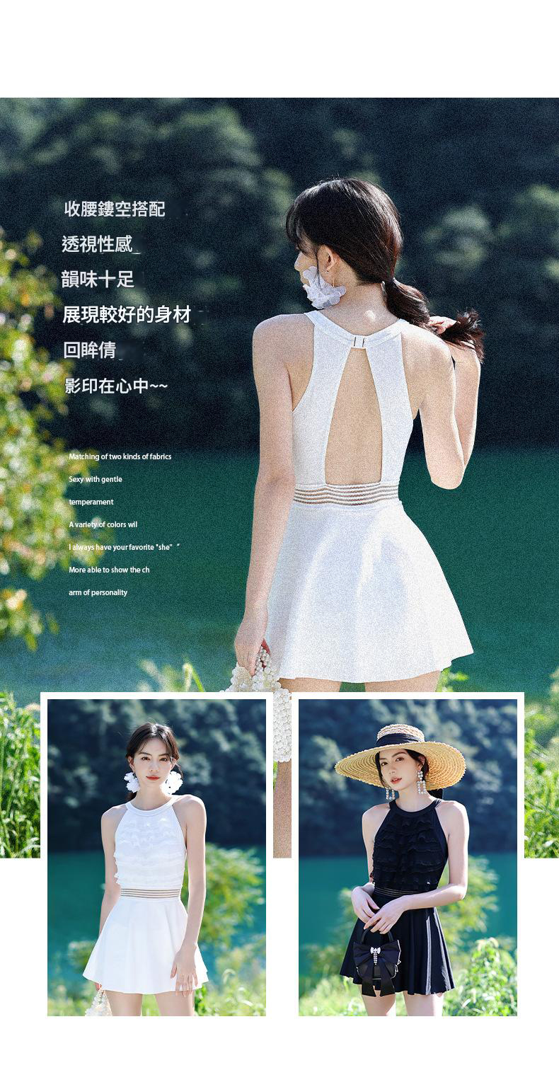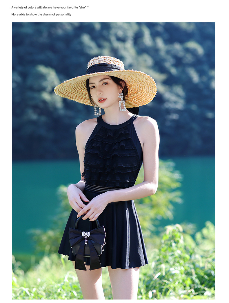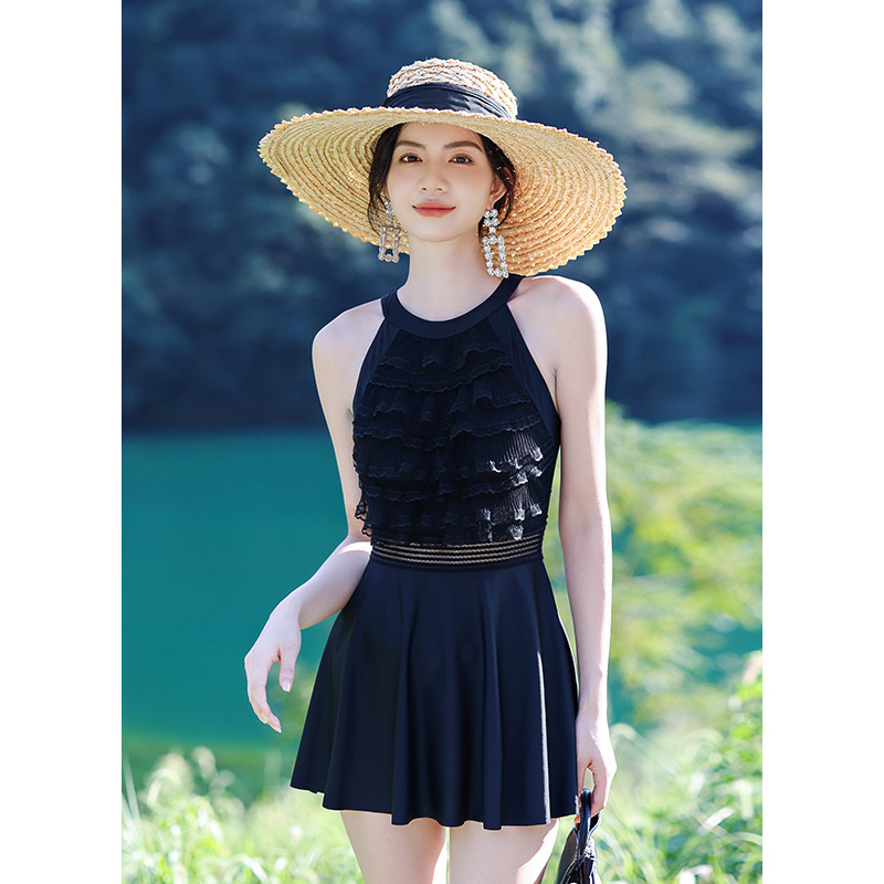 LFWN121100017 2025新款純色泳衣女夏高級感連體裙式小胸聚攏遮肚顯瘦保守游泳裝