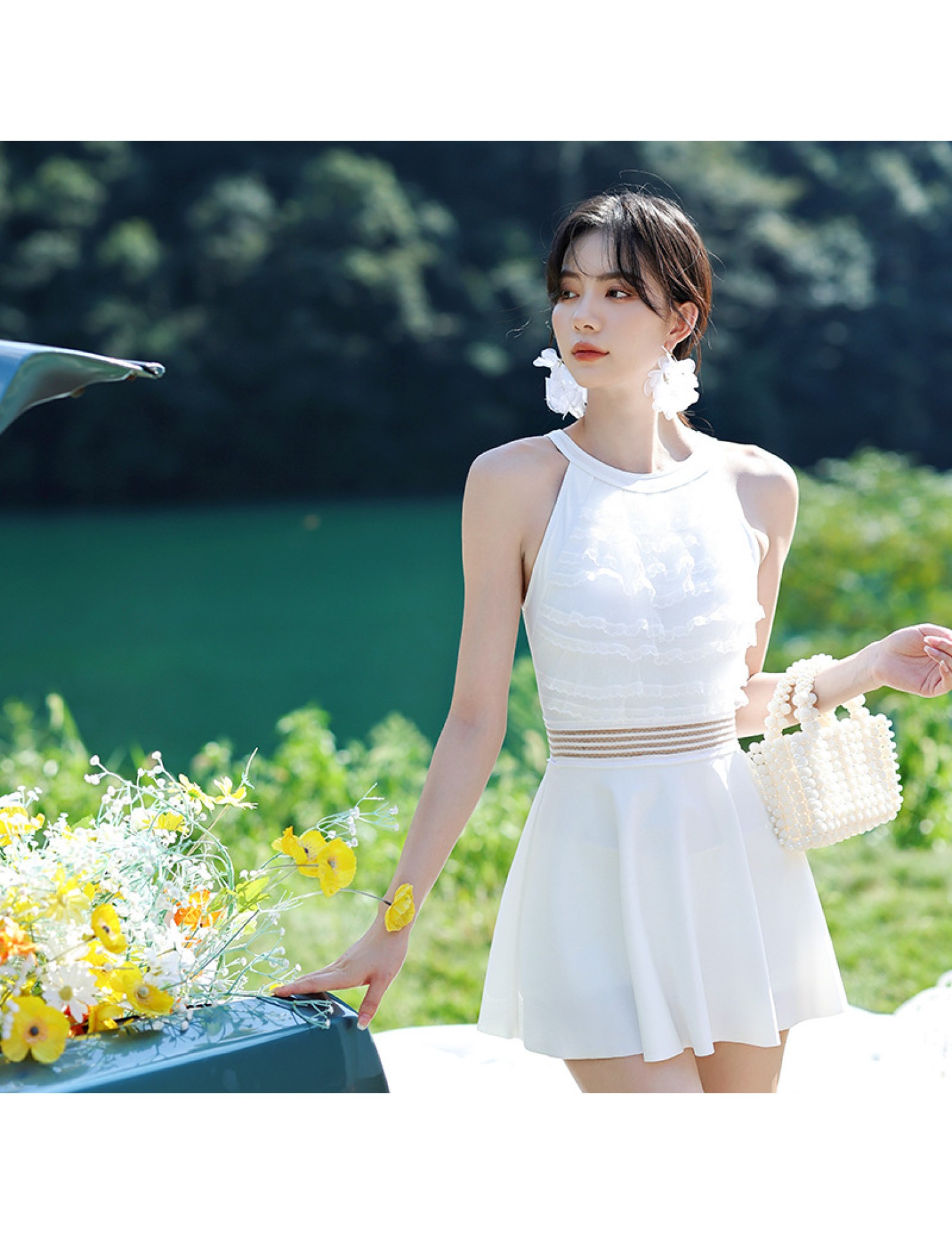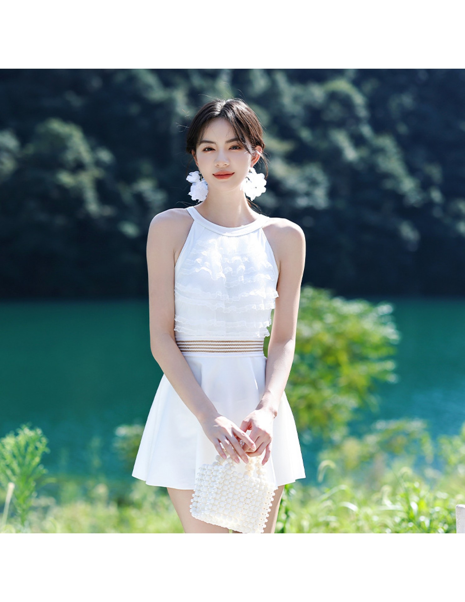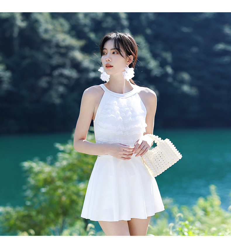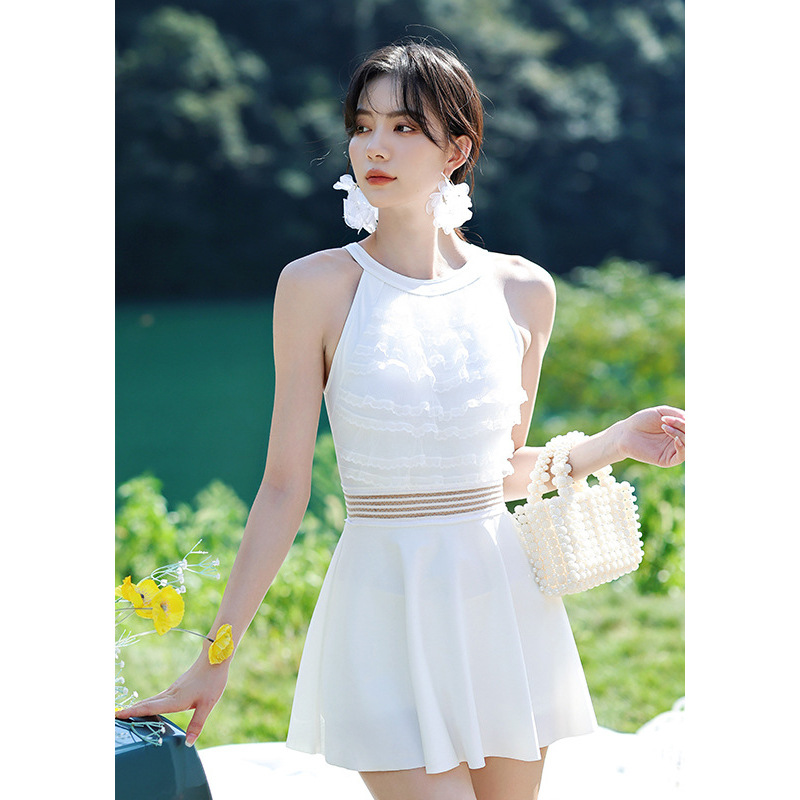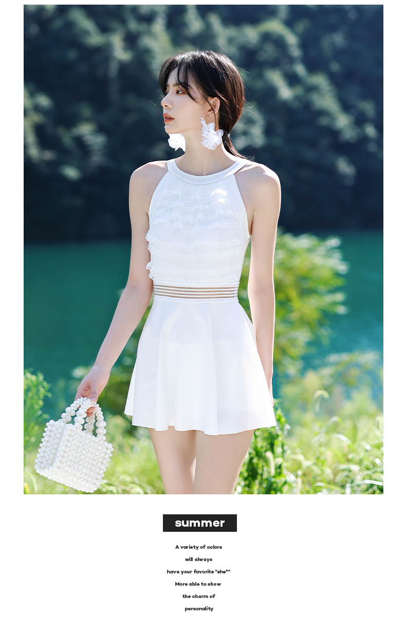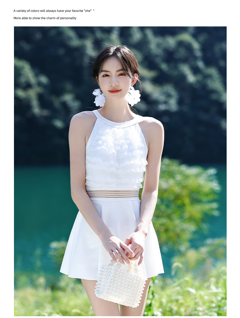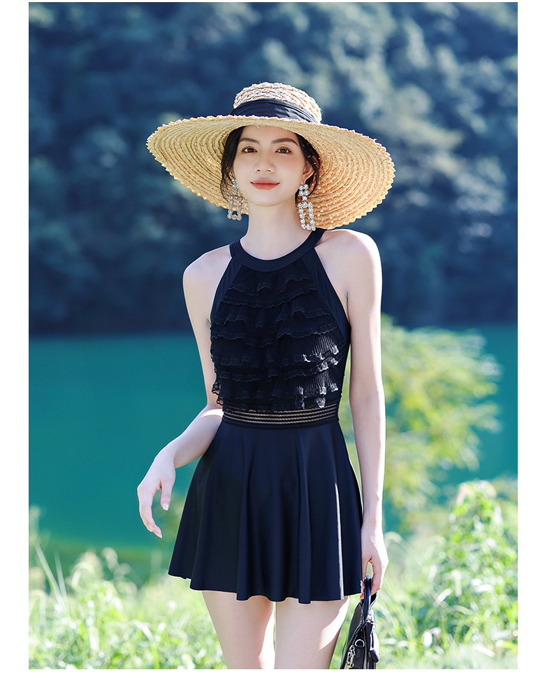 LFWN121100017 2025新款純色泳衣女夏高級感連體裙式小胸聚攏遮肚顯瘦保守游泳裝