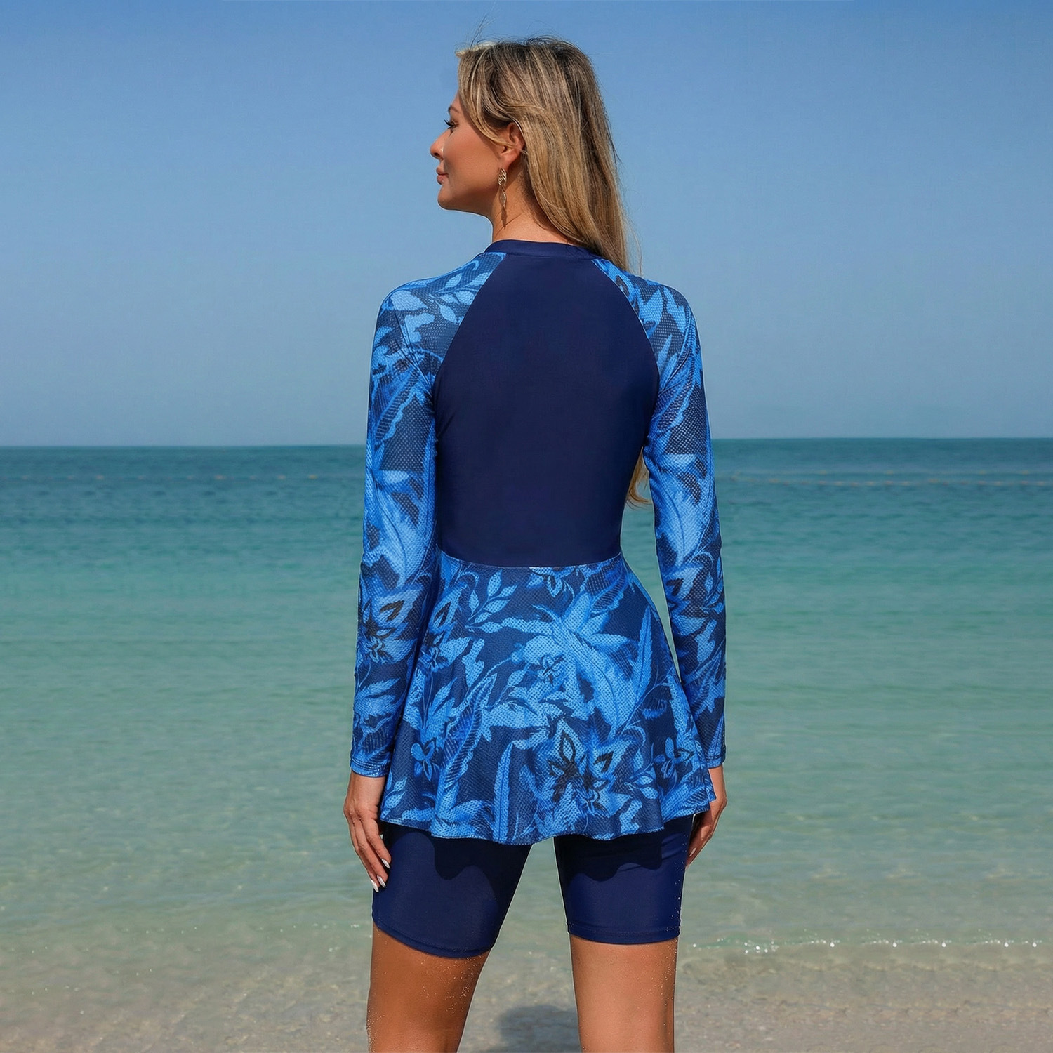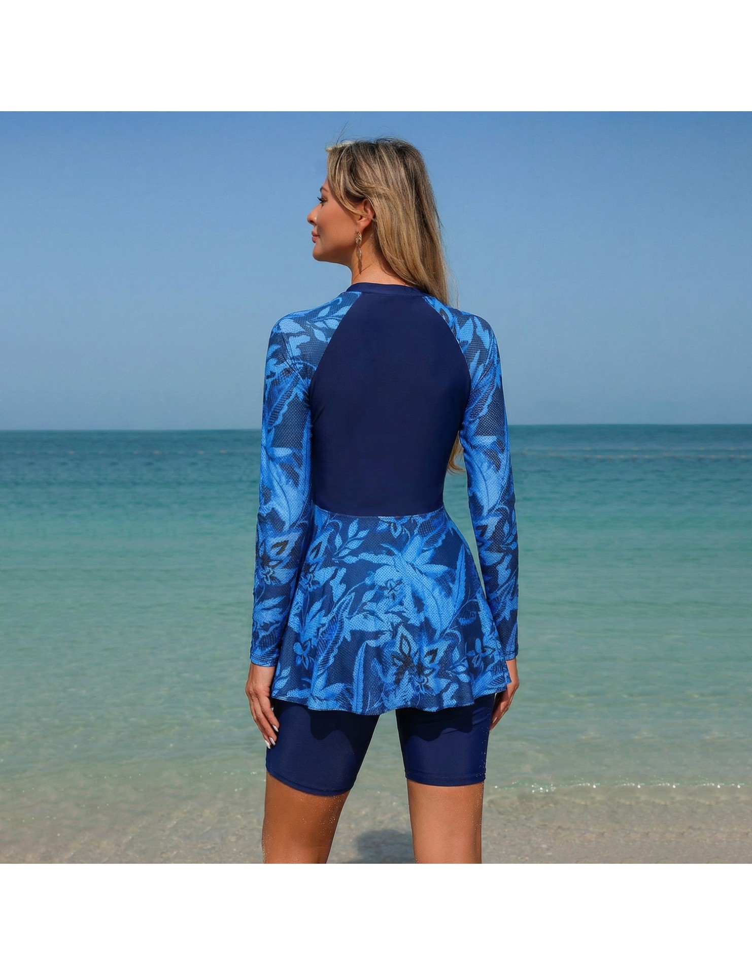 LYXN120100153 2026新款泳衣長袖防曬分體大碼保守裙式運動女士泳裝