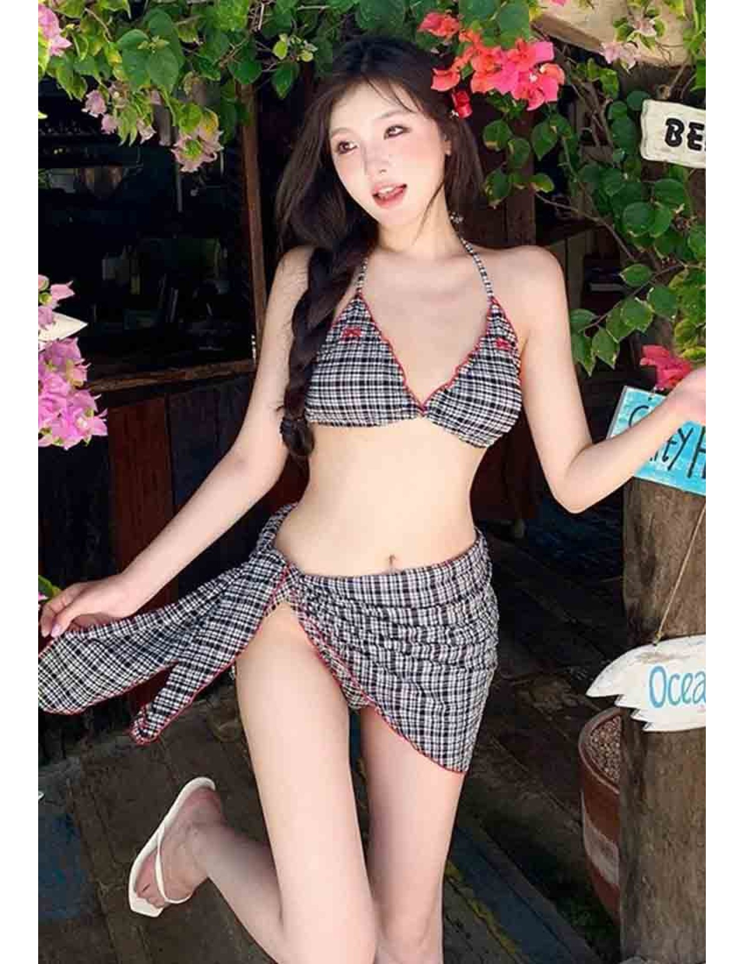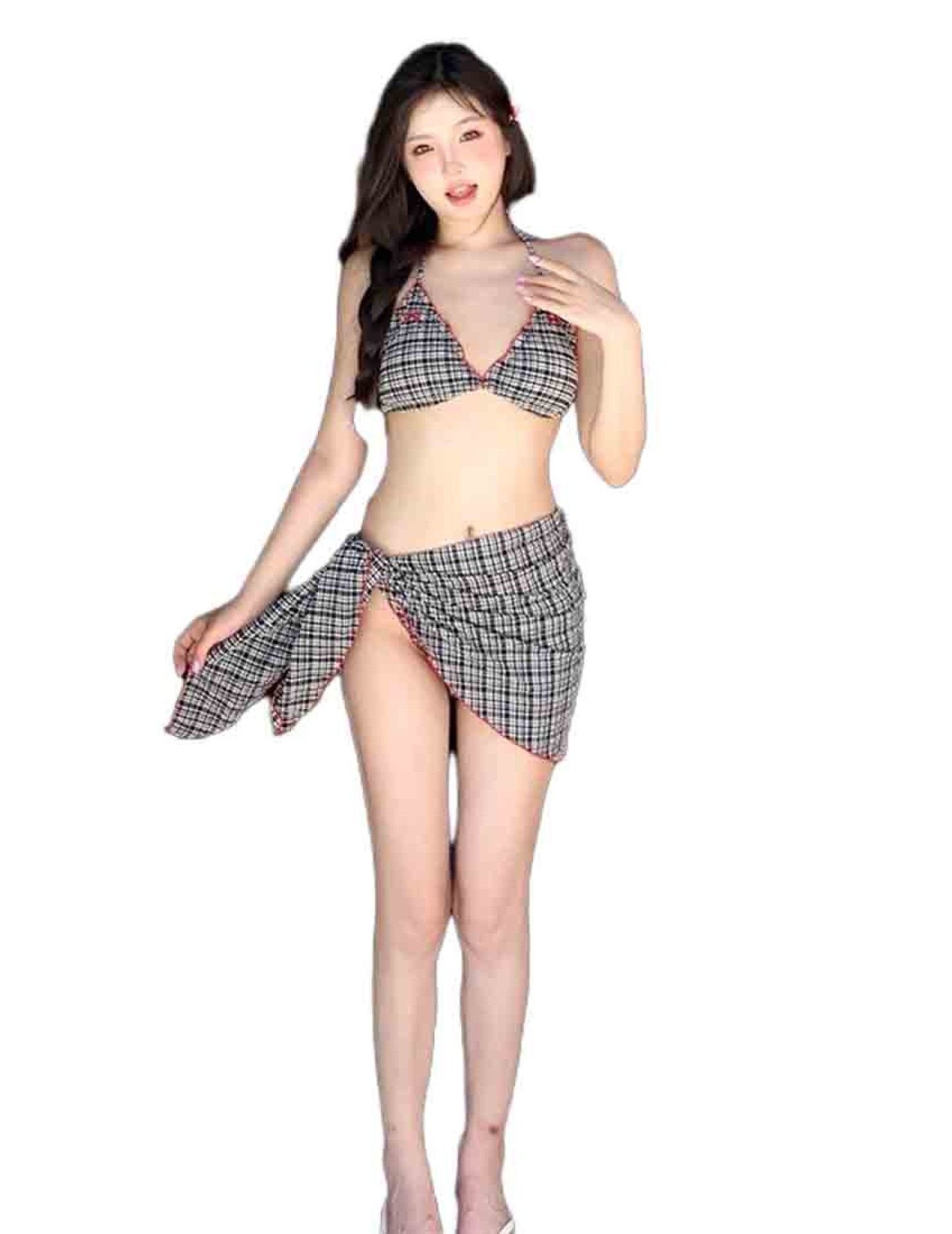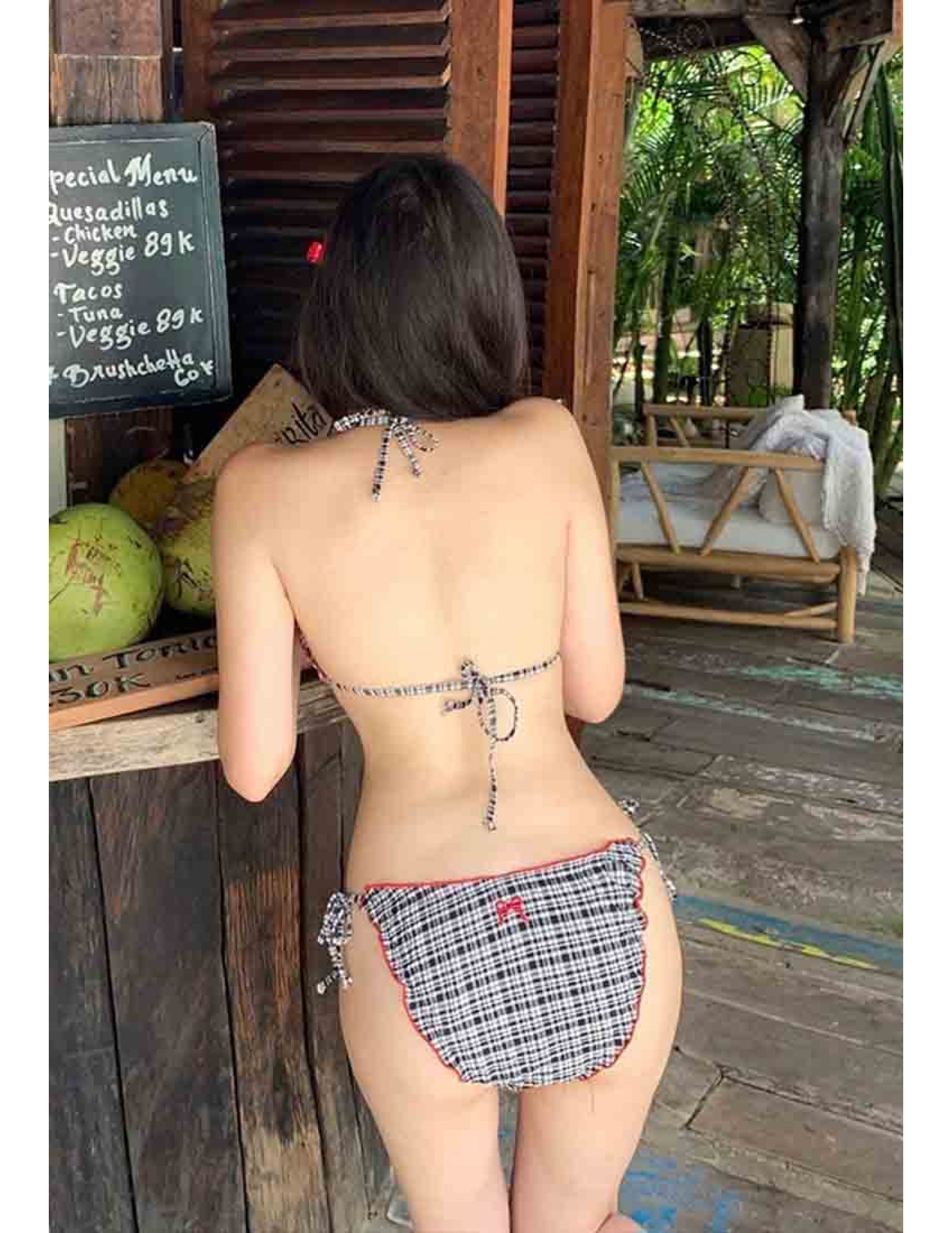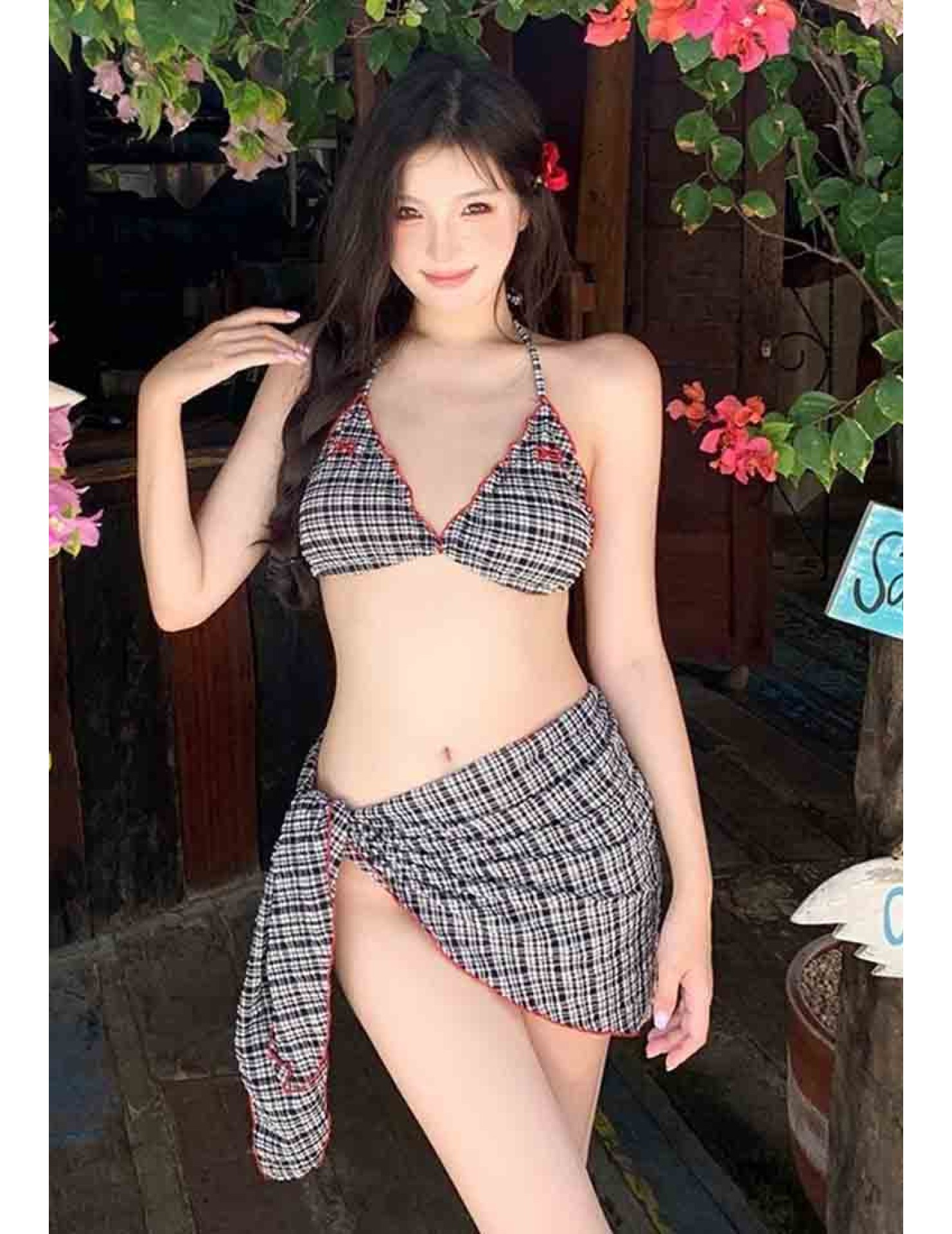 方格圖案質氨綸滌綸紡織物合體剪裁帶胸墊泳衣快乾材質洗滌說明:需要用手洗使用中性清潔劑