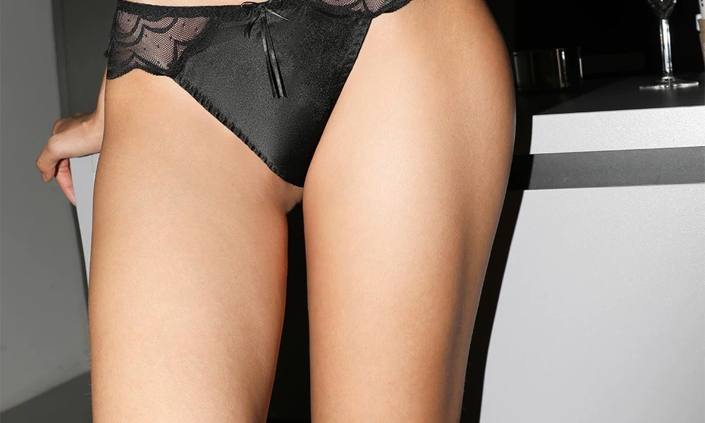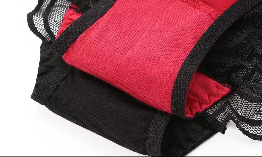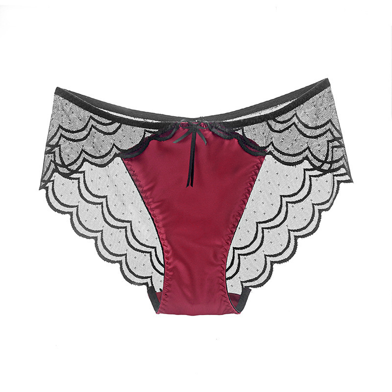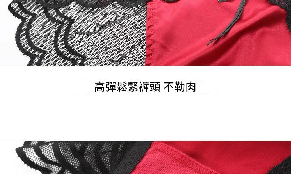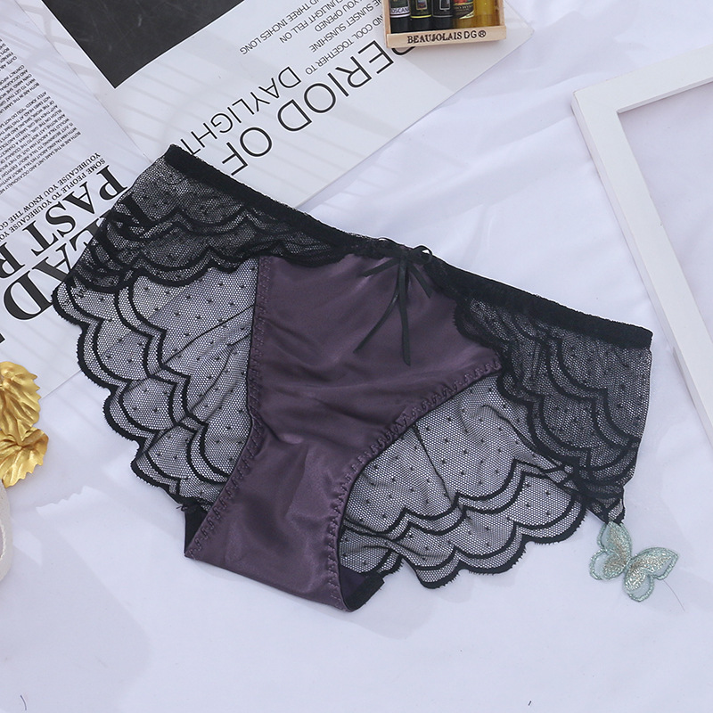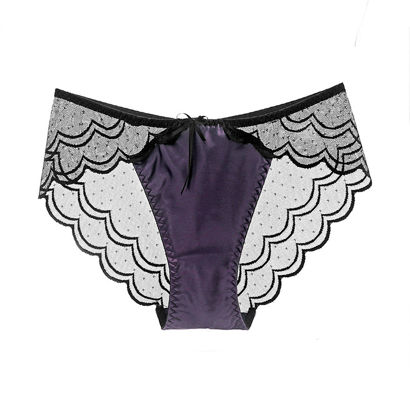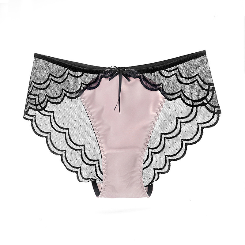 WLMZ113100349 性感內褲女法式薄款緞面拼接蕾絲內褲純棉襠部提臀低腰三角褲